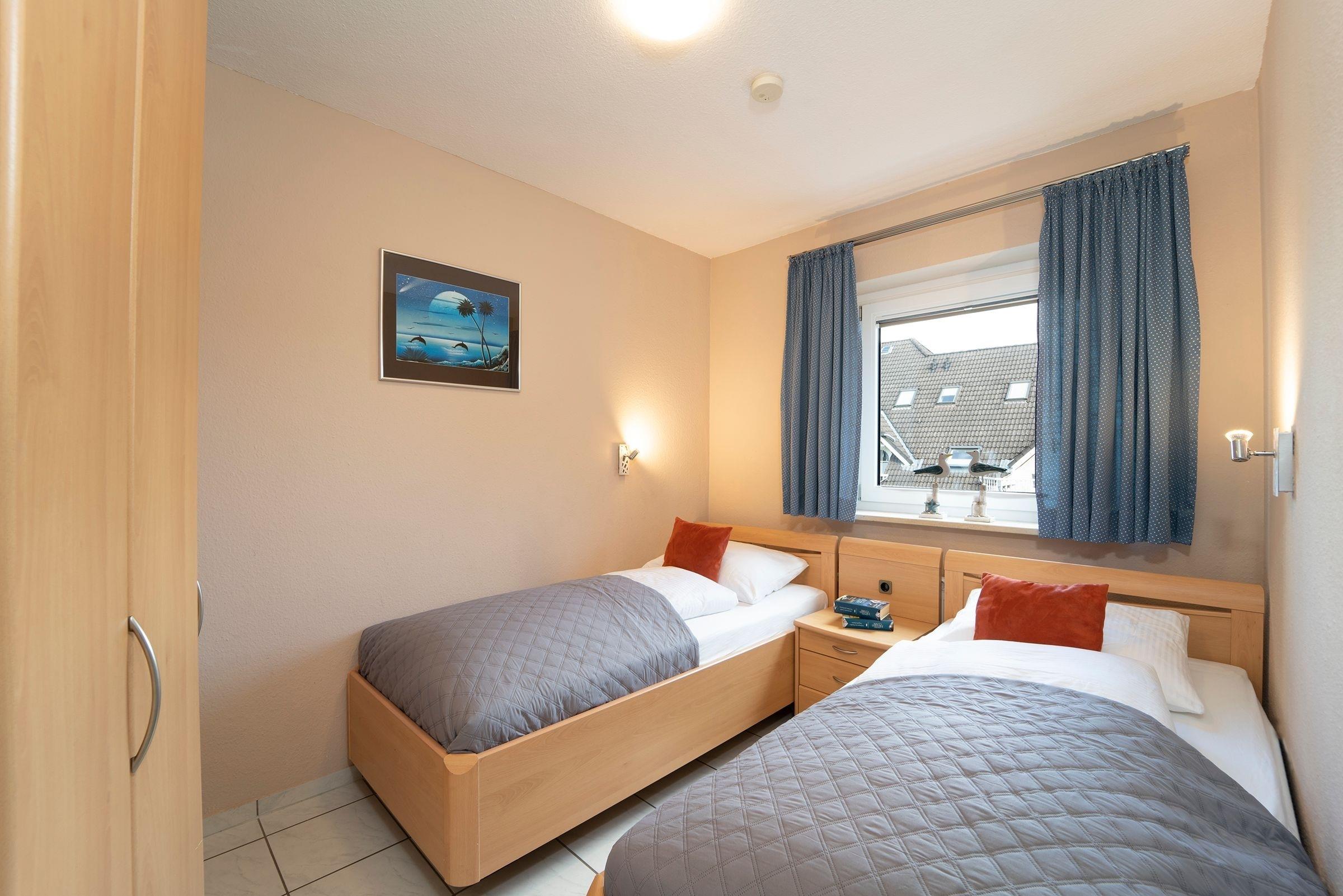 Schlafzimmer 1 (1. OG): 2 Einzelbetten (2x 90x200 cm), Verdunkelungsrollo