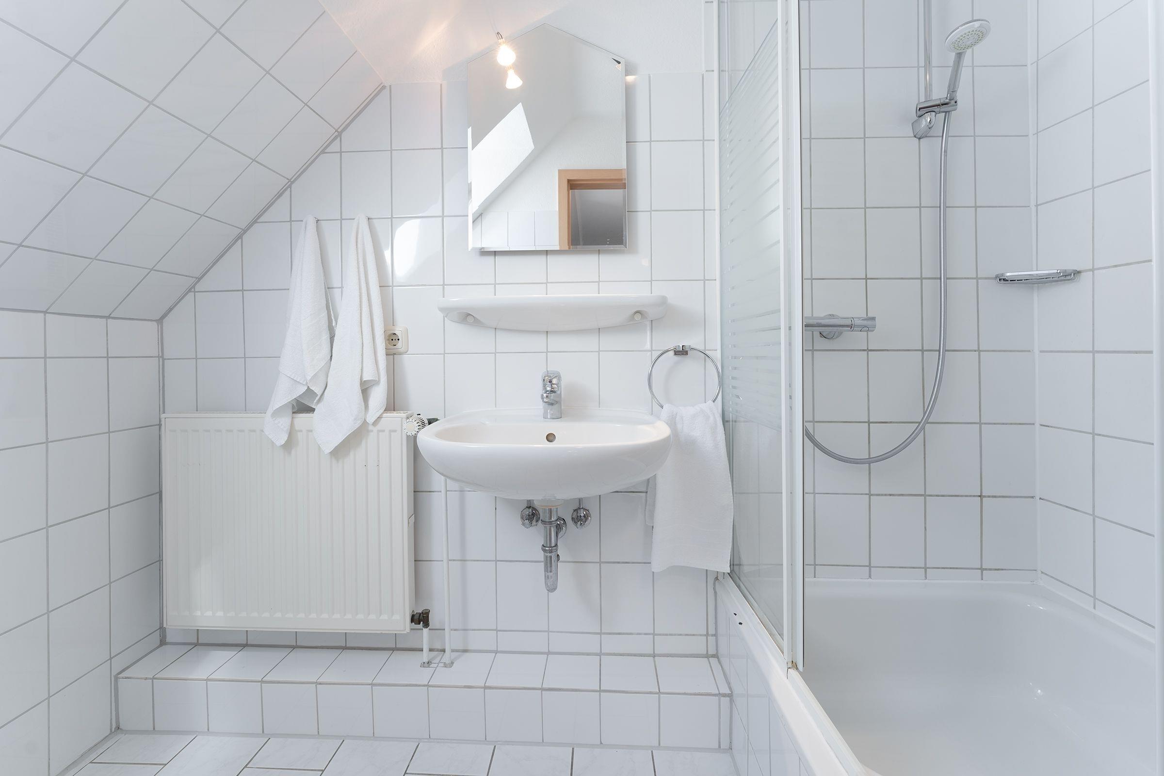 Vom Wohnzimmer mit gemütlicher und moderner Schlafcouch (140x200 cm), Flat-TV und Radio, sowie Essecke für 4 Personen gelangen Sie in das großzügige, helle Schlafzimmer mit Doppelbett (180x200 cm) und geräumigem Kleiderschrank für all Ihre Urlaubsutensilien. Die separate Küche ist mit Backofen, Herd, Kaffeemaschine, Mikrowelle, Toaster und Wasserkocher voll ausgestattet und lädt Sie ein, interessante Gerichte zu kreieren und zu zaubern. Das hell geflieste Duschbad rundet diese Ferienwohnung ab. Der WLAN-Anschluss ist inklusive.