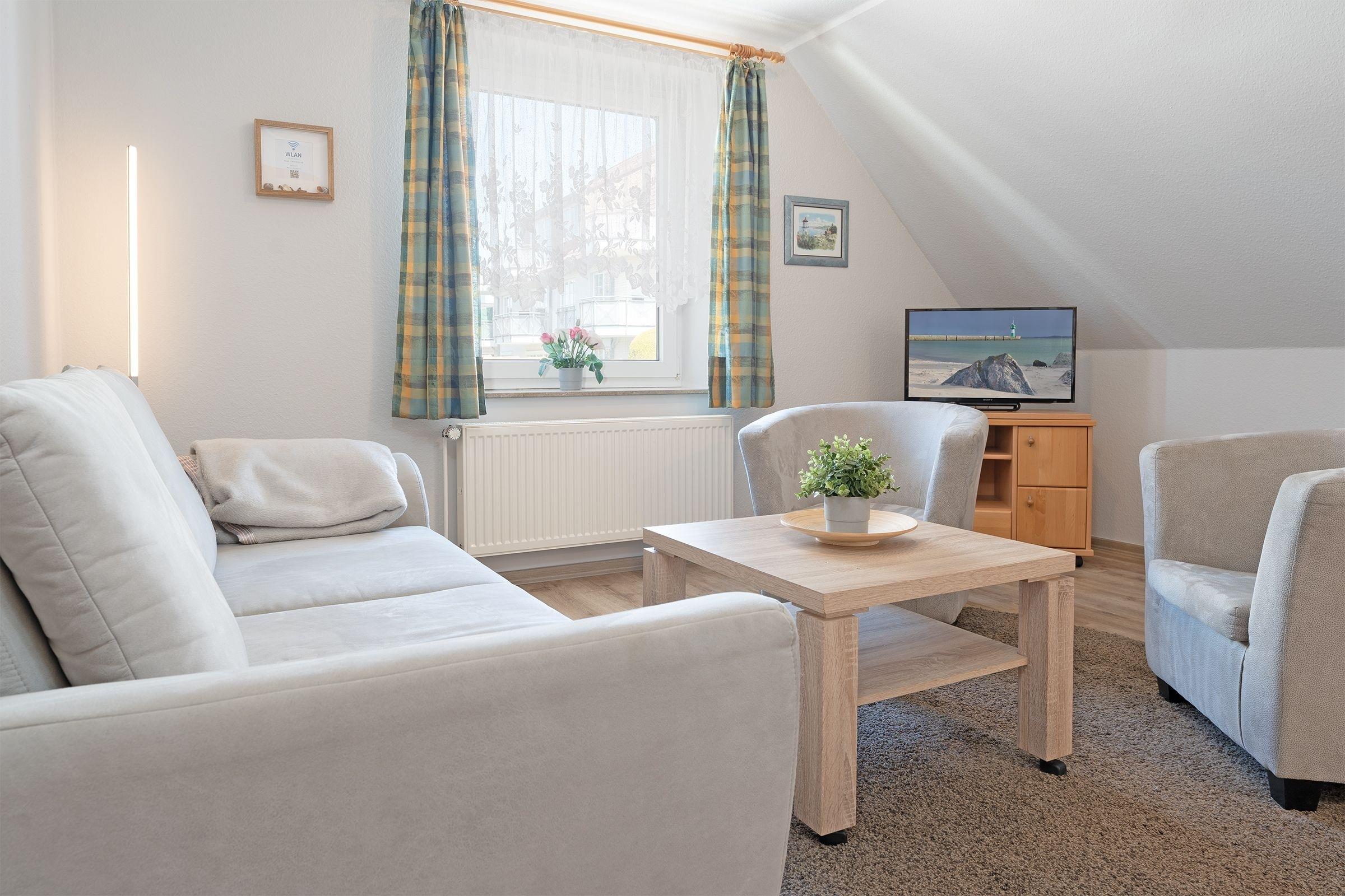 Diese behagliche Ferienwohnung im 1. OG ist hell und gemütlich eingerichtet. Sie hat 40m², bietet Platz für 4 Personen verteilt sich auf 2 Zimmer, davon ein separates Schlafzimmer und ein Wohnschlafzimmer.
