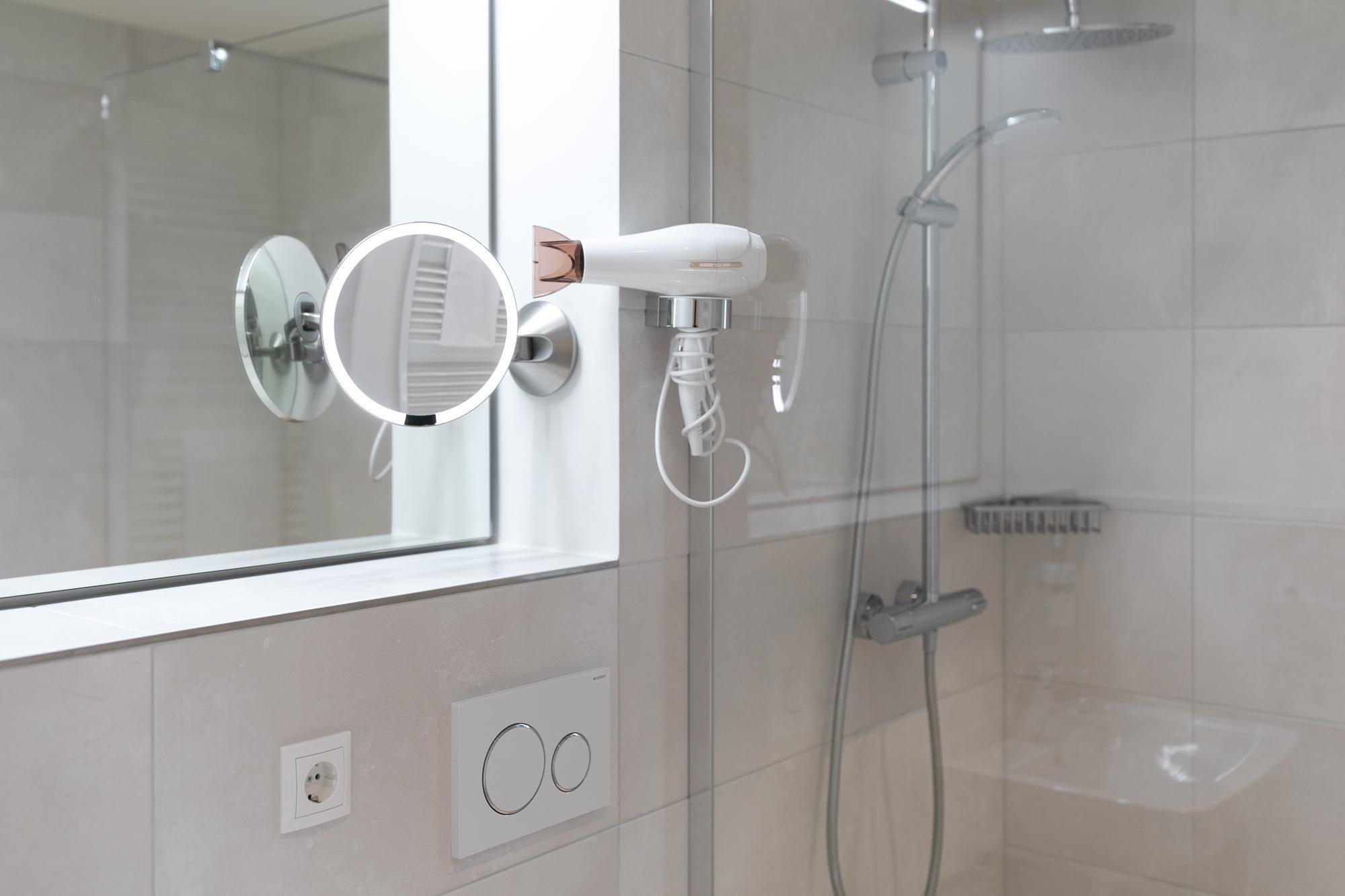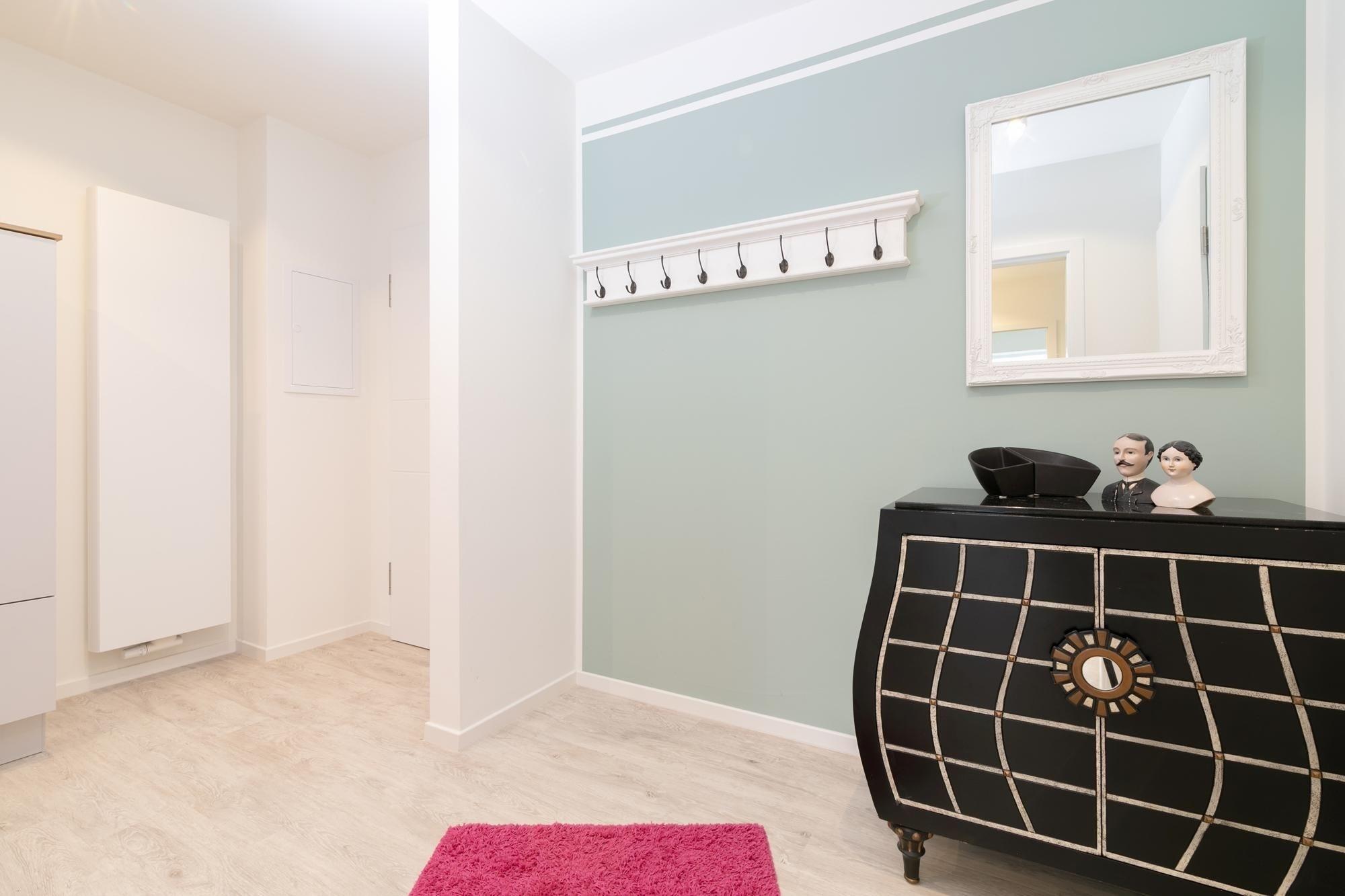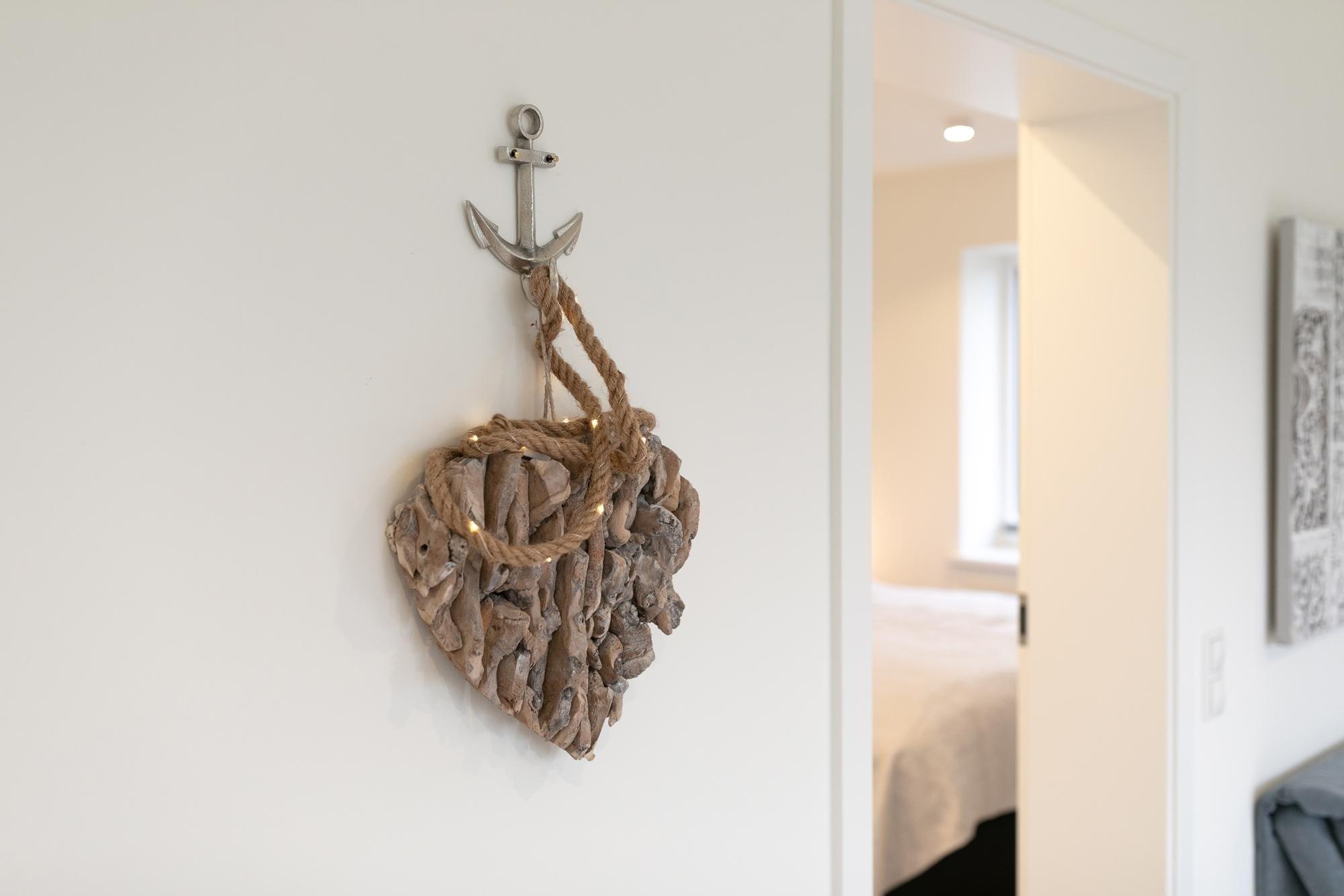 Das gesamte Interieur ist innovativ gestaltet, Farben und Materialien sind gekonnt harmonisch aufeinander abgestimmt. In diesem exklusiven Feriendomizil wurden bewusst schadstoffarme Baumaterialien und Farben gewählt. Das positive Raumklima, gepaart mit liebevollen Einrichtungsdetails und viel heimeligem Charme, sorgt für ein angenehmes, ästhetisch ansprechendes und raumgesundes Wohnumfeld, indem man sich rundum wohlfühlt. Das geschmackvolle Entrée ist mit Garderobenhaken, Schuhbank und Spiegel ausgestattet.