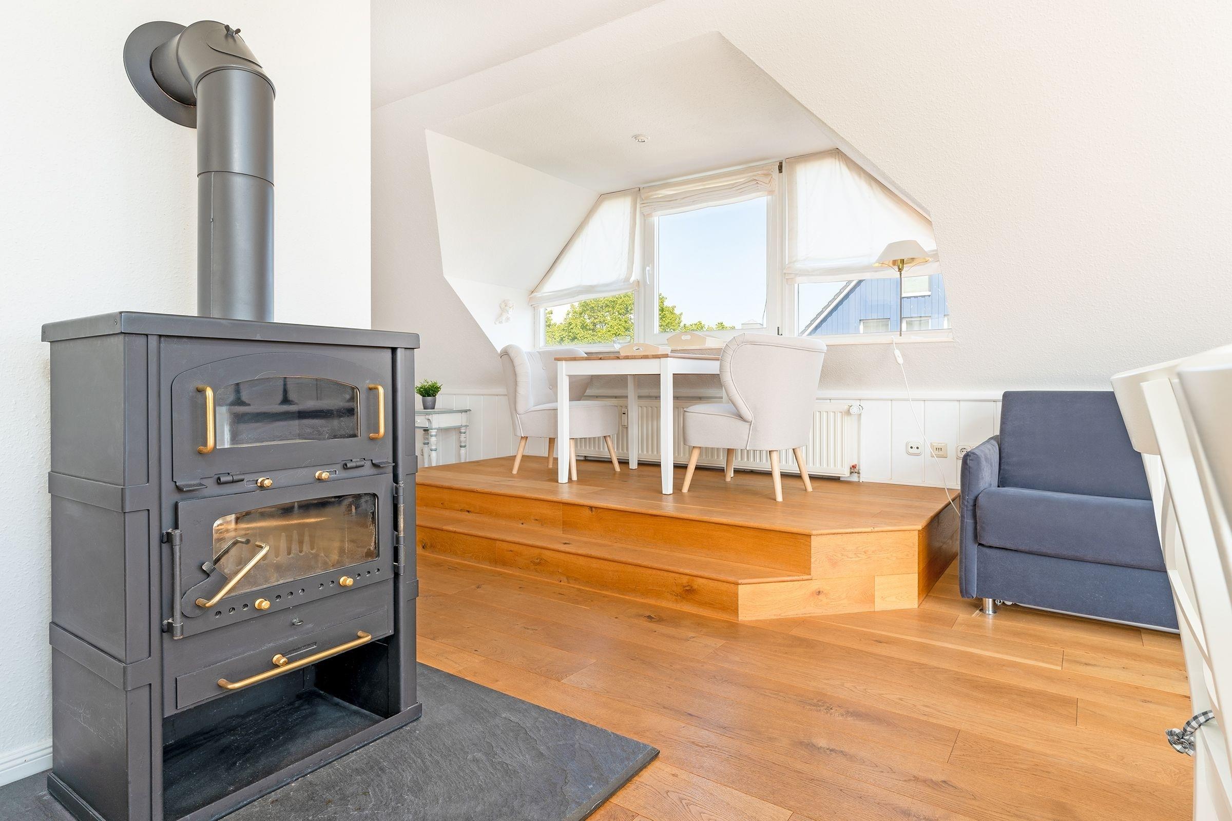 Es erwartet Sie ein großzügig geschnittenes helles Appartement im Dachgeschoss mit Studio-Charakter. Warme Farben und ein zeitloser Einrichtungsstil im geschmackvollen Landhausstil sorgen für entspannte Wohlfühlatmosphäre.