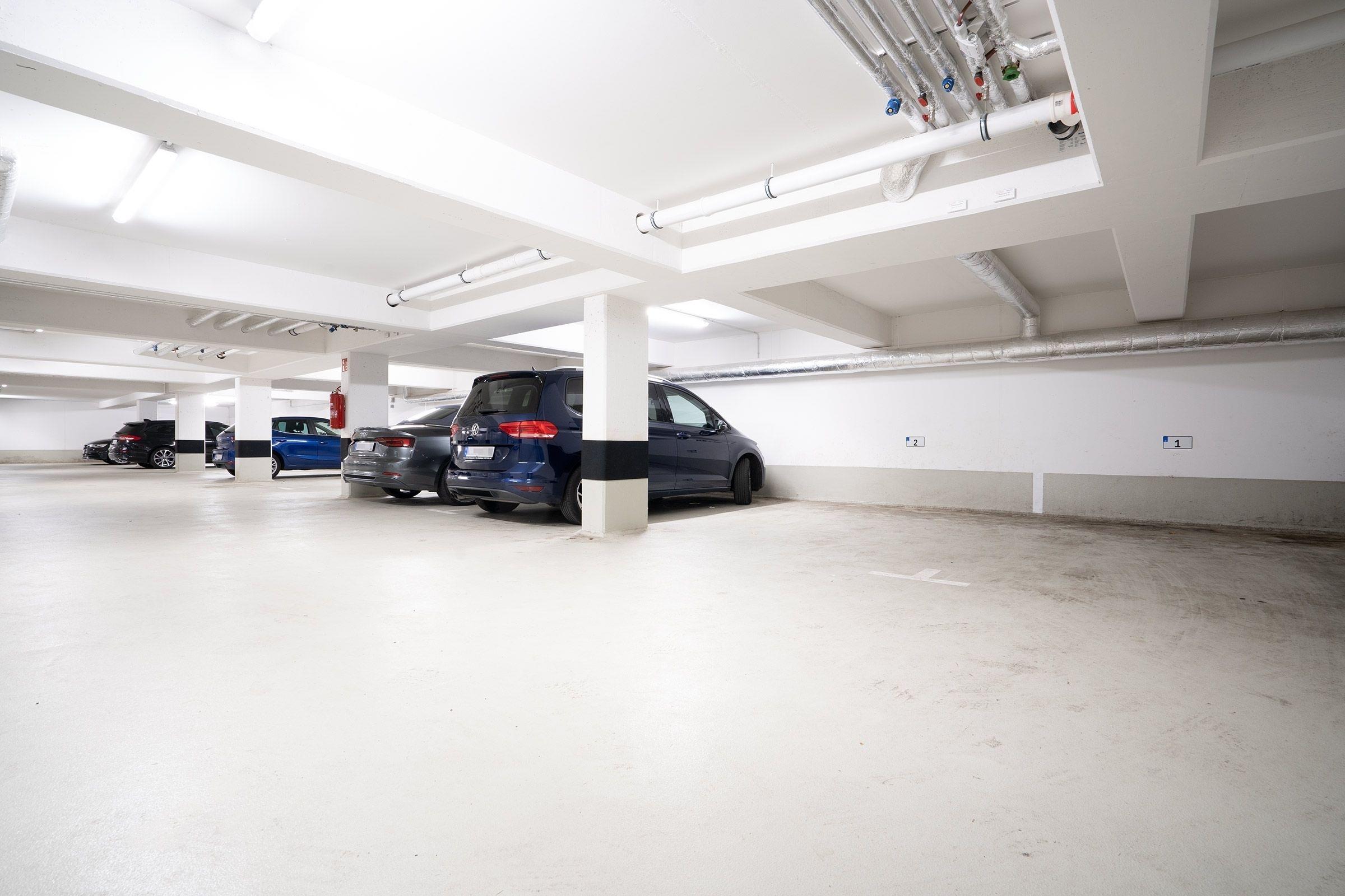 Ein PKW-Tiefgaragenstellplatz (max. Durchfahrtshöhe 208 cm) ist für Sie reserviert. Mitgebrachte Fahrräder können im zur Wohnung gehörenden Kellerraum abgestellt oder vor dem Hauseingang an einem Fahrradständer angeschlossen werden.