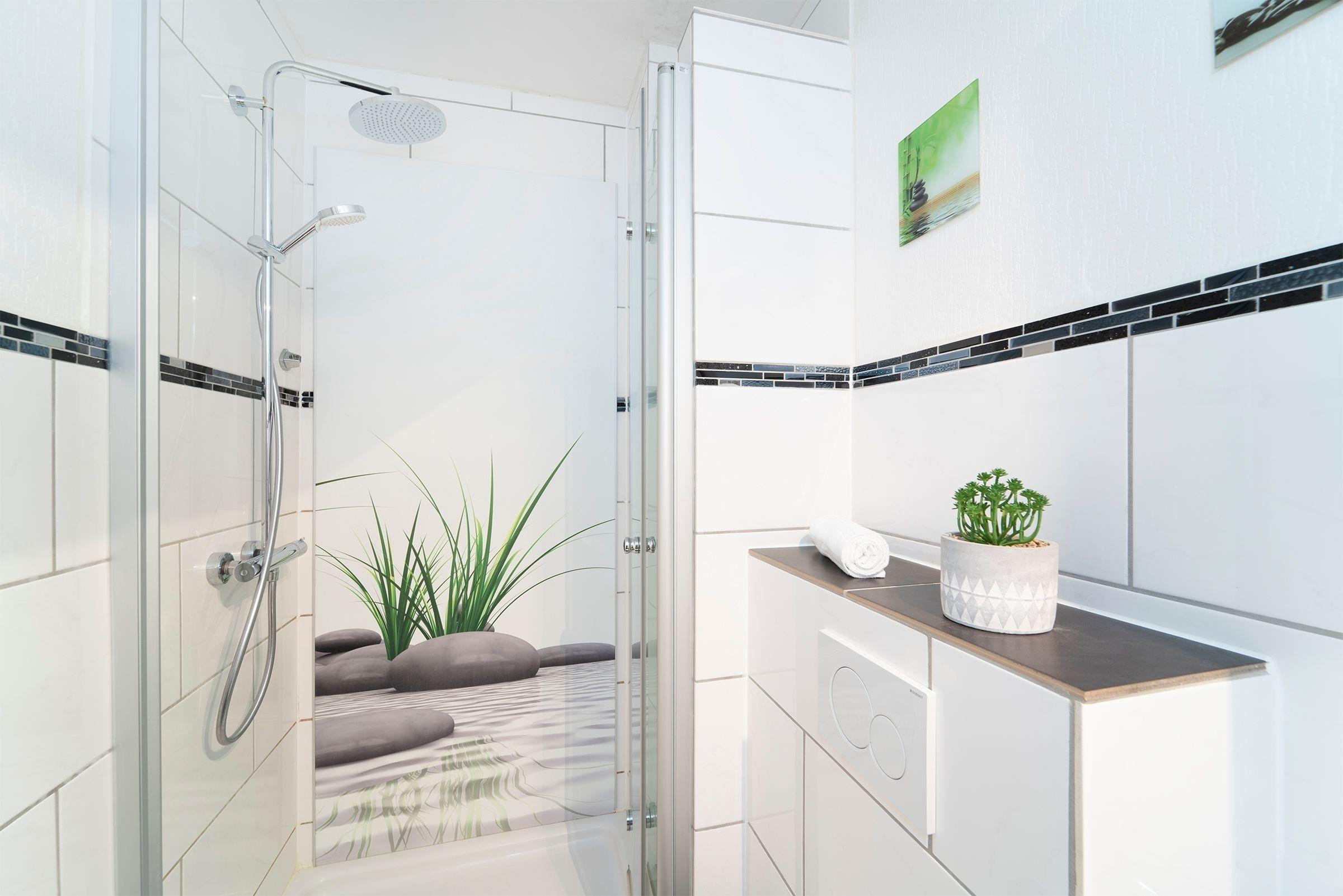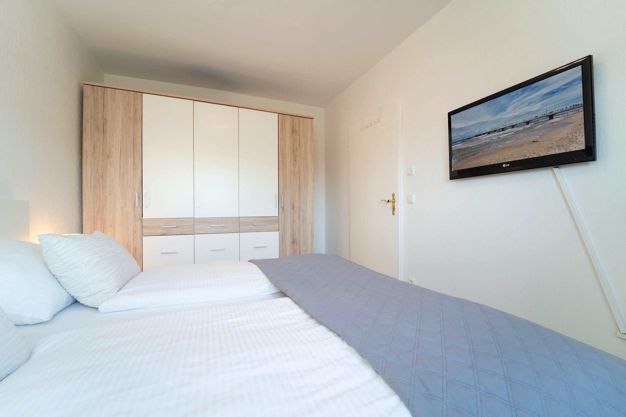Alle Zimmer der Wohnung sind vom Flur aus erreichbar. Es erwartet Sie ein geschmackvoll modern eingerichtetes Wohn-, Schlafzimmer mit CD-Player, DVD-Player, TV, Radio, W-LAN Anschluss und einer komfortablen Schlafcouch (160x200 cm). Das separate Schlafzimmer verfügt über ein bequemes, großzügiges Doppelbett (180x200 cm). Zum Appartement gehört eine mit Kühlschrank, Gefrierfach, Backofen, Herd, Spülmaschine, Kaffeemaschine, Toaster und Wasserkocher ausgestattete Küche. Ebenso ein freundliches neu renoviertes Duschbad, das auch über einen Fön verfügt.