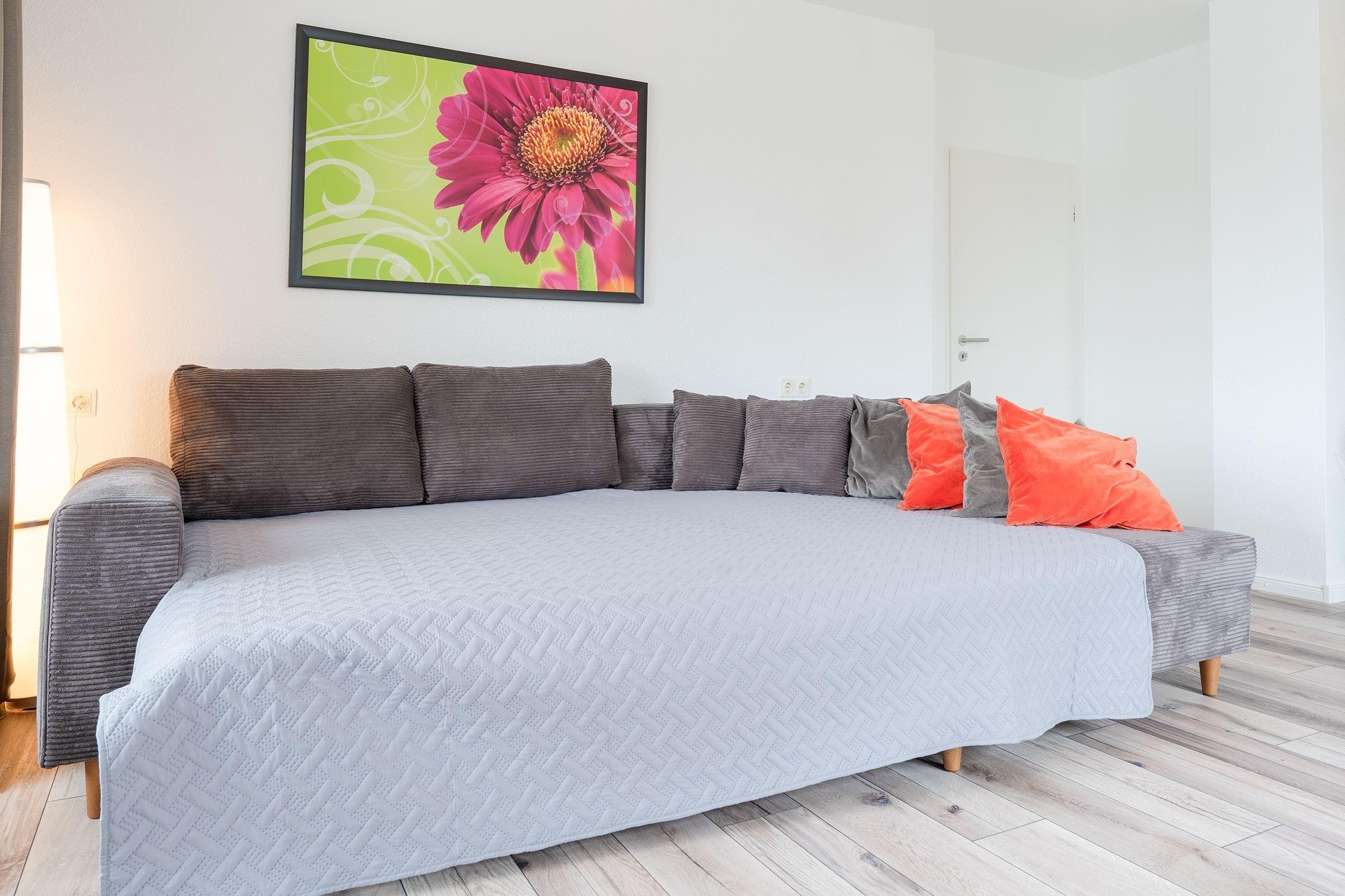 Diese helle Ferienwohnung besticht durch ihre liebevoll ausgesuchte Einrichtung. Kommen Sie herein, nehmen Sie Platz auf der kuscheligen Couch oder genießen Sie Ihre Auszeit auf dem Balkon. Ein TV-Gerät sowie ein CD-Player sorgen für die passende Unterhaltung. Für die Nacht lässt sich die Couch mit wenigen Handgriffen in ein Doppelbett (ca. 140x200 cm) verwandeln. Die großzügige Wohnküche mit Zugang zu einem weiteren Balkon verfügt über eine Schlafcouch für 2 Kinder (ca. 120x200 cm) und eine schicke Essecke. Wie wäre es hier abends mit einem Glas Wein? Die Küche mit Geschirrspülmaschine ist modern und hochwertig ausgestattet und dürfte jeden Hobby-Koch erfreuen. Bereiten Sie hier gemeinsam Ihre Lieblingsspeisen zu. Im separaten Schlafraum steht ein bequemes Doppelbett (2x 90x200 cm) und lädt zum Träumen ein. Das moderne Duschbad mit Dachfenster bietet tollen Komfort und lässt Sie prima in den Tag starten. Der WLAN-Anschluss ist inklusive.