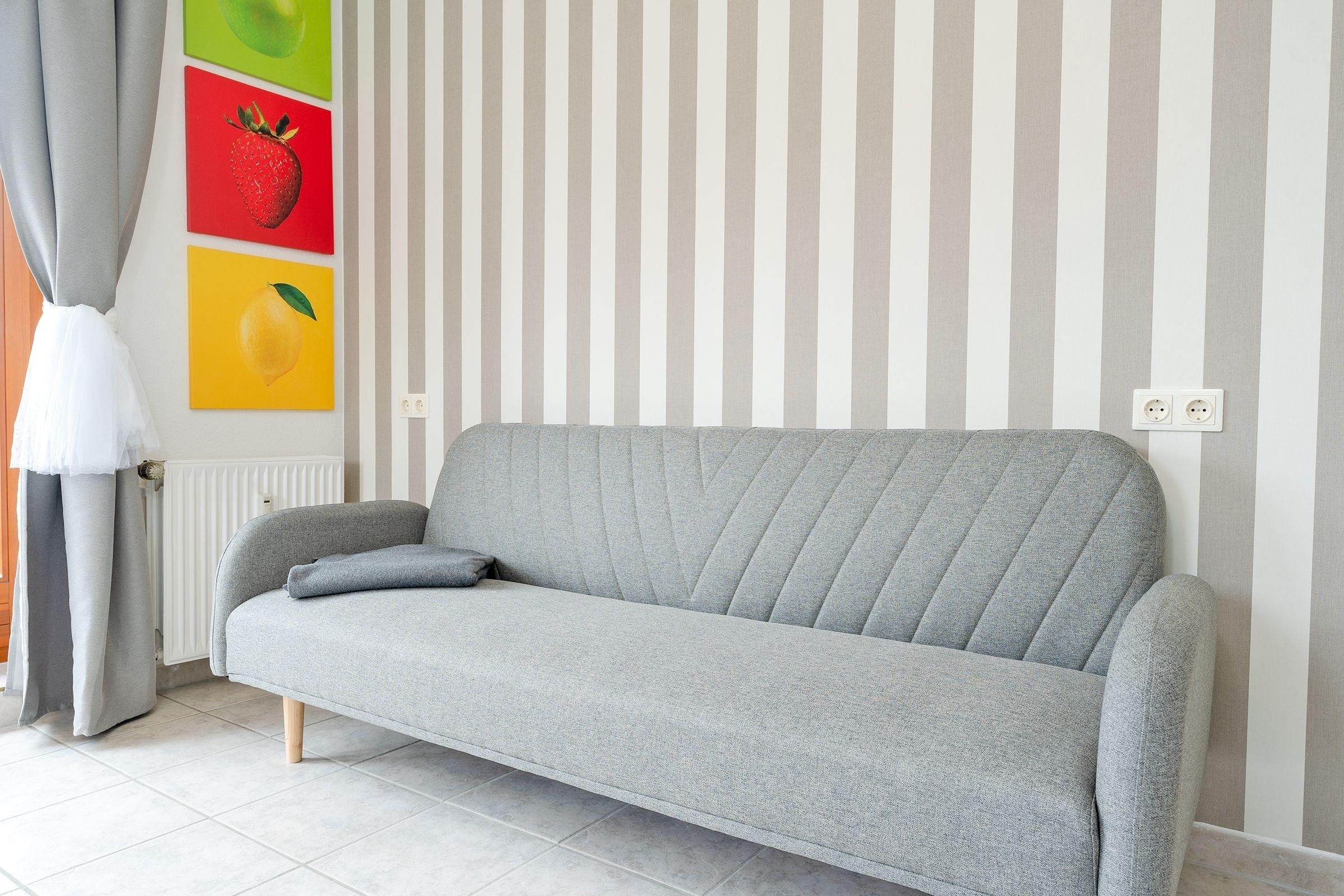 Wohnzimmer: 1 Schlafsofa (140x200 cm), TV, Verdunkelungsmöglichkeit