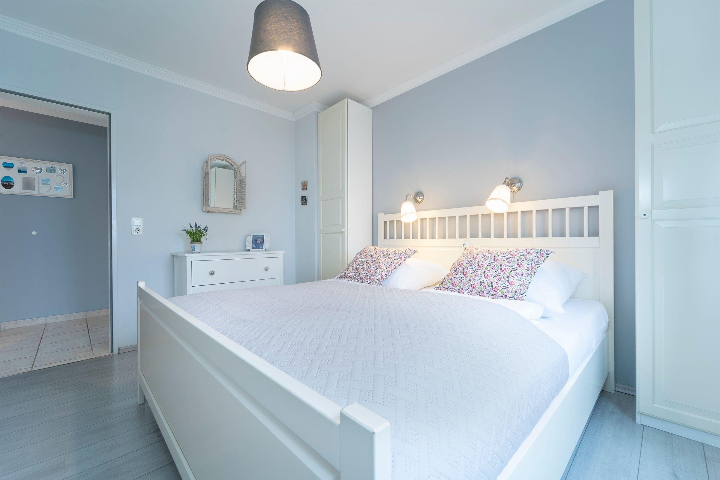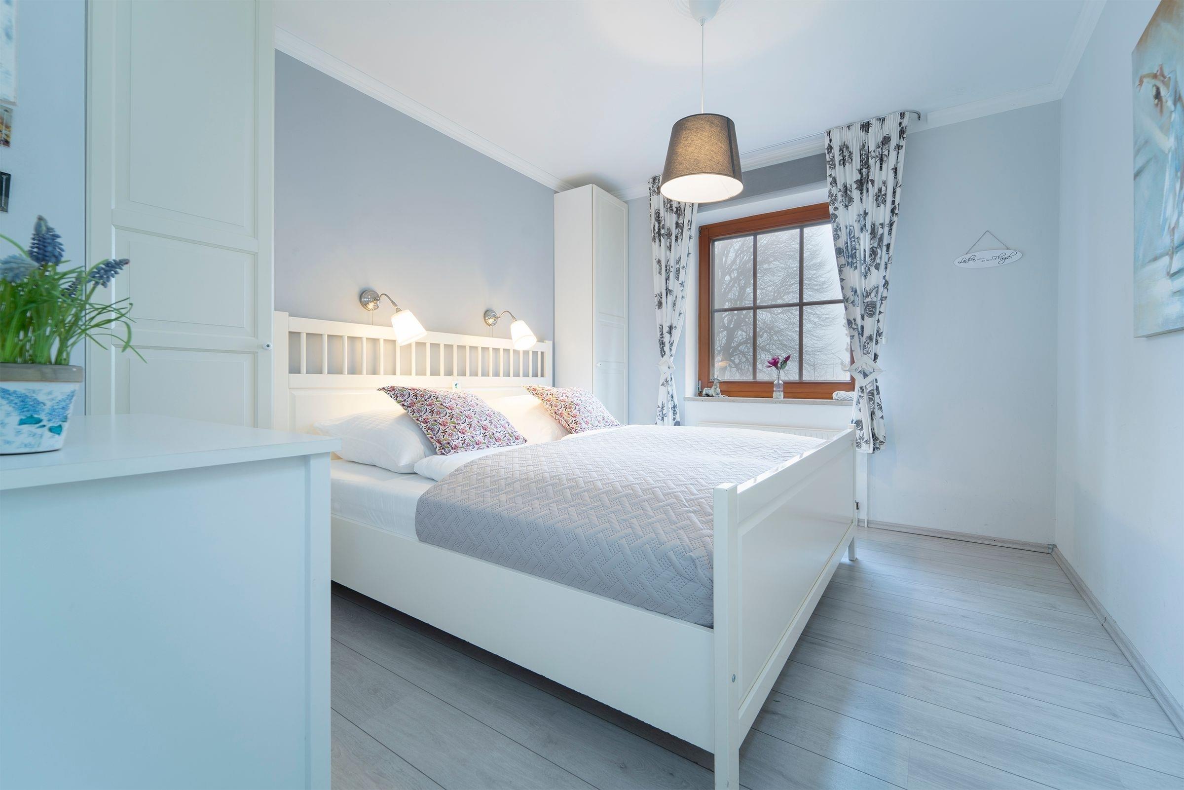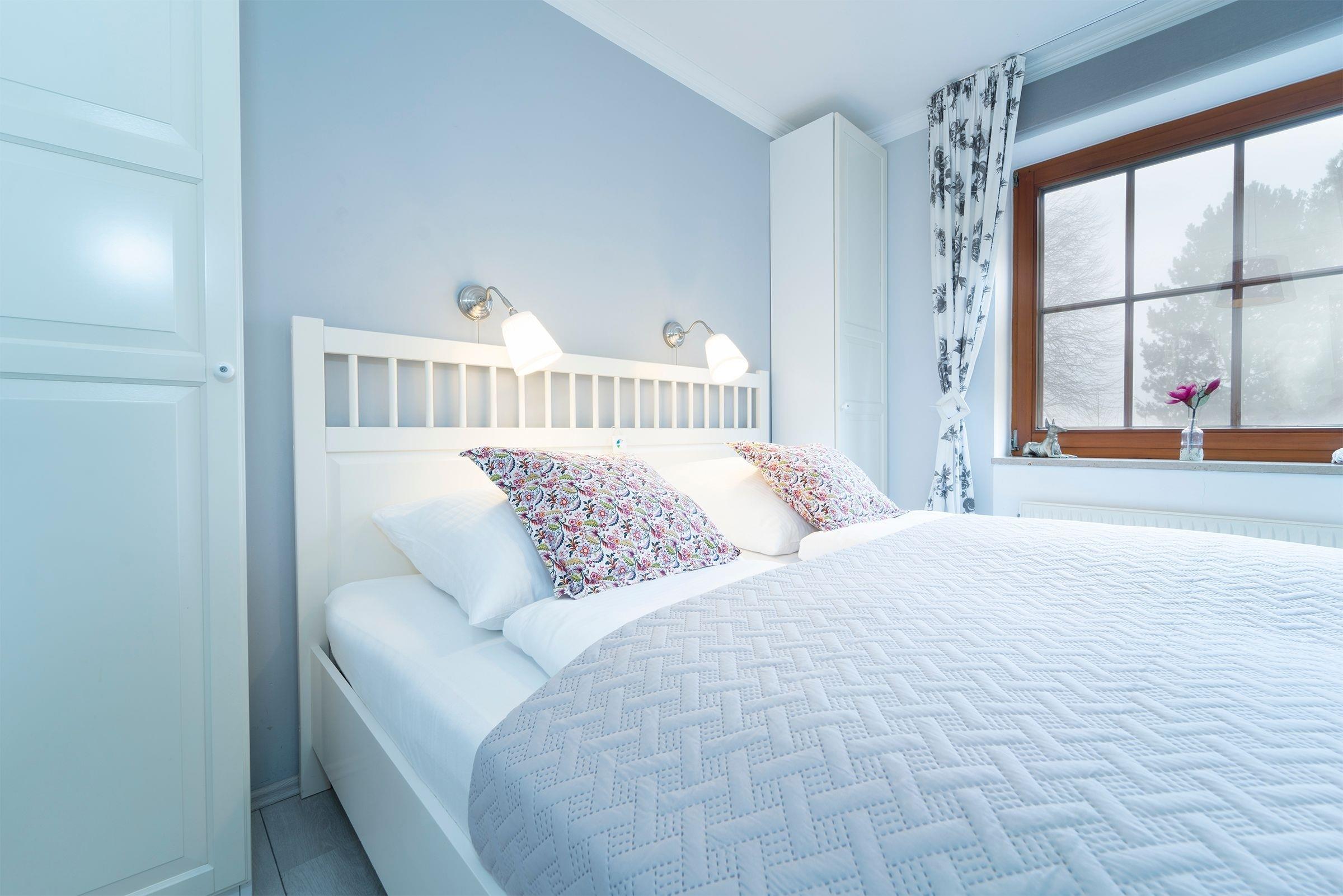 Schlafzimmer: 1 Doppelbett (180x200 cm), Kleiderschrank, Verdunkelungsmöglichkeit