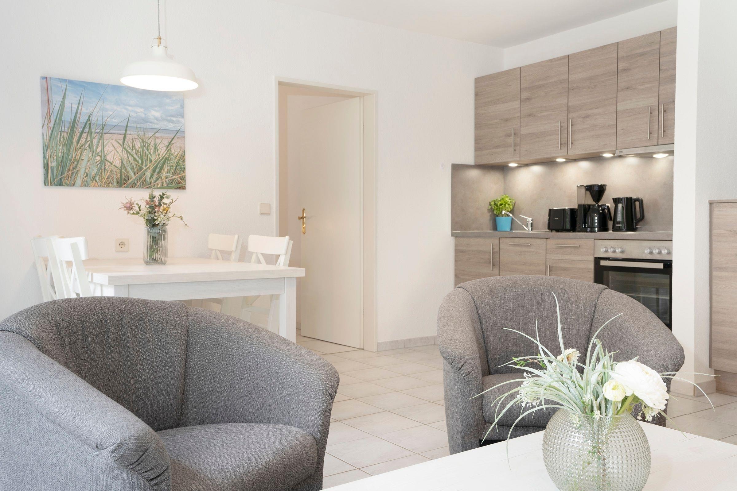 Das 2-Zimmer-Appartement befindet sich in der 1. Etage, ist komfortabel ausgestattet und verfügt über: