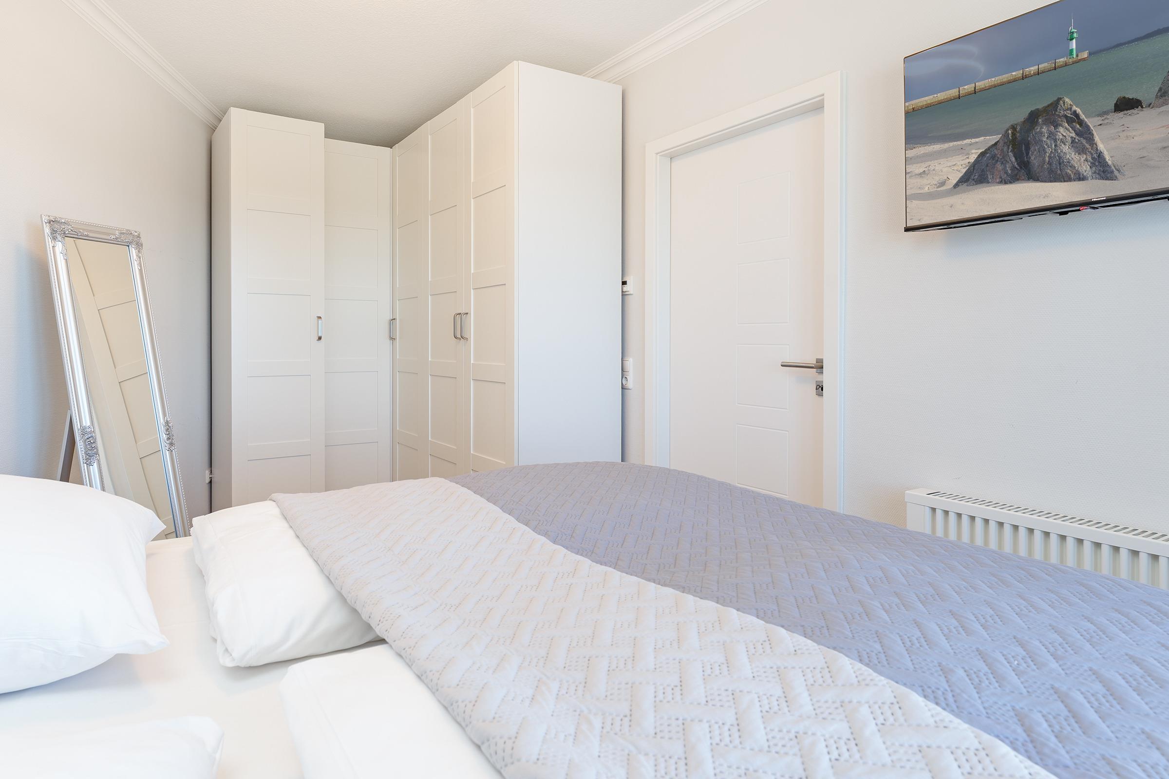Schlafzimmer: 1 Doppelbett (180x200 cm), Topper, Kleiderschrank, Verdunkelung