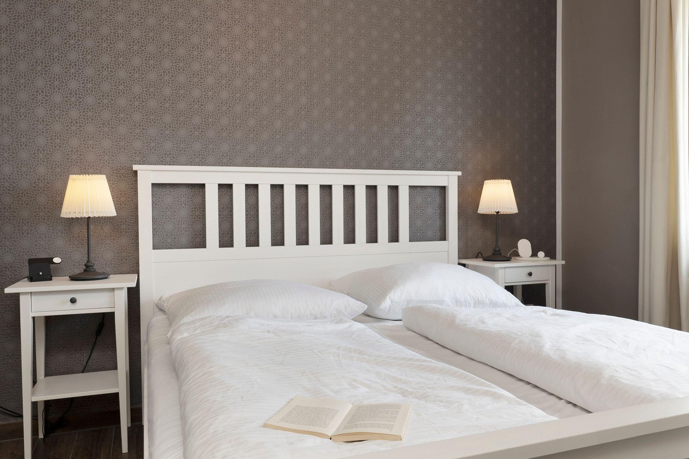 Schlafzimmer: 1 Doppelbett (160x200 cm), Kleiderschrank, Verdunkelung (Gardinen), Platz für Babybett vorhanden
