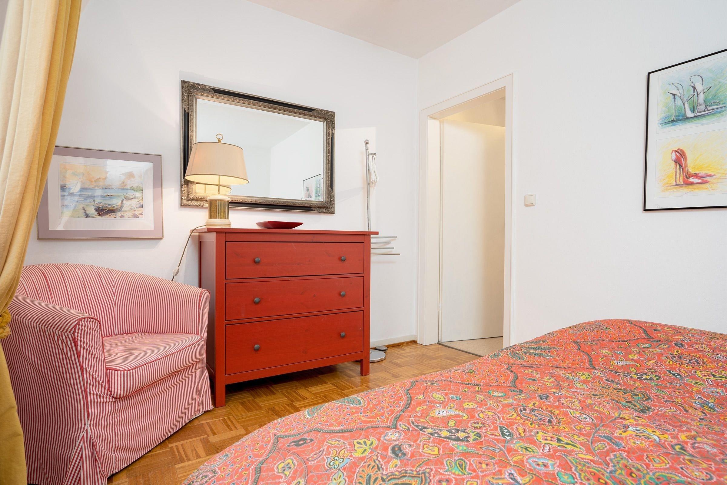 Schlafzimmer 1: 1 Doppelbett (2x 90x200 cm), Kleiderschrank und Kinderreisebett