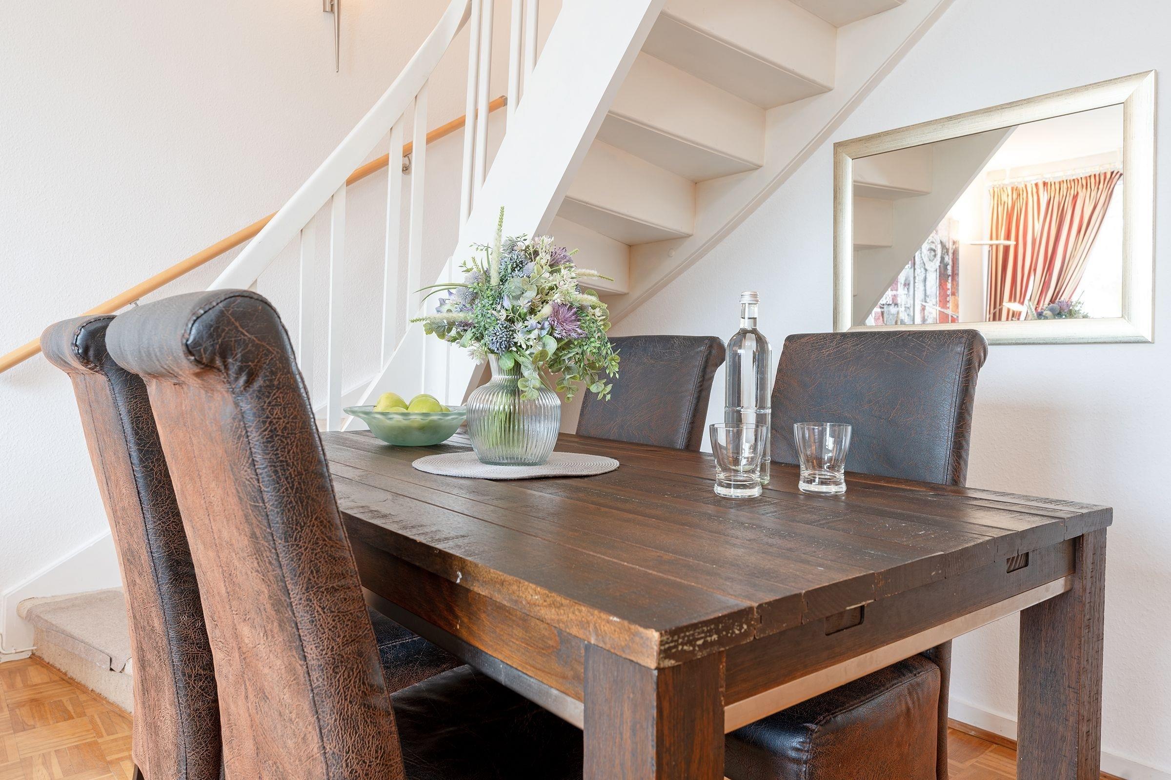 Das charmant und individuell eingerichtete 3-Zimmer-Feriendomizil vereint persönlichen Flair und Familienfreundlichkeit. Es verfügt über 2 Etagen (Maisonette) und besticht durch ausgesuchte Accessoires. Die Wohnung bietet Platz für bis zu 4 Erwachsene mit Kind zum Wohlfühlen.