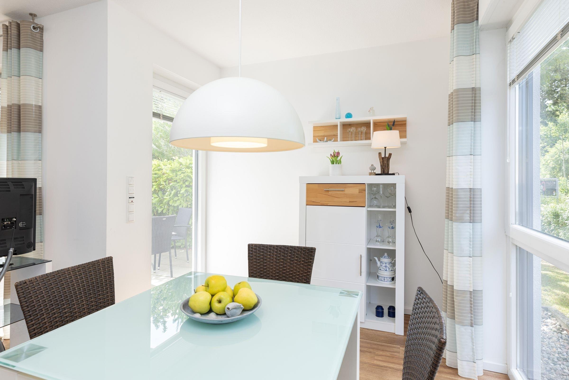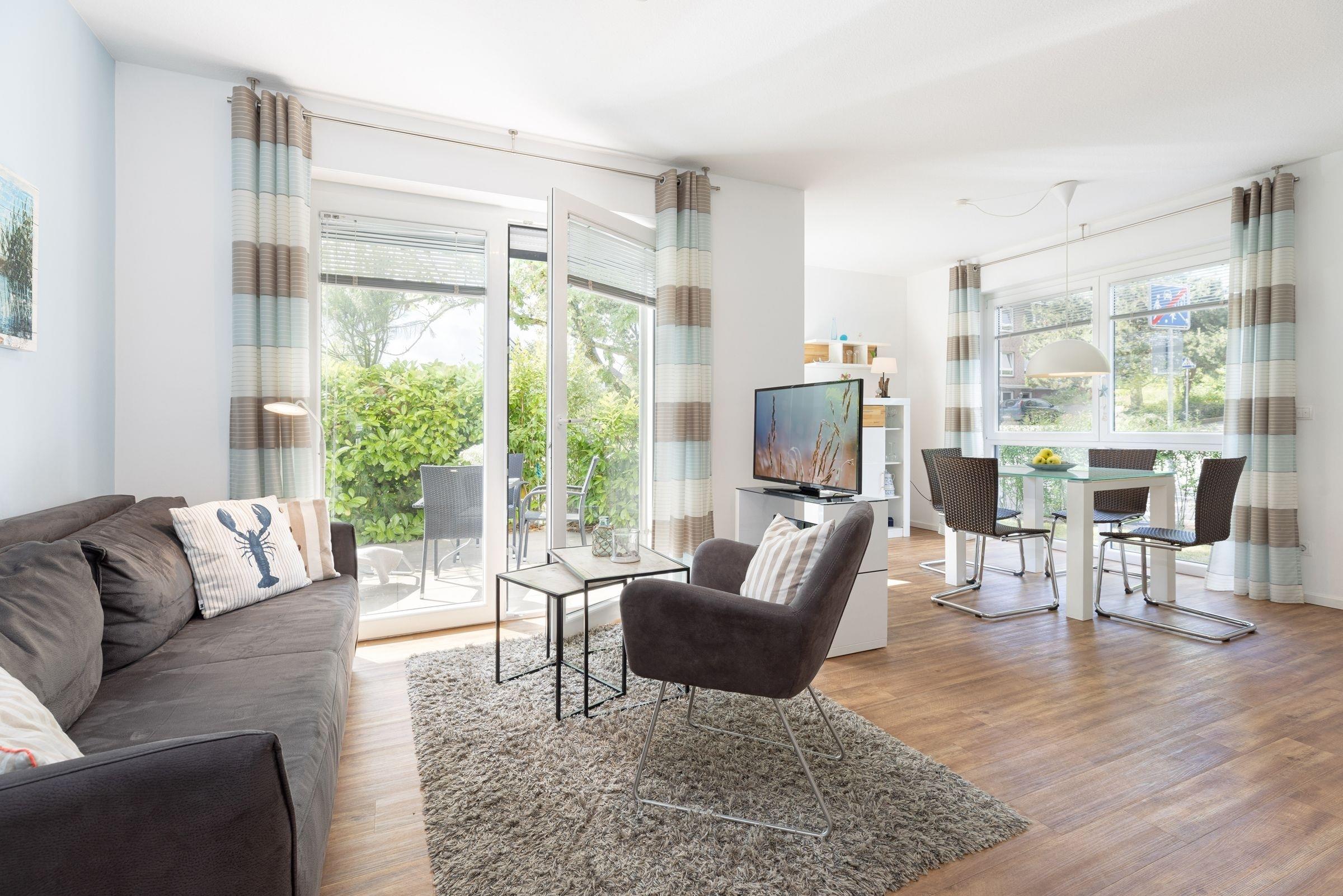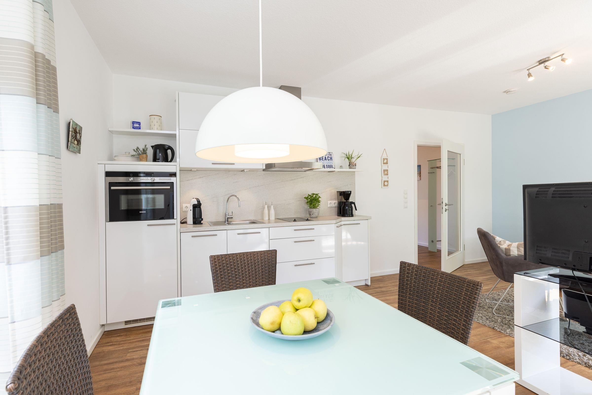 Genießen Sie Ihren Urlaub in dieser lichtdurchfluteten ca. 51 m² großen 2-Zimmer Ferienwohnung, die Ihnen mit einem Wohnraum mit hellem Essplatz und gemütlicher Fernsehecke inkl. Musikanlage und Blu-ray Player viel Raum zur Entspannung bietet. WLAN steht Ihnen selbstverständlich kostenlos zur Verfügung.