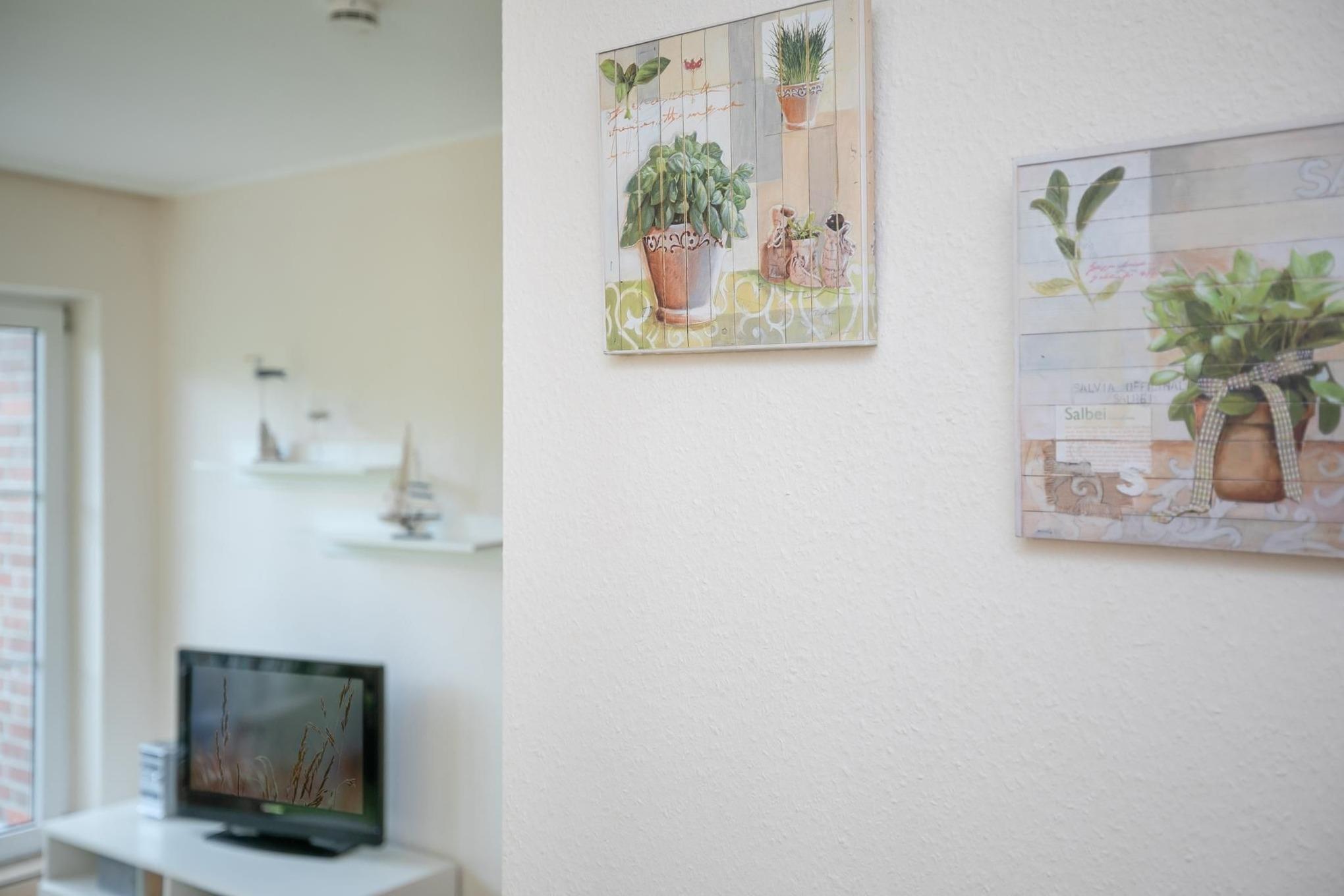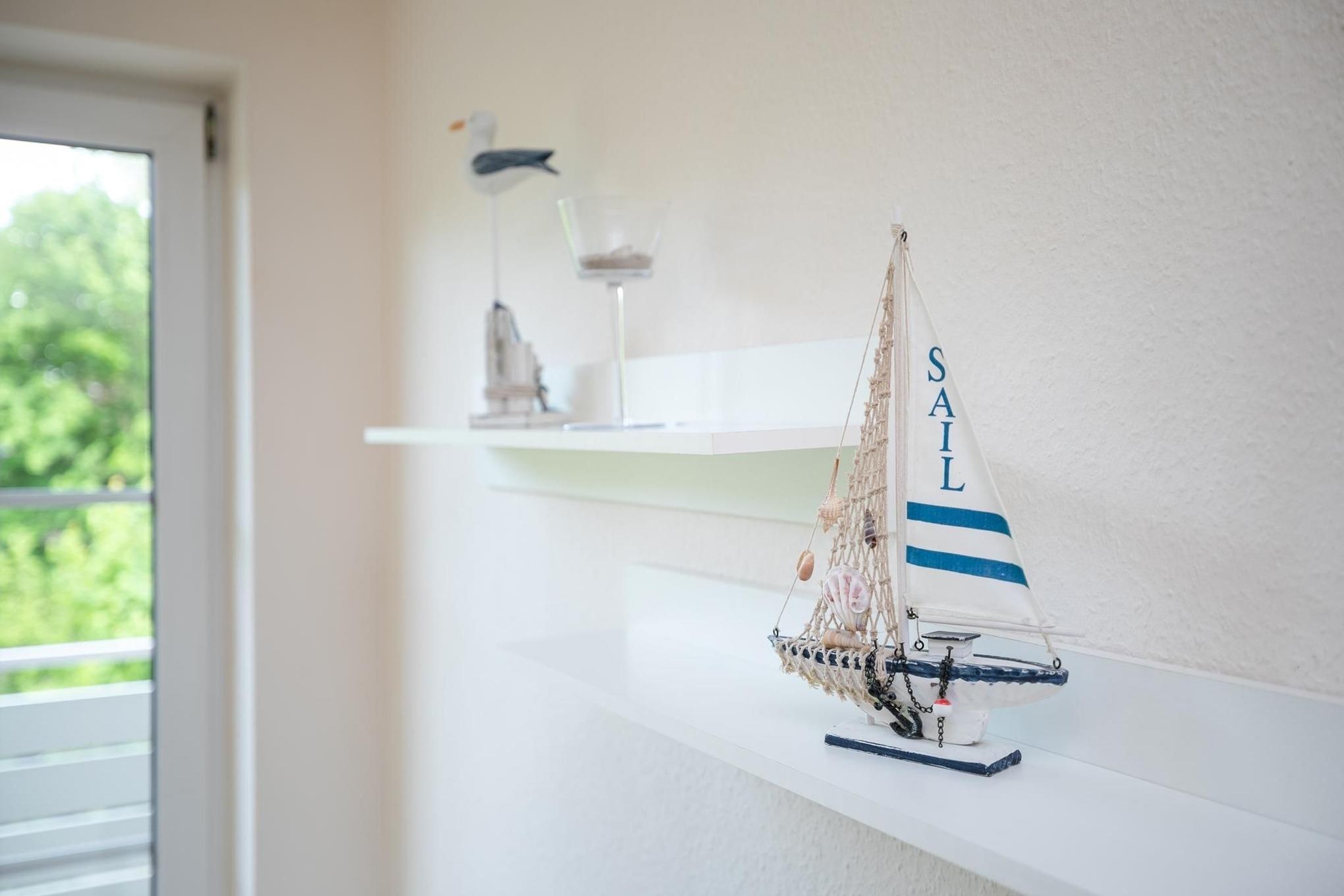 Die Ferienwohnung ist modern und geschmackvoll eingerichtet, sodass Sie sich sofort wohlfühlen werden. Im gemütlichen Wohnraum befinden sich eine Couchgarnitur mit Schlaffunktion (120x200 cm) und ein Smart-TV zum Entspannen. Die Küchenzeile ist ausgestattet mit Kühlschrank, einem Mini-Backofen, Gefrierfach, Geschirrspüler, 2-Plattenherd, Kaffeemaschine, Wasserkocher und Toaster. Genau daneben steht ein Esstisch zum Speisen. Vielleicht möchten Sie das schöne Wetter und die gute Ostseeluft genießen? Dann machen Sie es sich gemütlich auf dem möblierten Balkon mit schöner Sicht Richtung Ostsee. Zum nächtlichen Träumen lädt ein bequemes Boxspringbett (180x200 cm) im separaten Schlafzimmer ein. Das Duschbad ist hell gefliest.