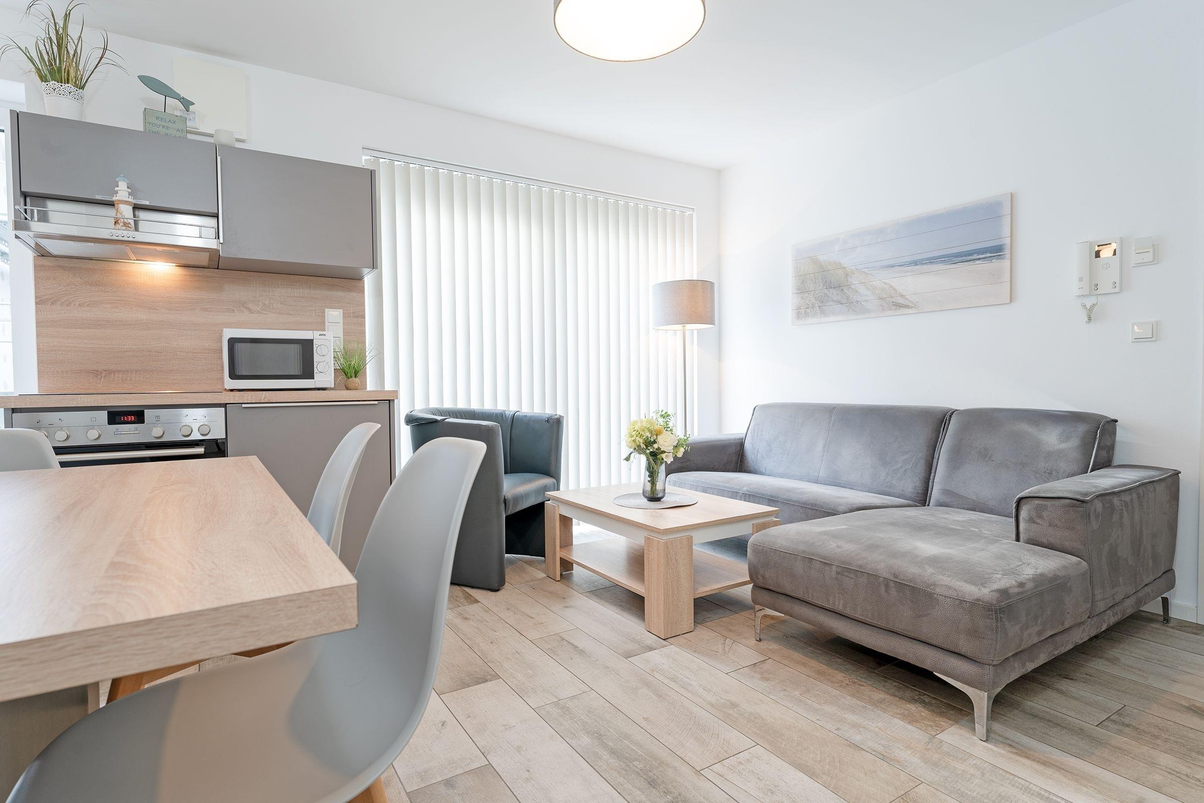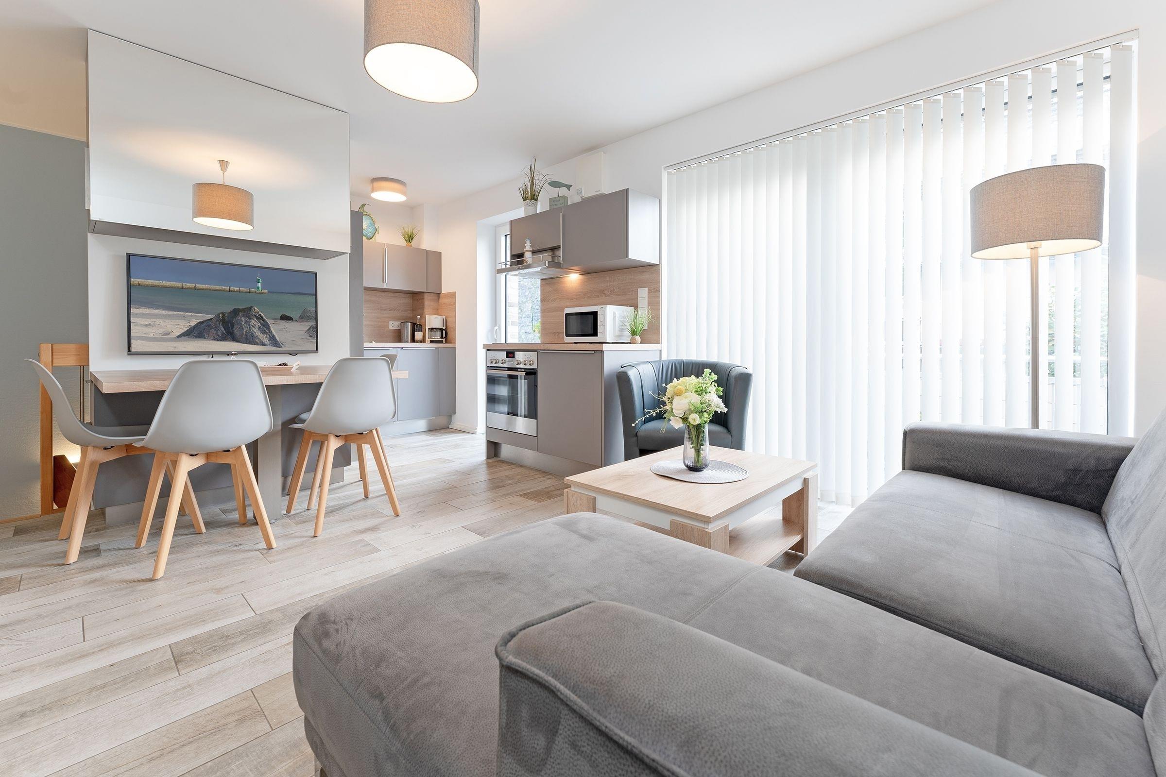 Die 3-Zimmer-Ferienwohnung Küstenliebe empfängt Sie, exklusiv eingerichtet, mit ca. 59 m² Wohnfläche. Bis zu 4 Gäste können in dieser lichtdurchfluteten Wohnung im Hochparterre ihren Urlaub genießen.