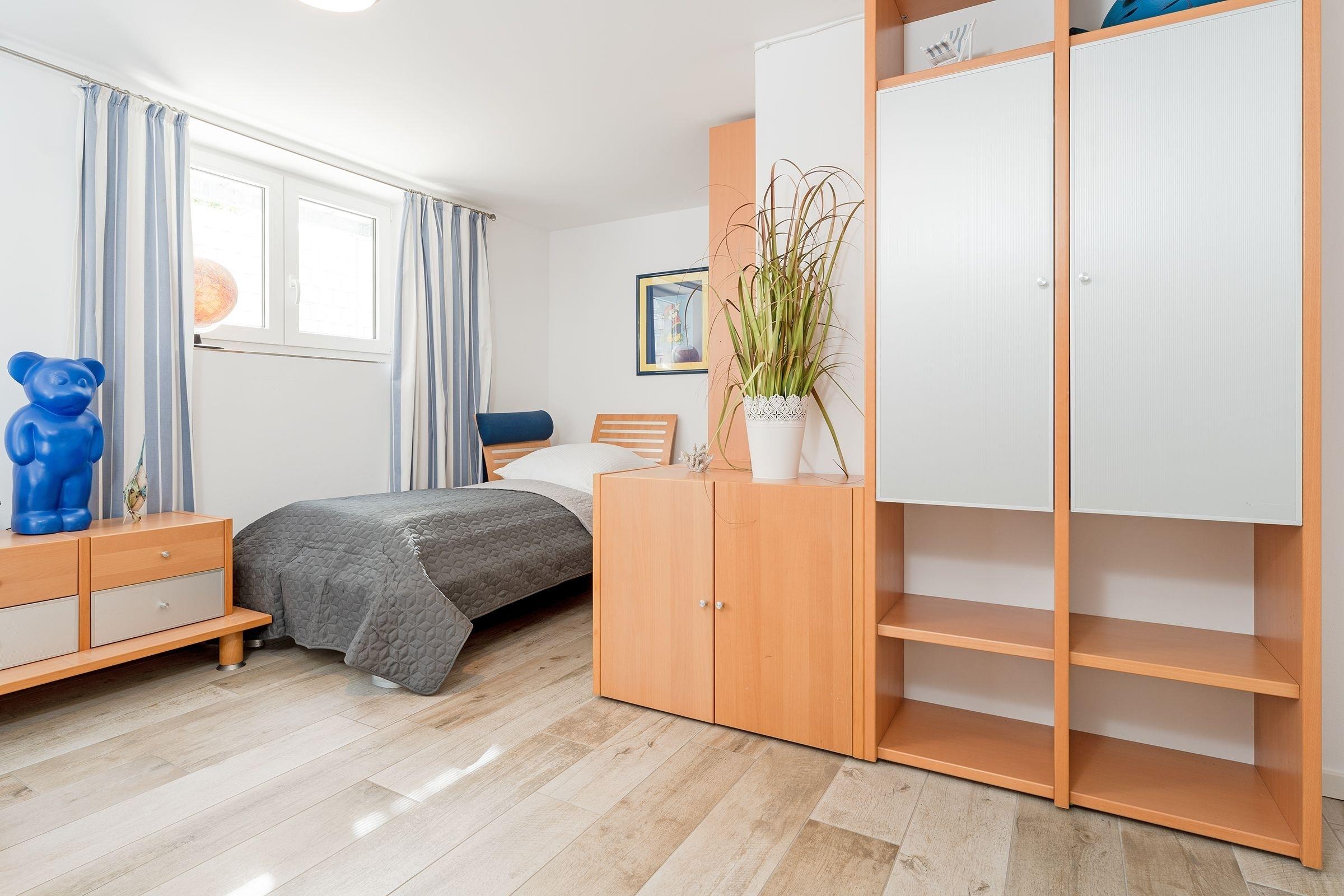 Schlafzimmer 2: 2 Einzelbetten (je 90x200cm) im Untergeschoss, Kleiderschrank