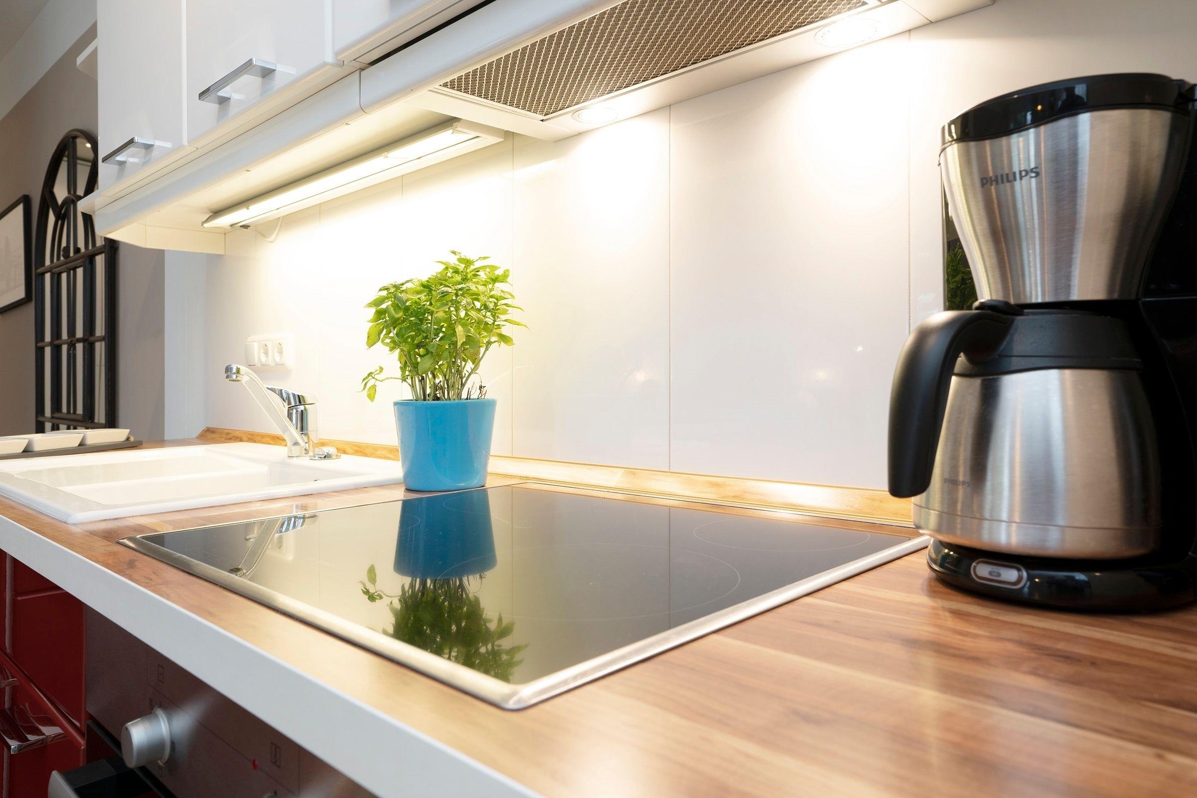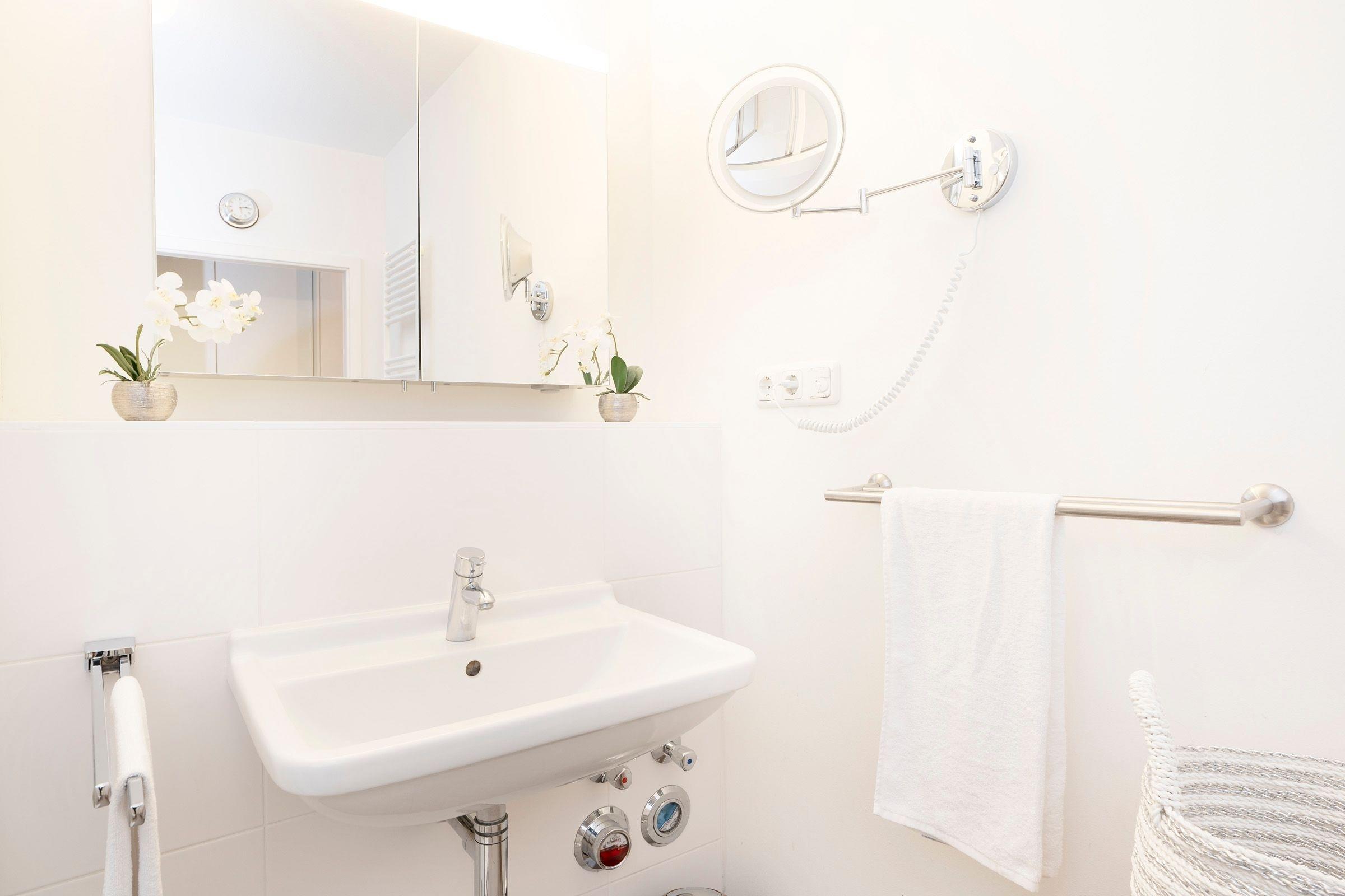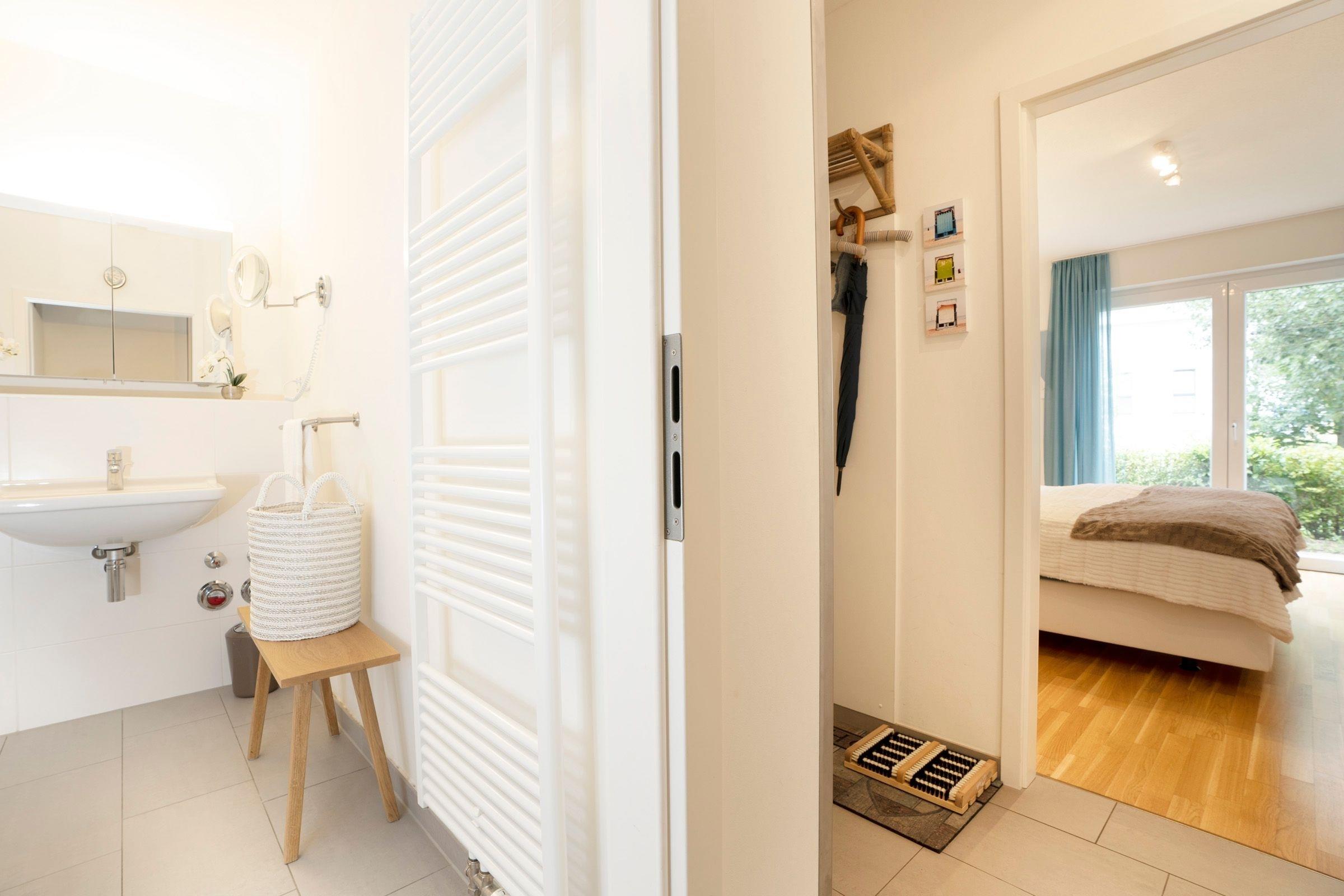 Die Wohnung verfügt über einen sehr schönen und hellen Wohn-Essbereich mit gemütlichem Sofa, das schnell zu einem Schlafsofa umfunktioniert werden kann. Flachbildfernseher (inkl. Netflix), Stereoanlage sowie kostenloses WLAN sind selbstverständlich. Vom Wohnzimmer aus gelangen Sie direkt auf den möblierten und herrlichen Süd-Balkon mit Markise. Die moderne und sehr hochwertige Küche ist mit vielen Komfort ausgestattet. Das Schlafzimmer verfügt über ein Boxspringbett (180x200 cm), einen geräumigen Kleiderschrank, einen Schreibtisch, einen Flachbildfernseher sowie den direkte Zugang zur Süd-Terrasse mit Sonnenliege. Zur Verdunkelung sind elektrische Rollläden angebracht. Das moderne Duschbad hat neben der Fußbodenheizung einen zusätzlichen Handtuchheizkörper. Hier finden Sie auch die zur Ferienwohnung gehörende Waschmaschine.