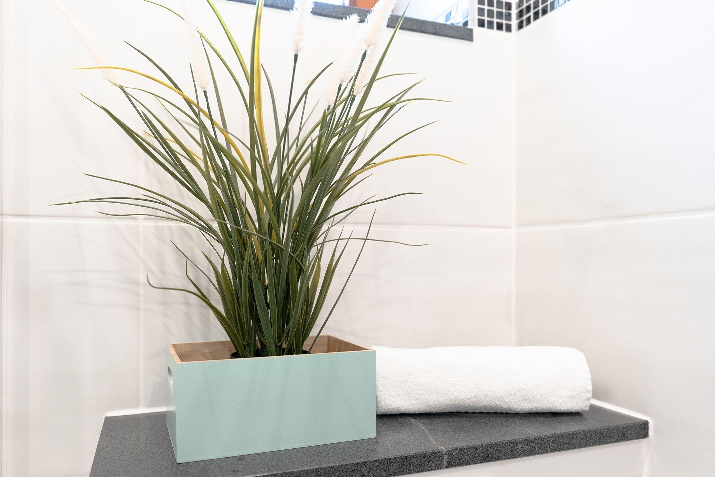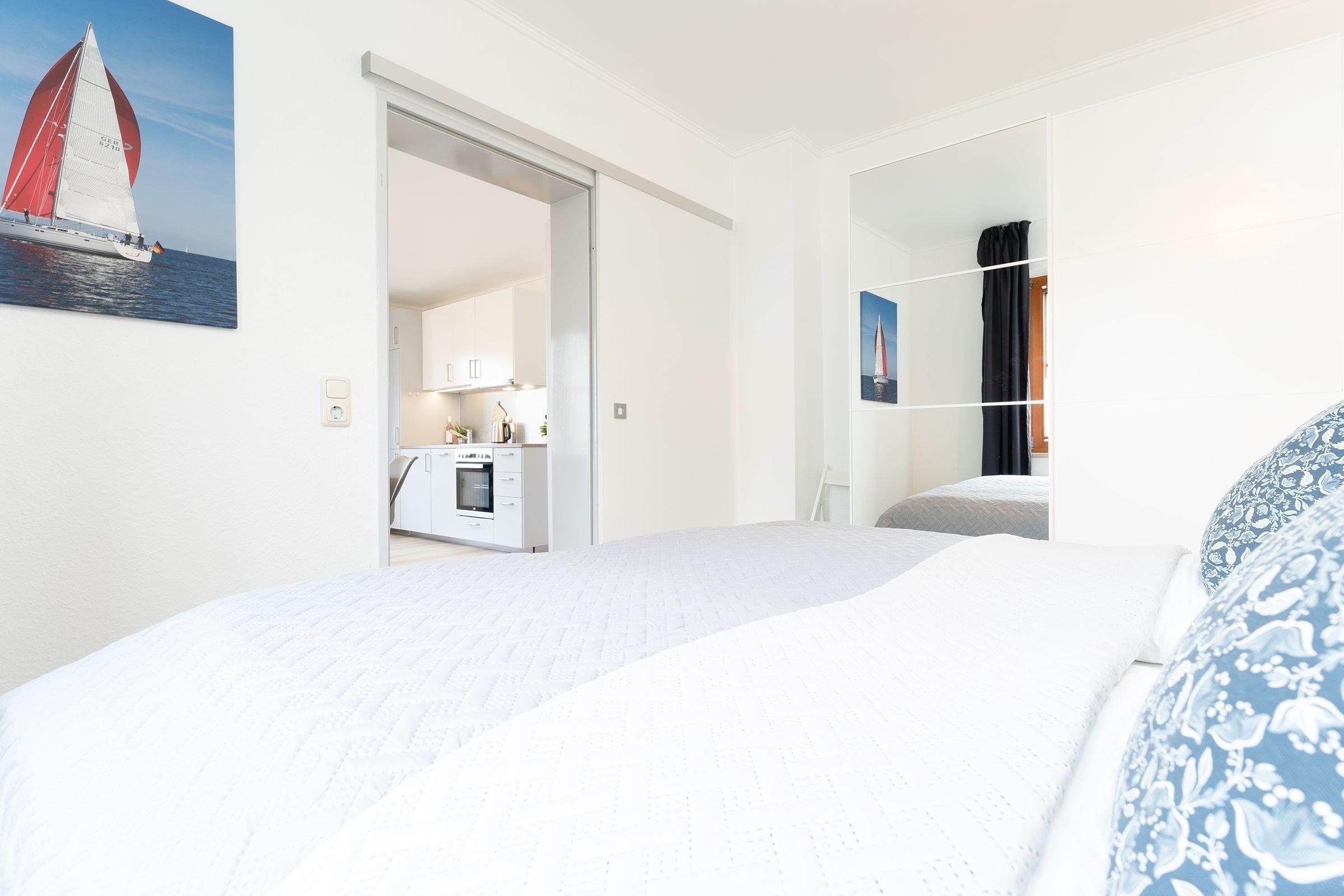 Ihr Feriendomizil bietet Ihnen einen hellen, lichtdurchfluteten Wohnraum mit einer clever integrierten Küchenzeile, die allen Komfort für einen Wohlfühlurlaub bietet. Mit Annehmlichkeiten wie einem 4-Platten-Cerankochfeld, Backofen und Spülmaschine lassen sich hier im Handumdrehen leckere Ferienrezepte kreieren. Genießen Sie doch mal das Abendessen oder einen stilvollen Sundowner draußen "al fresco" - vom Wohnzimmer aus gelangen Sie direkt auf den möblierten Balkon, der an lauen Sommerabenden zum Verweilen einlädt. Und wollen Sie es sich nach langen Strandtagen drinnen gemütlich machen, sorgen TV, CD-Player, Radio und DVD-Player für Unterhaltung. Das gemütliche Schlafsofa (140x200 cm) im Wohnbereich bietet bis zu 2 Personen eine bequeme Schlafstätte. Das separate Schlafzimmer ist hochwertig mit komfortablem Doppelbett (2x90x200 cm), sowie geräumigem Schiebetürenschrank für Ihre Urlaubsgarderobe ausgestattet. Das tageslichthelle und elegante Wohlfühlbad überzeugt mit Ausstattungsmerkmalen wie bodentiefer Dusche, WC und Fön. Rundherum liebevoll eingerichtet, überzeugt dieses Feriendomizil mit Strandflair und modern-maritimer Urlaubsatmosphäre. Der WLAN-Anschluss ist inklusive.