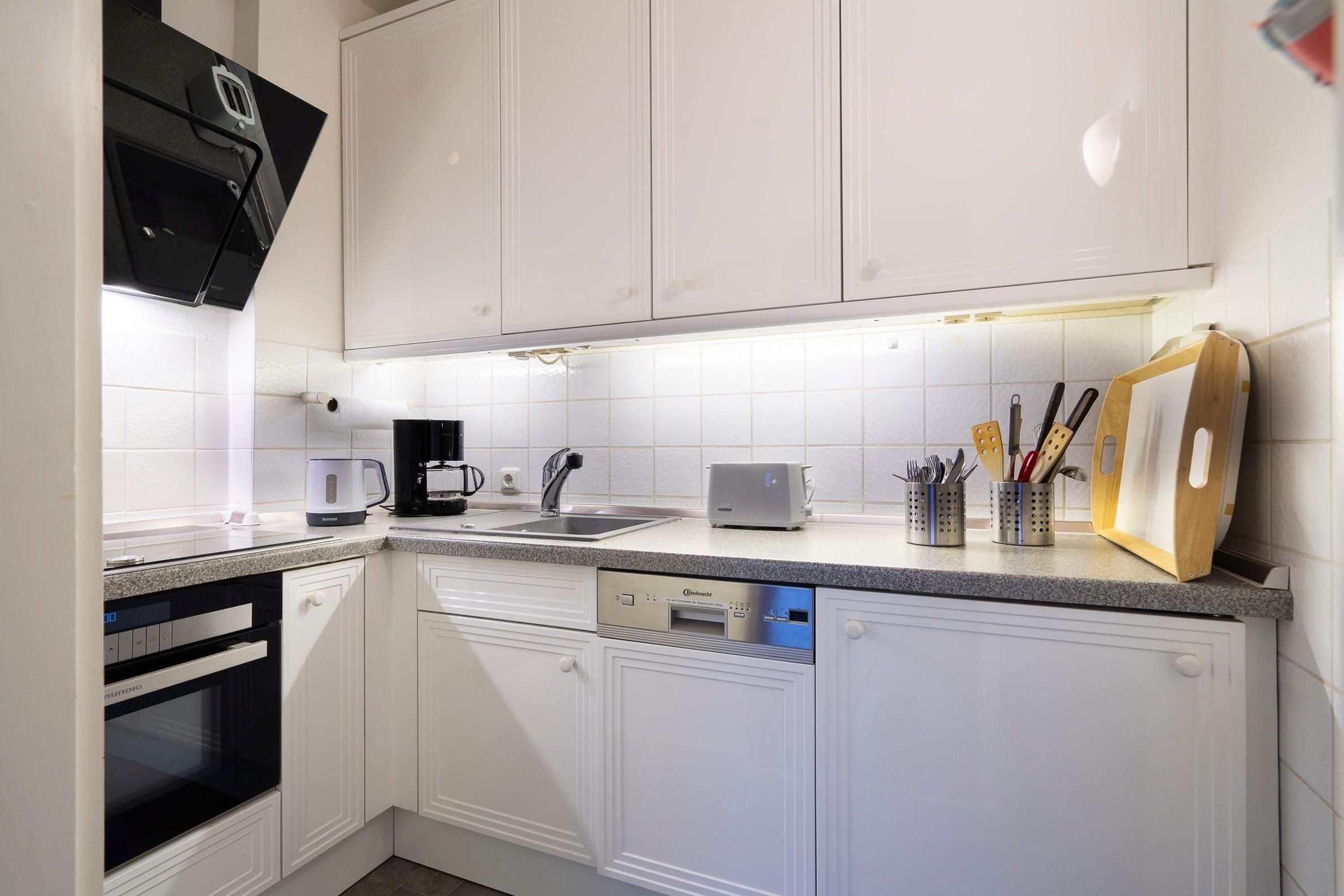 Es erwartet Sie ein großes, lichtdurchflutetes Wohnzimmer mit Essecke und gemütlicher Sitzgruppe sowie eine sehr gut ausgestattete Einbauküche mit Geschirrspüler, Herd, Backofen und Kühlschrank. Im Schlafzimmer steht ein großes Doppelbett-Boxspringbett (180x200 cm) für geruhsame Nächte zudem finden Sie hier reichlich Stauraum für Ihr Urlaubsgepäck. Durch Gardinen lässt sich das Schlafzimmer angenehm abdunkeln.