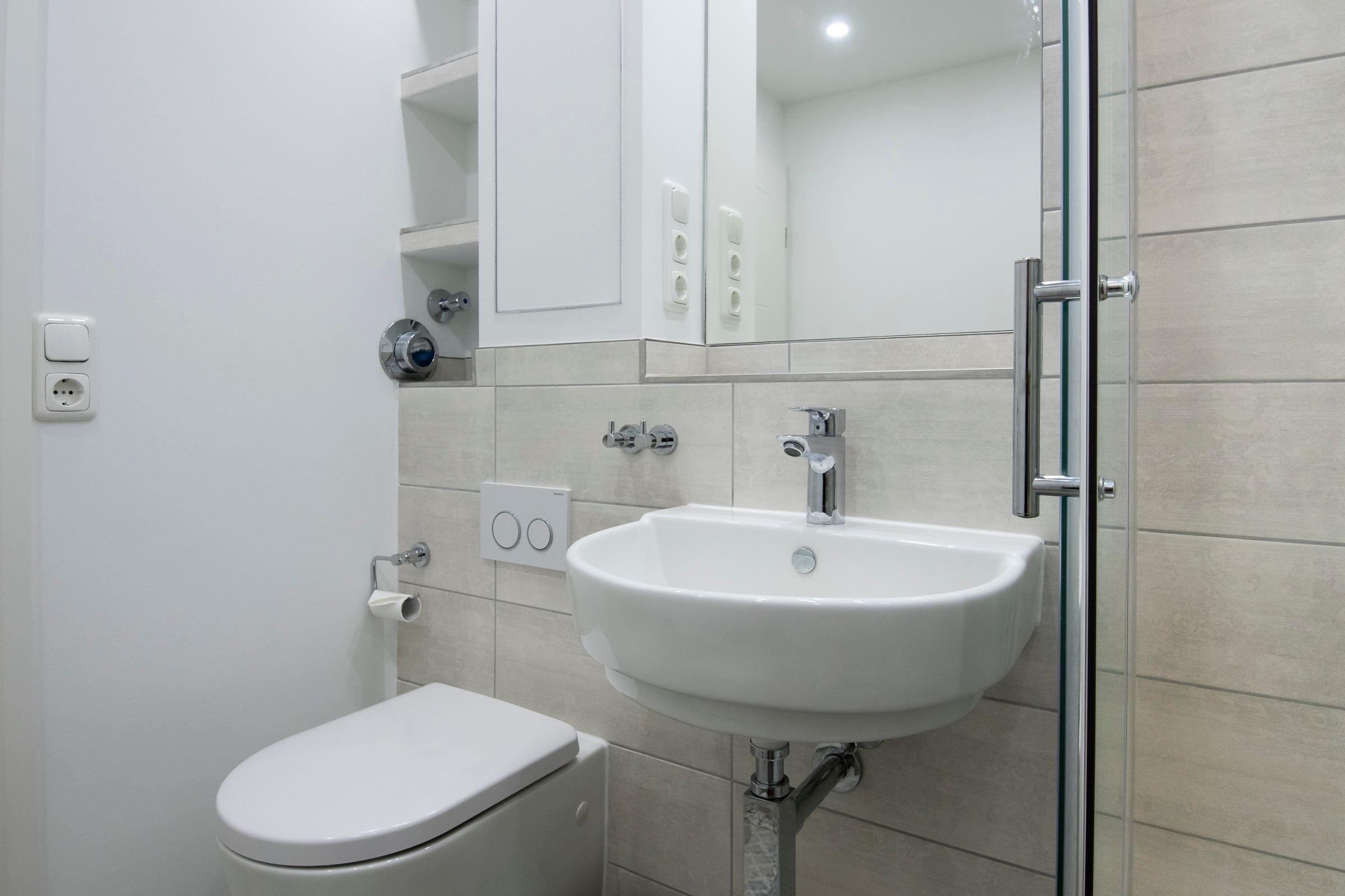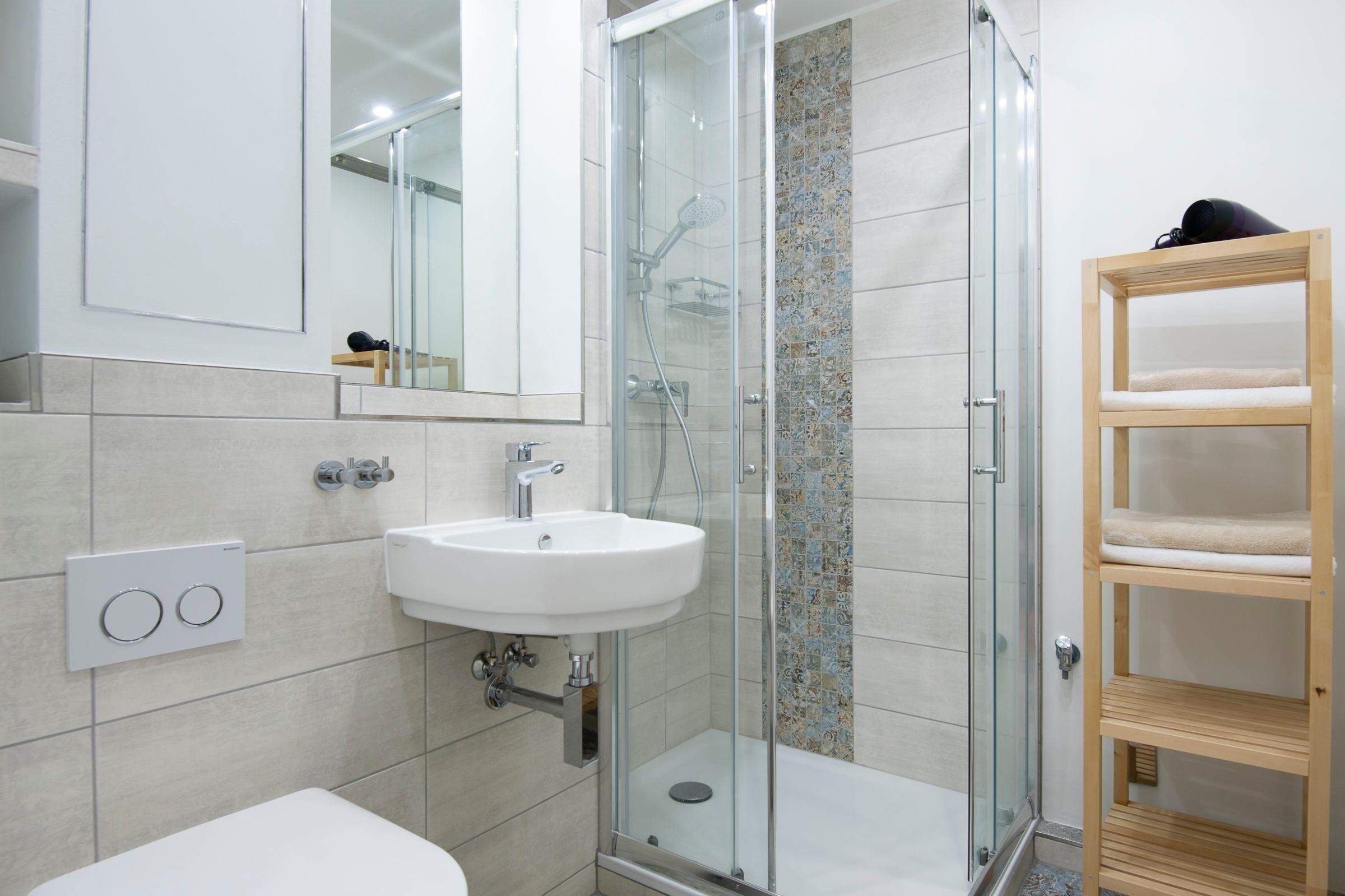 Das ebenfalls neu gestaltete Badezimmer in schickem Design rundet die tolle Ausstattung dieses Feriendomizils ab.
