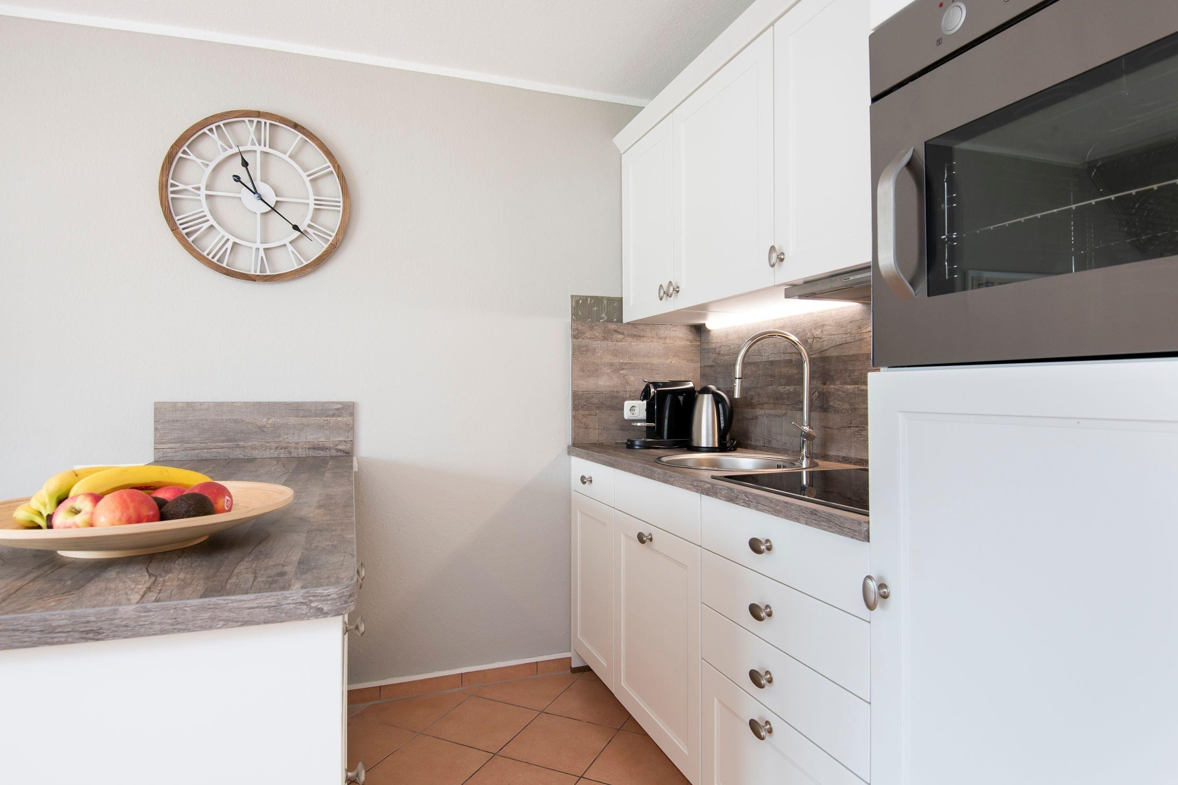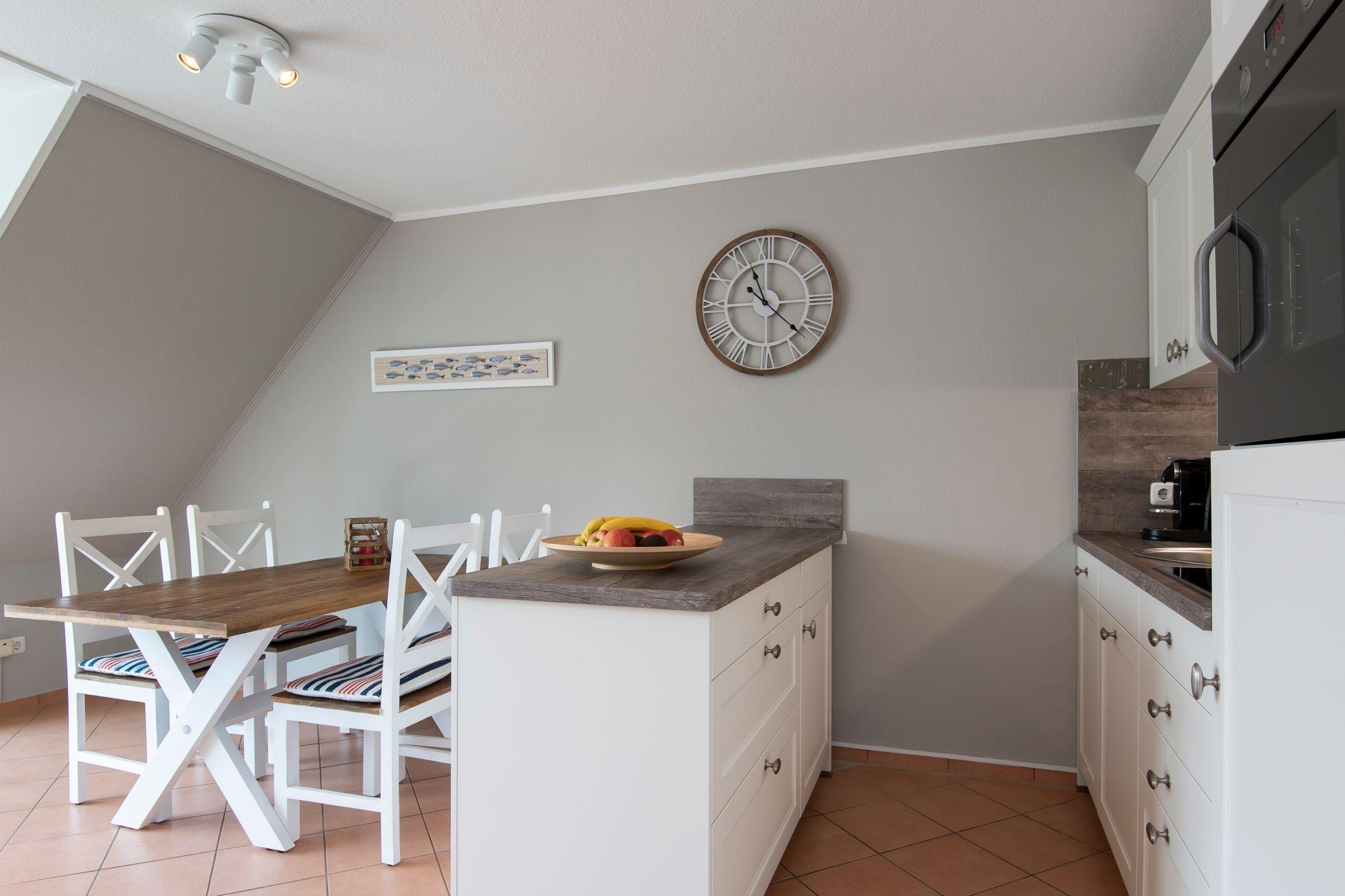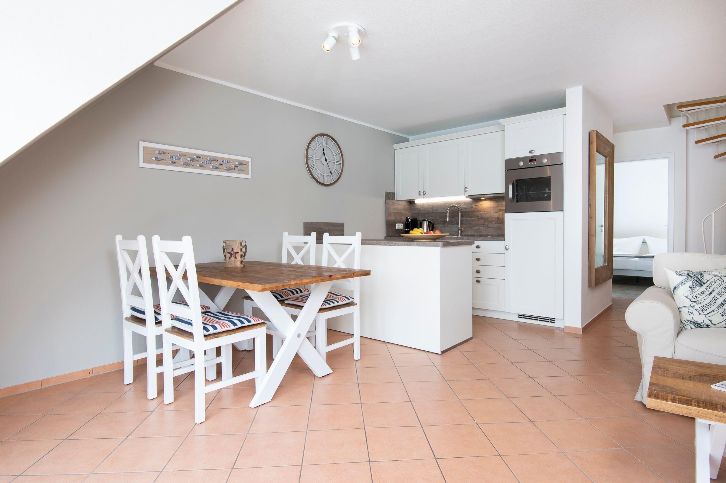 Der neu gestaltete Wohnbereich mit Außenjalousien lädt zu entspannten Stunden ein. Relaxen Sie auf der gemütlichen Couch bei einem guten Film oder liefern Sie sich spannende Duelle bei Gesellschaftsspielen am großzügigen Esstisch. In der offenen Küche zaubern Sie für Ihre Lieben köstliche Mahlzeiten, falls Sie das gastronomische Angebot von Scharbeutz mal nicht in Anspruch nehmen wollen. Auf dem möblierten Balkon genießen Sie lauschige Abende bei einem guten Glas Wein oder bei einem schönen Buch.