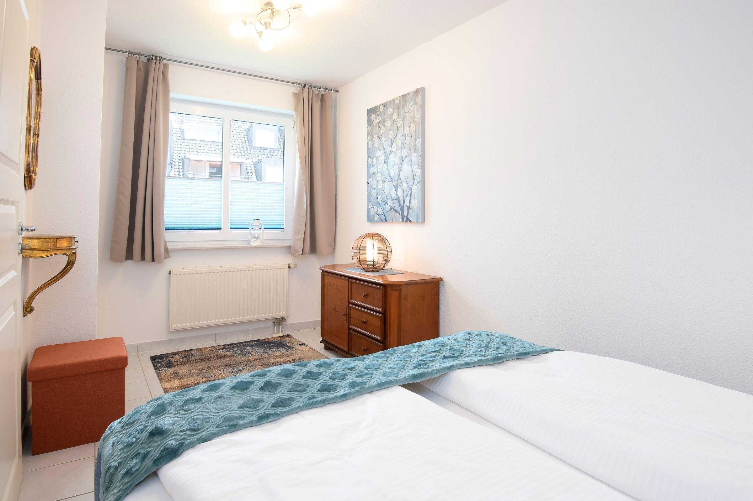 Schlafzimmer: 1 Doppelbett (2x 80x200 cm), Verdunkelungsgardinen