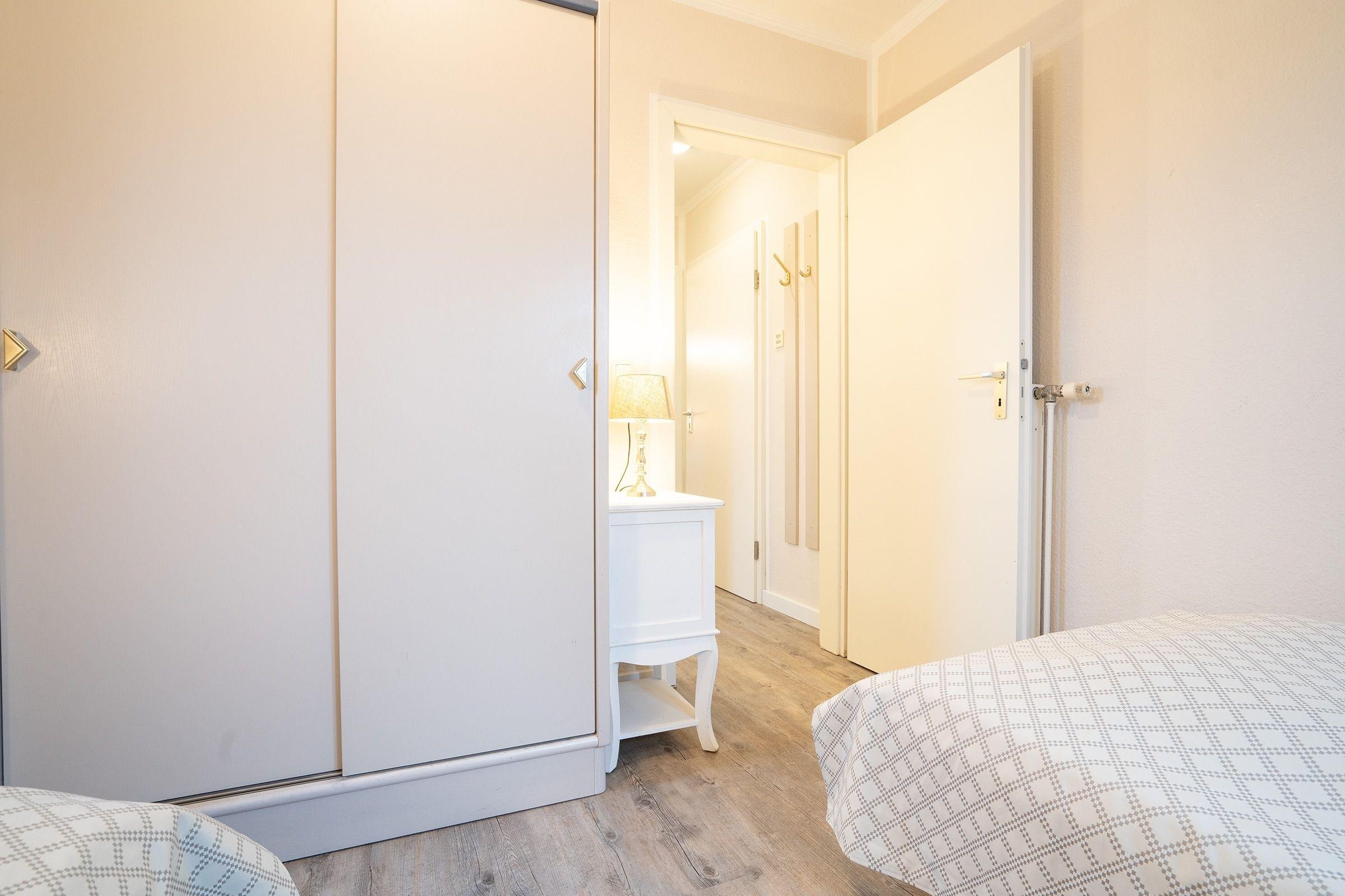 Schlafzimmer (1. OG): 1 Doppelbett (2 x 80x200 cm), Kleiderschrank, Verdunkelung (Lamellen).