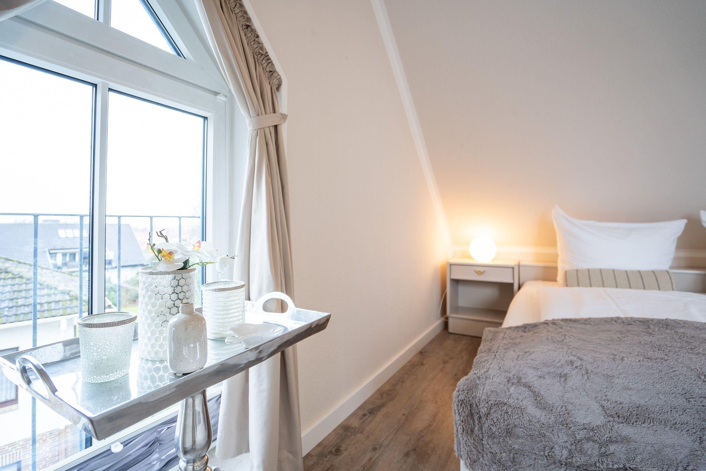 Schlafzimmer (2. OG): 2 Einzelbetten (je 90x200 cm), Verdunkelung (Lamellen).
