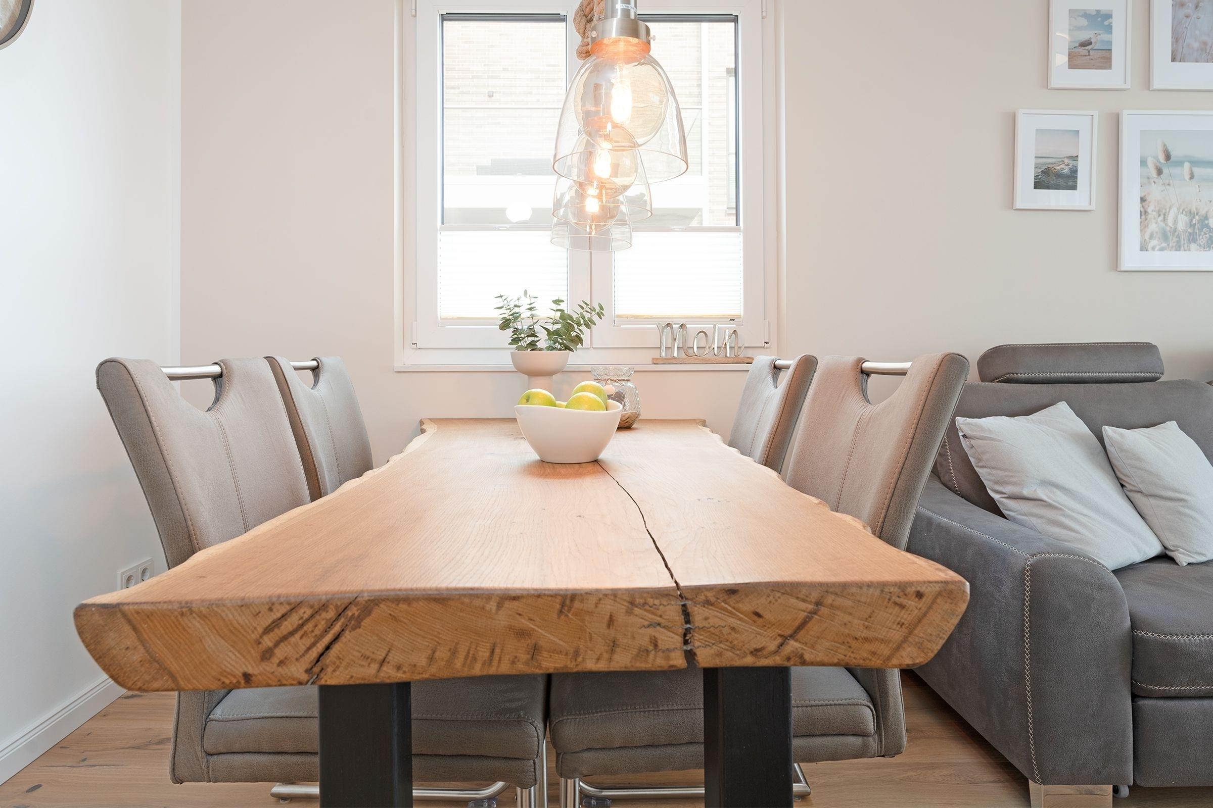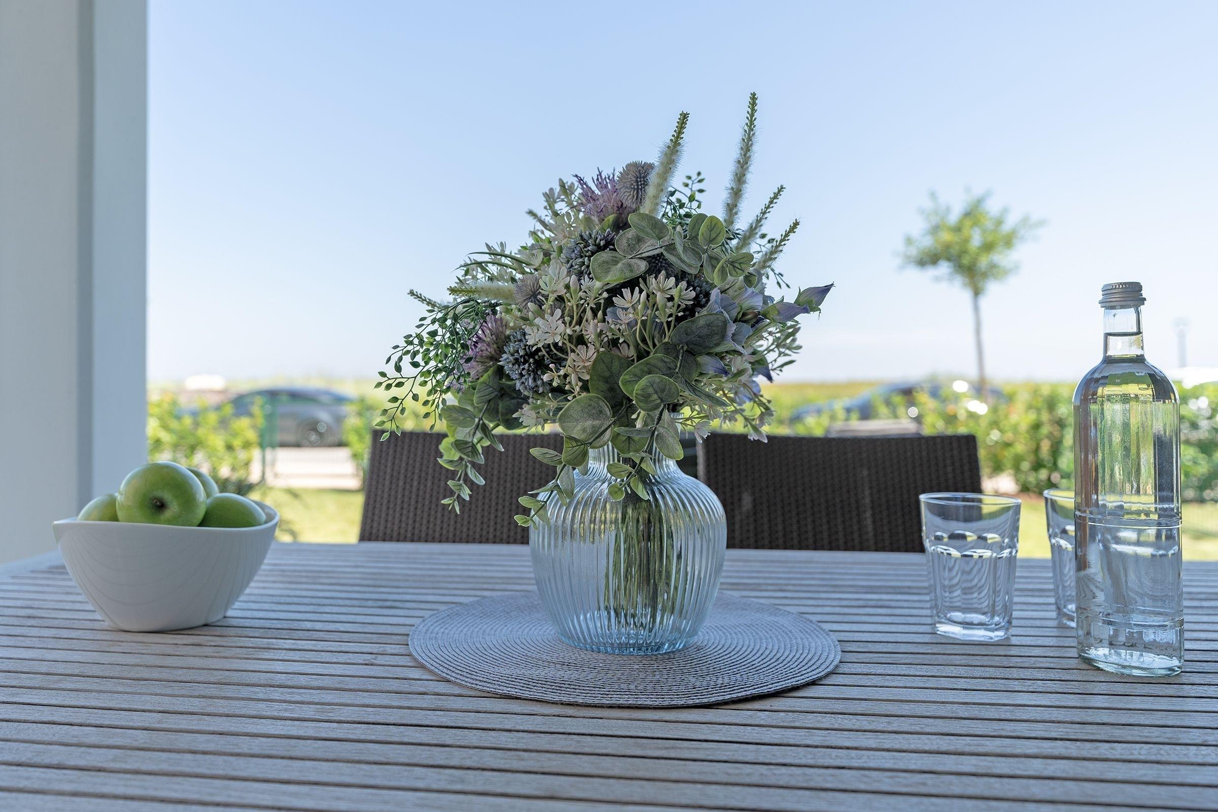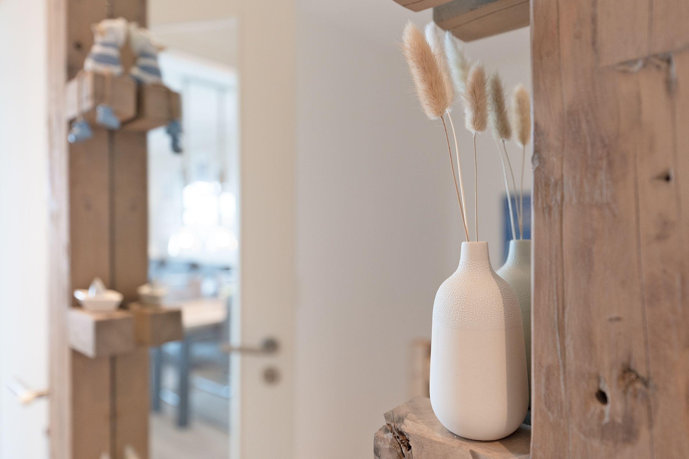 Hell, modern und in maritimem Chic empfängt Sie der offene Wohnbereich mit gemütlicher Couch, die bei Bedarf in einen weiteren Schlafplatz (120x230 cm) verwandelt werden kann. In der hochwertigen Küche, die mit allen Annehmlichkeiten ausgestattet ist, bereitet Ihnen das Zubereiten der Mahlzeiten bestimmt besonders viel Freude. Nehmen Sie Platz am großzügigen Esstisch und planen Sie gemeinsam den kommenden Urlaubstag. Genießen Sie zahlreiche Sonnenstunden auf der möblierten Terrasse und machen Sie es sich im windgeschützten Strandkorb gemütlich - untermalt vom Rauschen der Ostsee. Im Erdgeschoss befindet sich neben dem Gäste-WC außerdem eines der beiden Schlafzimmer, das Sie mit einem luxuriösen Boxspringbett (ca. 180x200cm) empfängt. Das zweite Schlafzimmer mit Bad en Suite erwartet Sie im Souterrain, ebenfalls mit einem großen Boxspringbett (ca. 180x200cm). Das Badezimmer mit ebenerdiger Dusche und Doppelwaschtisch vermittelt Wellness-Feeling. Zur Nacht lassen sich alle Zimmer angenehm abdunkeln.