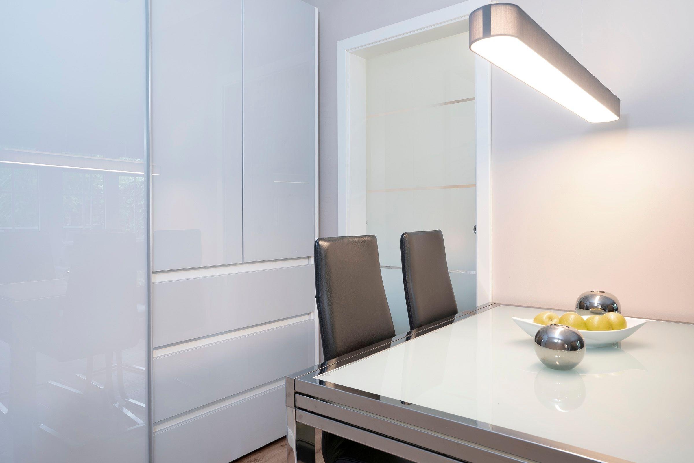 Im Wohnraum befinden sich eine hochwertige Couchgarnitur (Ottomane), welche zu einem Doppelbett (140x200 cm) ausgezogen werden kann. Ein DAB+-Internetradio mit Bluetooth, ein 55 Zoll Smart-TV und eine Spielesammlung lassen keine Langeweile aufkommen. Die moderne, sehr gut ausgestattete Einbauküche ist in den Wohnbereich integriert und mit den notwendigen Alltagshelfern und sogar einem Waffeleisen voll ausgestattet. Am Esstisch finden 4 Personen Platz. Im separaten Schlafzimmer sorgt ein Doppelbett (160x200 cm) für erholsame Nachtruhe. Außerdem ist das Schlafzimmer zusätzlich mit einem TV ausgestattet. Das hell geflieste Badezimmer mit Dusche und Haartrockner rundet das Angebot dieser Ferienwohnung ab. Die nicht einsehbare, windgeschützte Terrasse mit Markise bietet eine schöne Süd-Ausrichtung und verfügt über Gartenmöbel (Gartentisch mit 4 Stühle, 2 Relax-Liegestühle und 2 Liegen) mit Polsterauflagen.