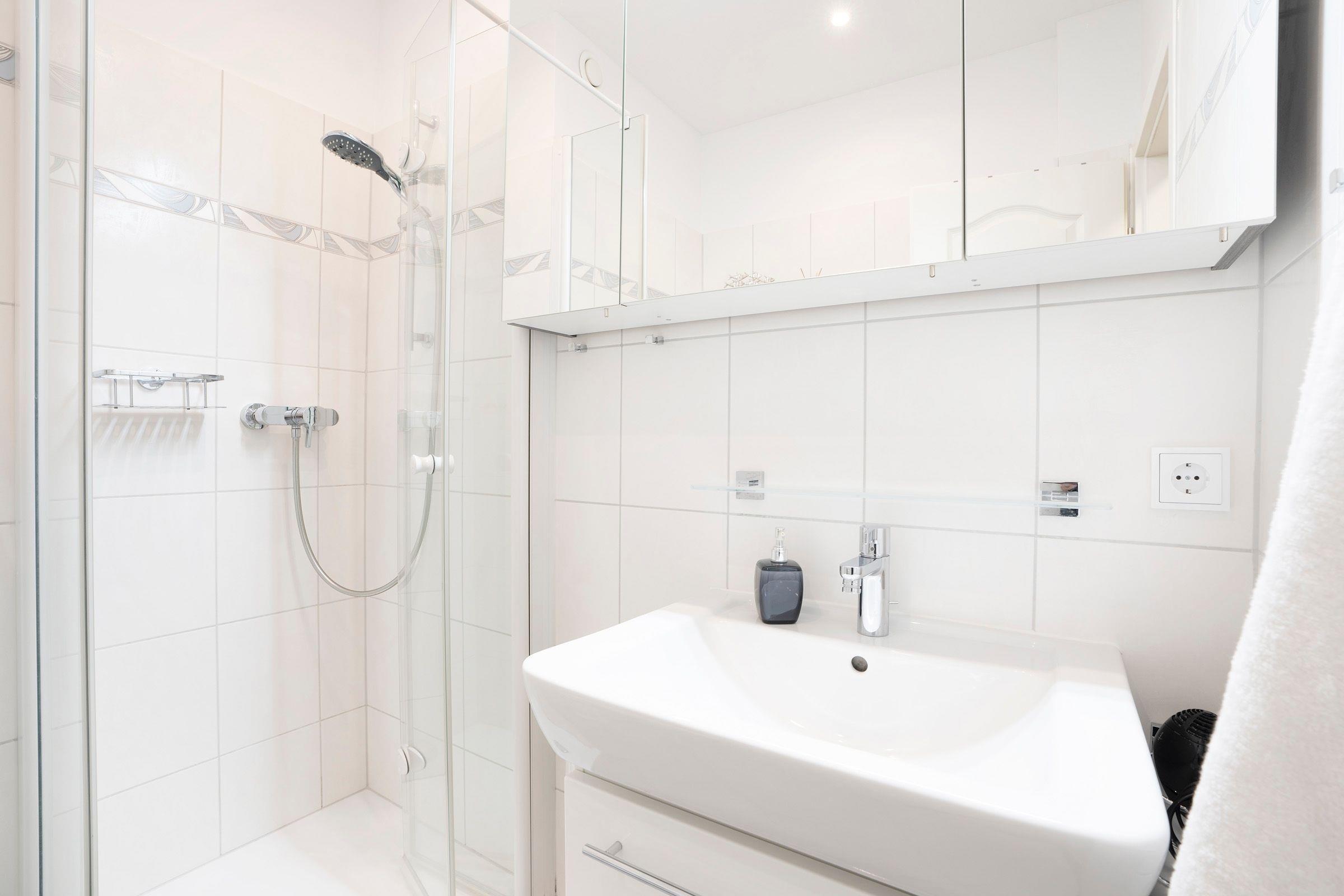 Ein PKW-Außenstellplatz ist für Sie reserviert. Kostenloses WLAN steht Ihnen zur Verfügung. Außerdem befindet sich im Haus eine Gemeinschafts-Waschküche mit Waschmaschine und Trockner (gegen Gebühr). Ihre mitgebrachten Fahrräder können Sie entweder im ebenerdigen Fahrradkeller unter der Treppe im Haus oder an den Fahrradbügeln im Eingangsbereich des Hauses abstellen.