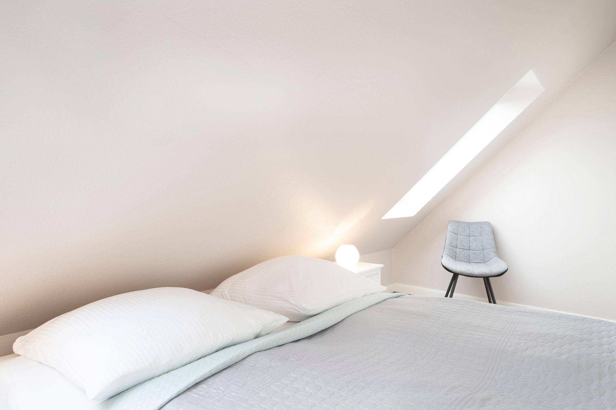 Schlafzimmer 1: 1 Doppelbett (2x 90x200 cm), Kleiderschrank, Verdunkelungsmöglichkeit: Rollo, kein Platz für Babybett vorhanden