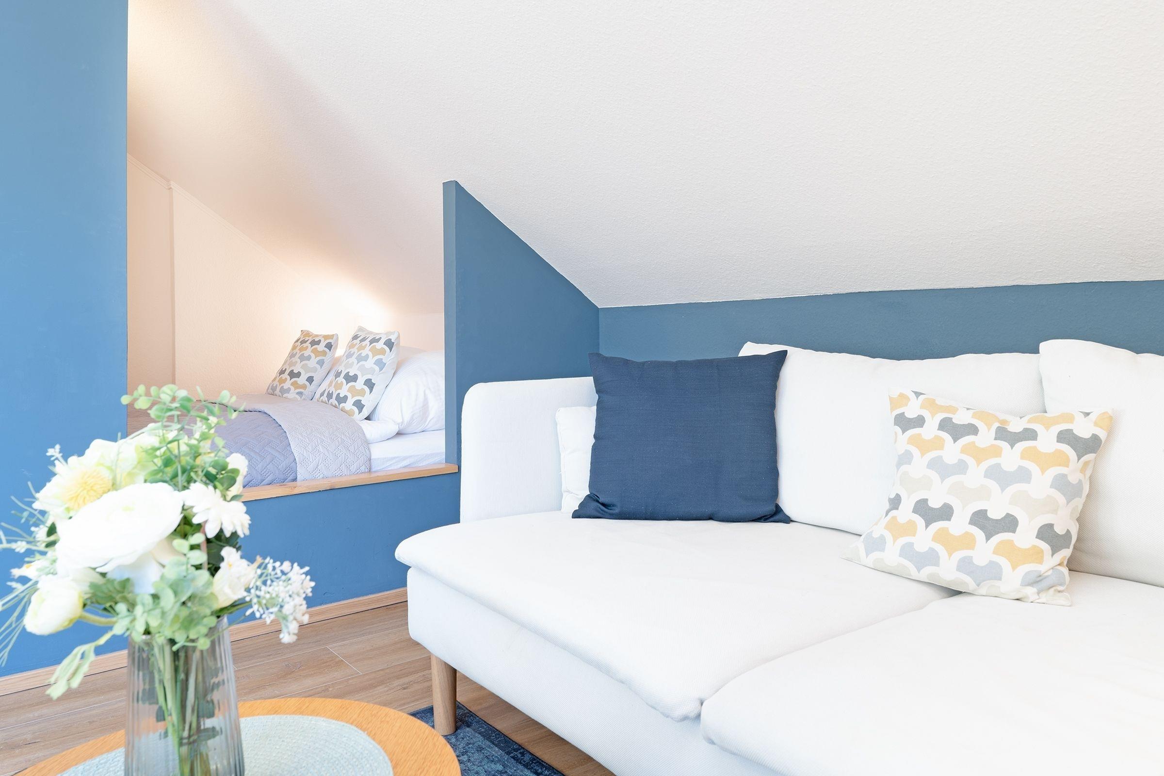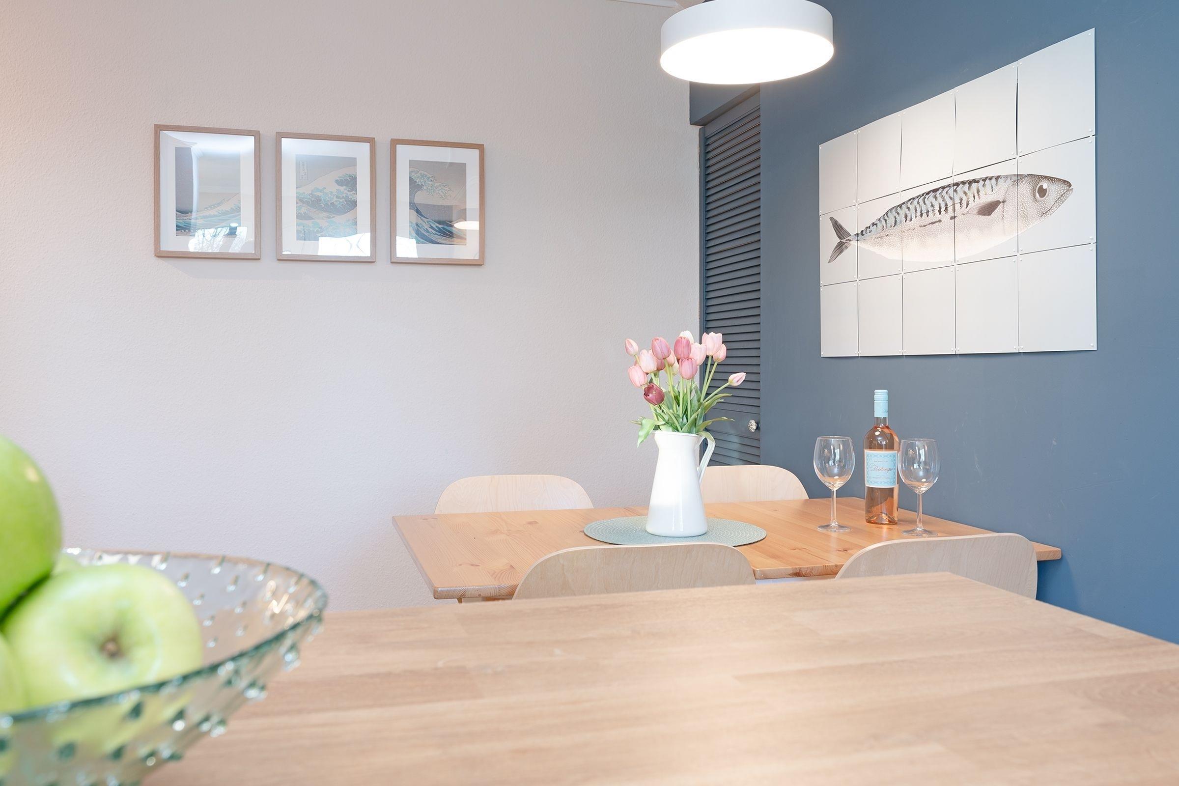 Zwischen diesem exklusiven Objekt in der Wohnanlage Haus Baltic und dem Ostseestrand liegen nur rund 100 Meter – klingt das nicht verlockend? Dann hereinspaziert, der schicke Wohnbereich präsentiert sich im meeresblauen Look. Ob Sie nun auf der gemütlichen Couch Platz nehmen, auf dem möblierten Balkon oder in der schicken Essecke – Sie werden sich überall wohlfühlen und Ihre Auszeit genießen. Die offen gestaltete Küche ist gut ausgestattet und punktet mit einer Senseo-Maschine und einem Geschirrspüler. Ebenso im Wohnbereich, aber etwas für sich, befindet sich ein Doppelbett (160x200 cm) für die Nachtruhe. Träumen Sie hier vom tiefblauem Meer. Das separate Kinderzimmer ist mit einem Kojenbett (2x 80x190 cm) ausgestattet. Das innenliegende Duschbad ist modern.