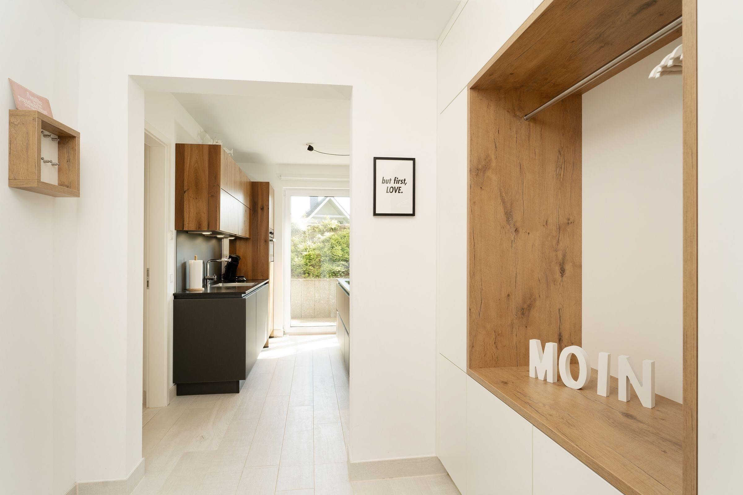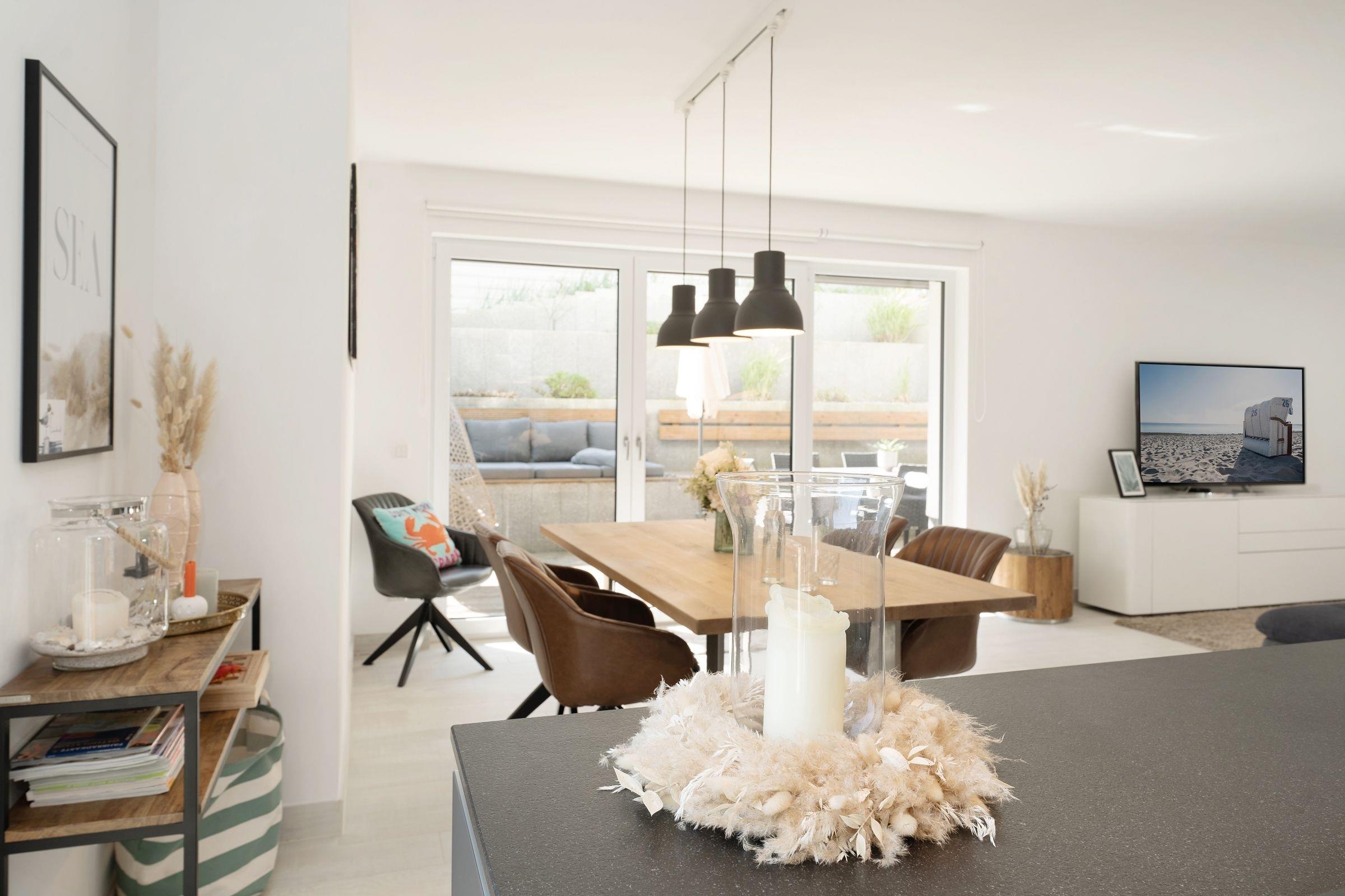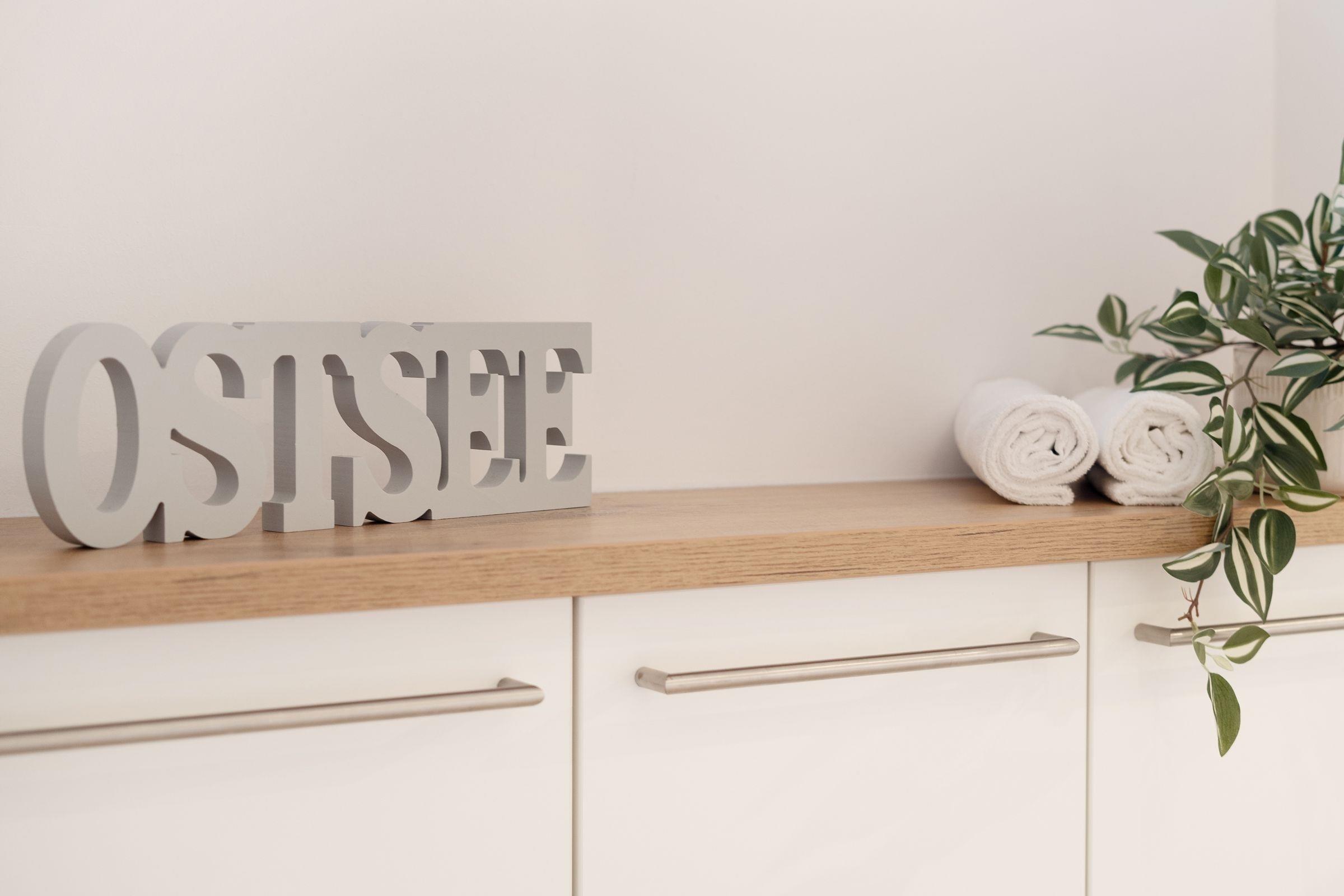 Geschmackvoll und stilsicher eingerichtet präsentiert sich die Ferienwohnung Ostsee Koje 45. Wie wäre es mit einem Drink auf der überdachten Terrasse? Oder machen Sie es sich auf der großzügigen Sofalandschaft vor dem TV gemütlich - und auch die edle Essecke lädt zum Verweilen ein. Die offene Küche mit schickem Küchenblock ist modern ausgestattet und bietet Extras wie Induktionsherd, Espresso-Maschine (Senseo) und Geschirrspüler. Nach einem wundervollen Tag am Strand träumen Sie himmlisch im Boxspring-Doppelbett (200x220 cm) im Schlafzimmer. Hier befindet sich ein weiteres TV-Gerät. Das zweite Schlafzimmer ist mit einem Etagenbett (je 140x200 cm) möbliert. Auch die Couch im Wohnzimmer bietet einen Schlafplatz (136x280 cm). Das komfortable, tageslichthelle Bad punktet mit bodengleicher Dusche, Fußbodenheizung und Handtuchwärmer. Dazu gibt es ein Gäste-WC. Ein Kinderhochstuhl steht für die kleinen Gäste bereit.