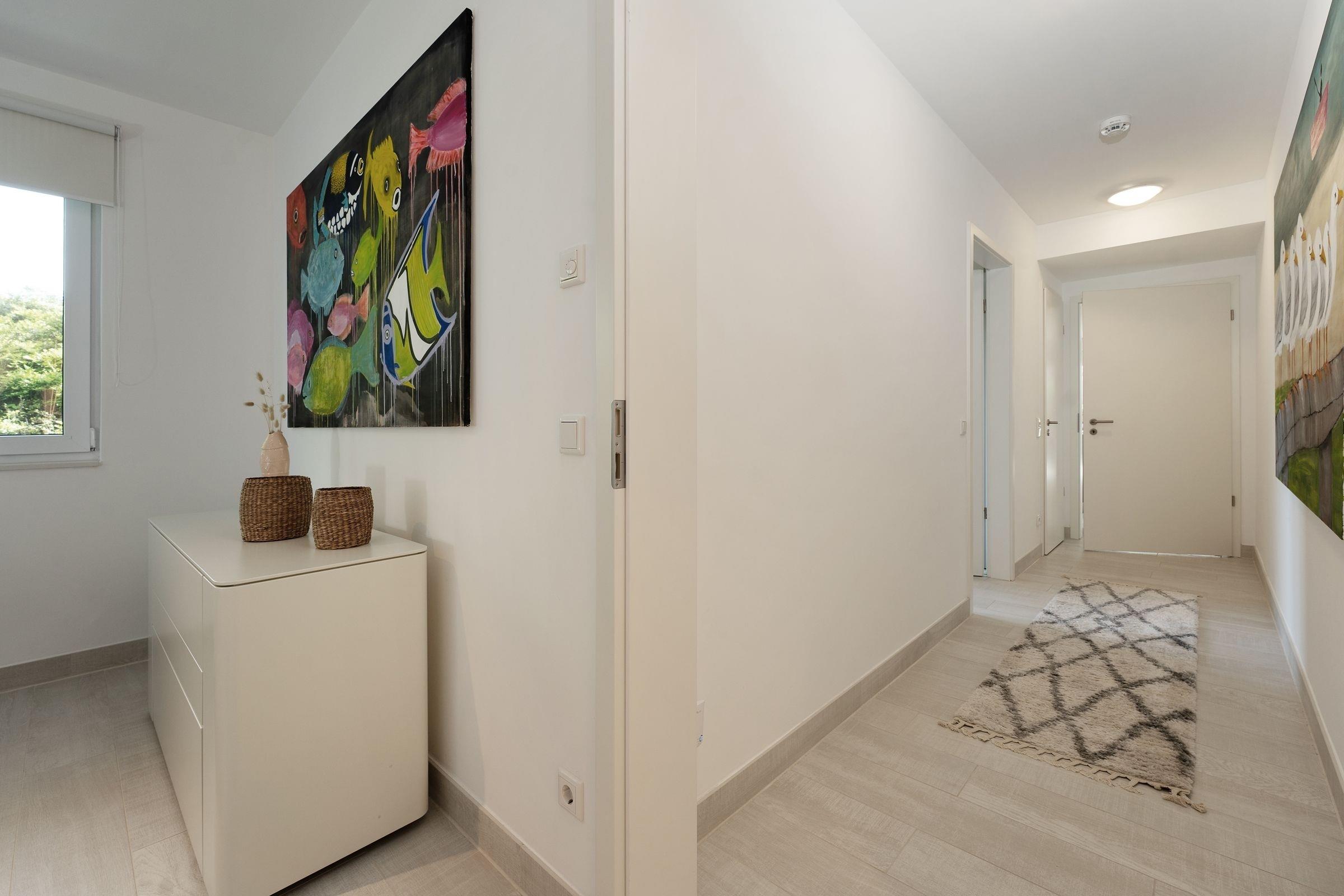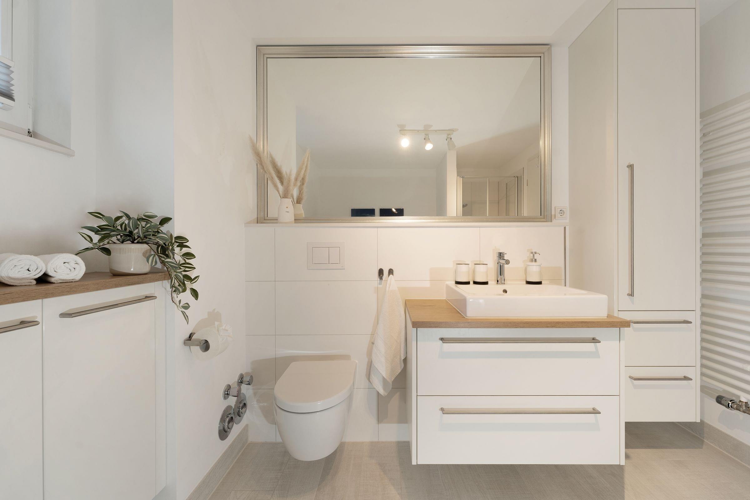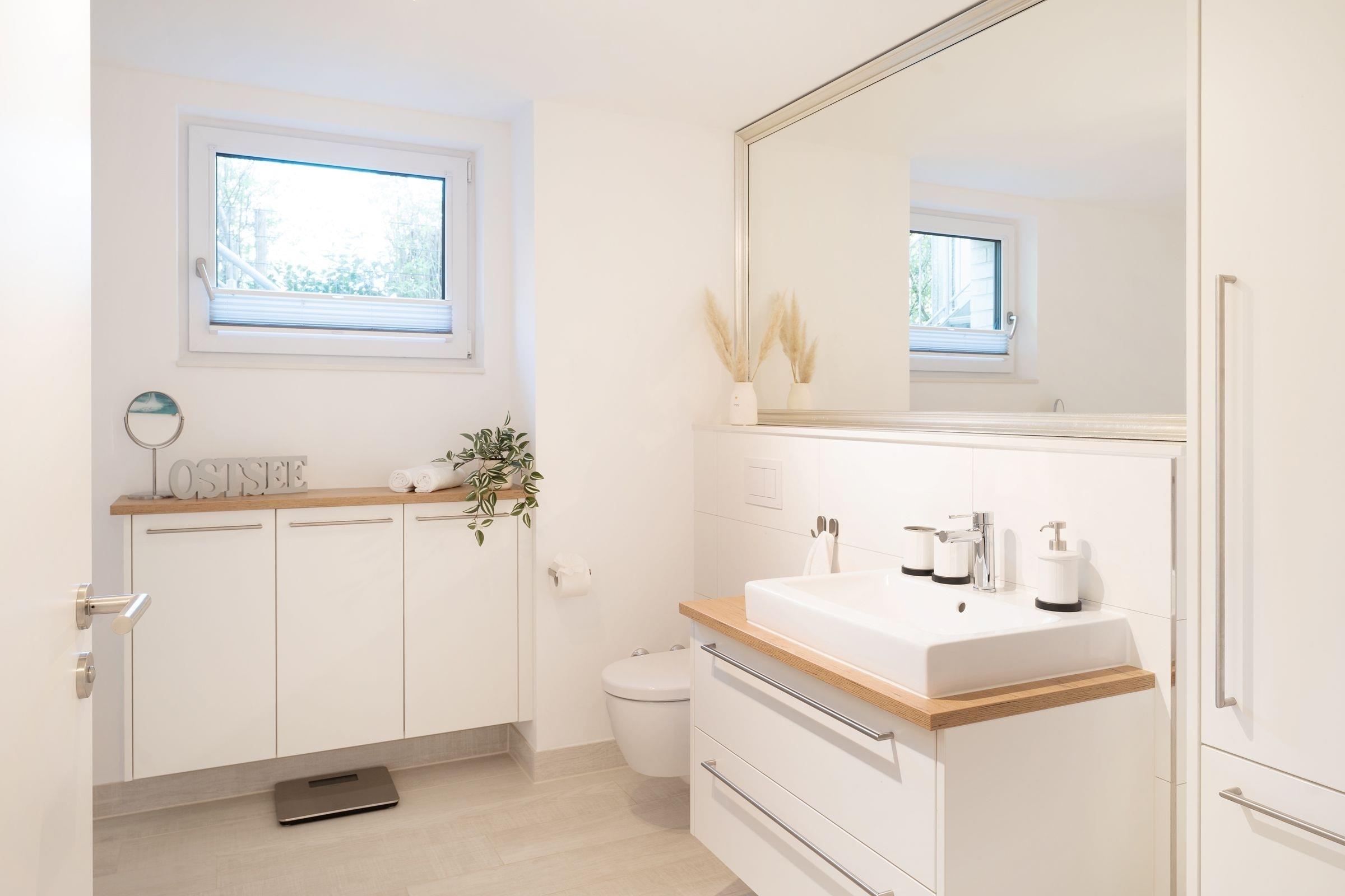 Geschmackvoll und stilsicher eingerichtet präsentiert sich die Ferienwohnung Ostsee Koje 45. Wie wäre es mit einem Drink auf der überdachten Terrasse? Oder machen Sie es sich auf der großzügigen Sofalandschaft vor dem TV gemütlich - und auch die edle Essecke lädt zum Verweilen ein. Die offene Küche mit schickem Küchenblock ist modern ausgestattet und bietet Extras wie Induktionsherd, Espresso-Maschine (Senseo) und Geschirrspüler. Nach einem wundervollen Tag am Strand träumen Sie himmlisch im Boxspring-Doppelbett (200x220 cm) im Schlafzimmer. Hier befindet sich ein weiteres TV-Gerät. Das zweite Schlafzimmer ist mit einem Etagenbett (je 140x200 cm) möbliert. Auch die Couch im Wohnzimmer bietet einen Schlafplatz (136x280 cm). Das komfortable, tageslichthelle Bad punktet mit bodengleicher Dusche, Fußbodenheizung und Handtuchwärmer. Dazu gibt es ein Gäste-WC. Ein Kinderhochstuhl steht für die kleinen Gäste bereit.