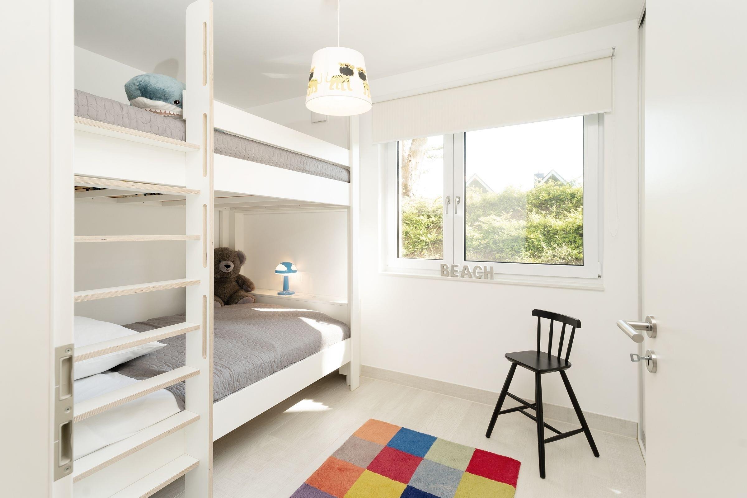 Schlafzimmer 2: 1 Etagenbett (je 140 x 200cm), Kleiderschrank, Verdunkelung: Rollo, Platz für Babybett