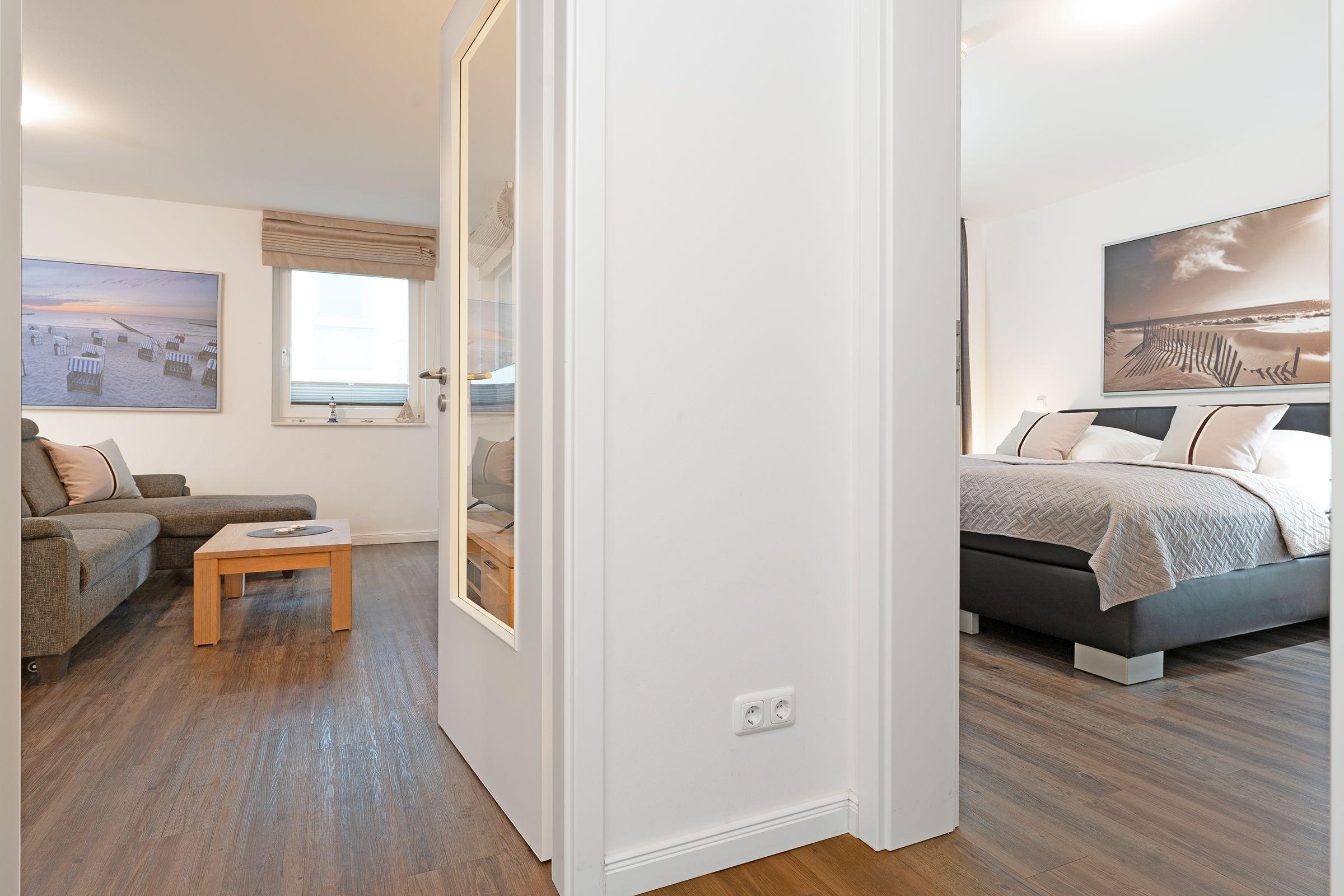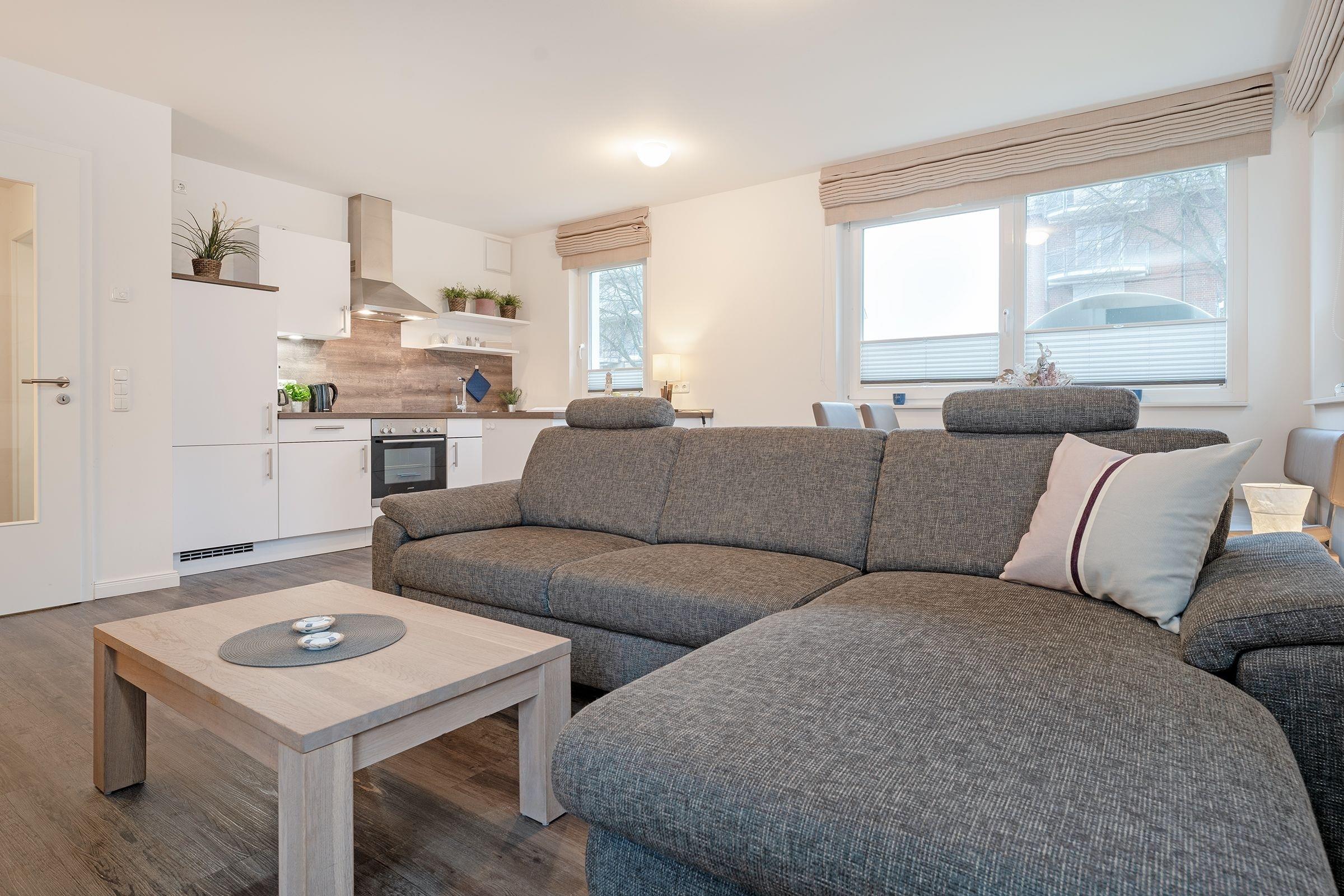 Diese moderne Ferienwohnung im Erdgeschoss bietet die perfekte Unterkunft für einen entspannten Ostseeurlaub. Der Wohnbereich ist gemütlich eingerichtet mit Sofa, TV und Radio. Die südöstlich ausgerichtete Terrasse mit Gartenmöbeln und Sonnenschirm lädt zu entspannten Stunden ein und verspricht Erholung in einem angenehmen Ambiente. Die offene Küche ist mit vielen Extras wie Tassimo-Espressomaschine und Geschirrspüler, ausgestattet. Direkt angrenzend befindet sich der Essbereich mit ausreichend Platz für gemeinsame Mahlzeiten. Das Schlafzimmer ist mit einem komfortablen Doppelboxspringbett (180x200 cm) möbliert - und im Wohnbereich finden auf der Schlafcouch zwei weitere Personen eine Schlafmöglichkeit (ca. 140x220cm). Das Badezimmer bietet eine bodengleiche Dusche, Fußbodenheizung, einen beheizbaren Handtuchhalter sowie einen Haartrockner. Genießen Sie die Strandnähe und das charmante Ambiente von Scharbeutz in dieser komfortablen Ferienwohnung!
