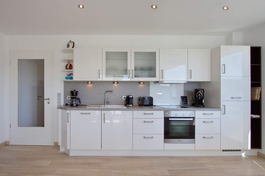 Der Wohn-Essbereich mit bodentiefen Fenstern ist mit einem Esstisch und einer gemütlichen Couch ausgestattet. Neben einem Flachbildfernseher und einem CD-Player steht Ihnen selbstverständlich kostenloses WLAN zur Verfügung. Der überdachte Balkon mit Blick auf die Ostsee ist mit einem Tisch und Stühlen ausgestattet. Die moderne Küche ist komplett ausgestattet und lässt keine Wünsche offen. Im Schlafzimmer stehen ein bequemes Boxspringbett (1,80 x 2,00m) sowie ein geräumiger Schrank. Auch im Schlafzimmer ist ein Flachbildfernseher für Sie angebracht. Das Badezimmer verfügt über eine bodentiefe Dusche und ein Radio. Neben der Fußbodenheizung ist hier ein zusätzlicher Handtuchheizkörper angebracht.