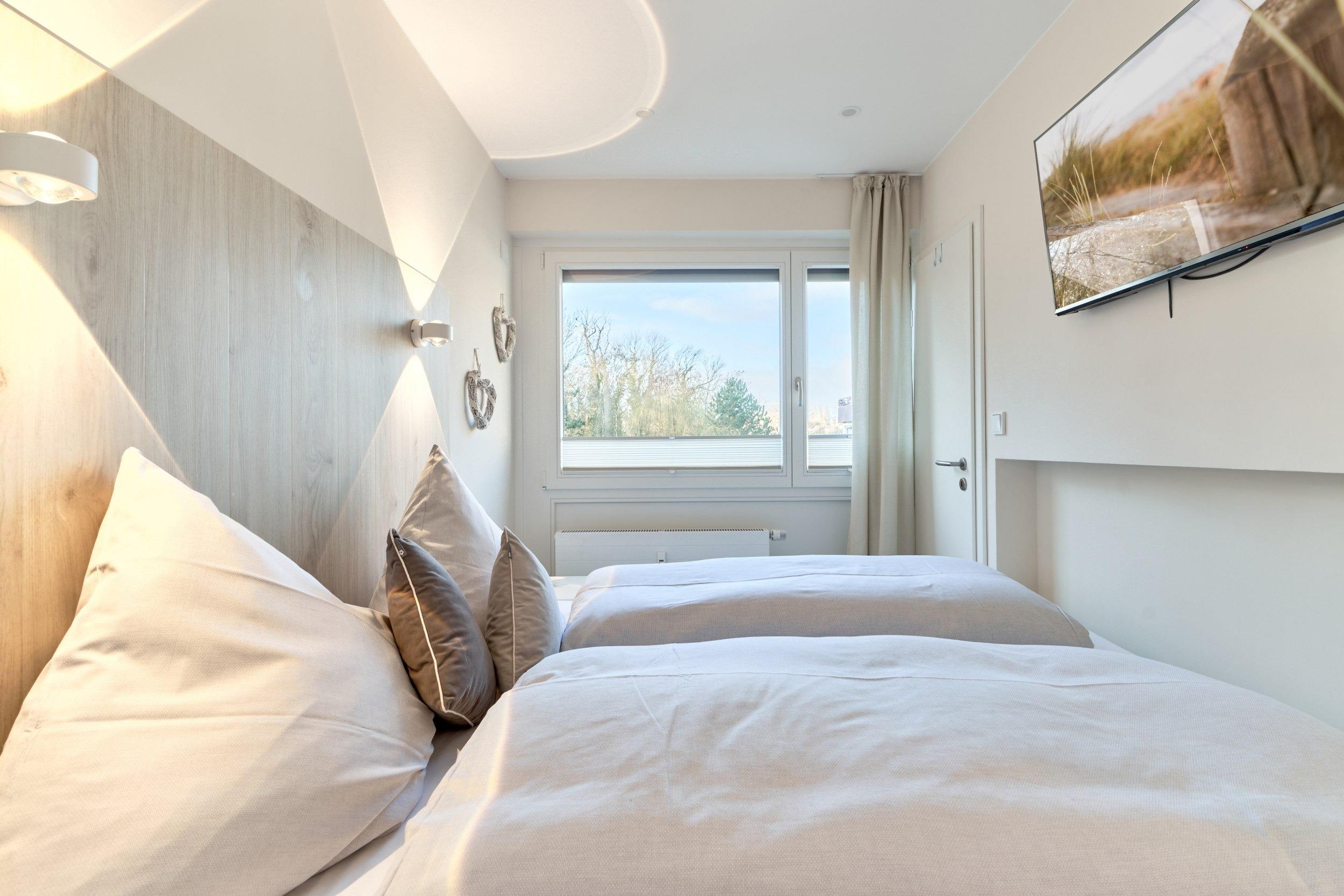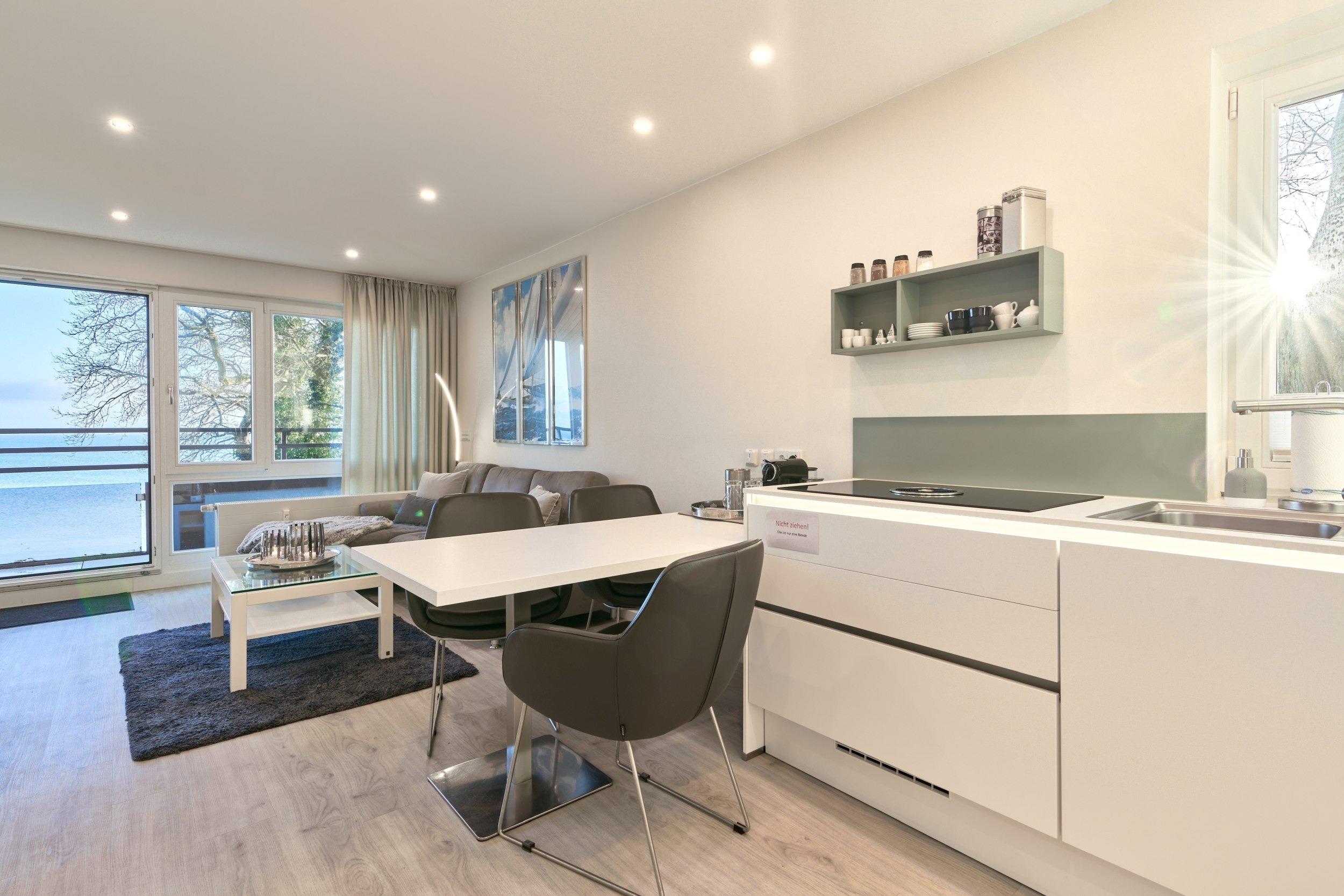 Die lichtdurchflutete, exklusive 2-Zimmer-Ferienwohnung befindet sich im 3. Obergeschoss (mit Aufzug bequem zu erreichen) in einer ruhigen Anwohnerstraße. Die Wohnung liegt ca. 30m vom feinen Sandstrand und 100m vom Ortskern entfernt. Die geräumige 2-Zimmer-Wohnung ist mit Designervinyl und Fliesen ausgelegt und bietet auf 55 m² Platz für 2–3 Personen. Zu der Wohnung gehört ein Tiefgaragenstellplatz (Durchfahrtshöhe 2,25m), Zufahrt über die Ostseestraße.