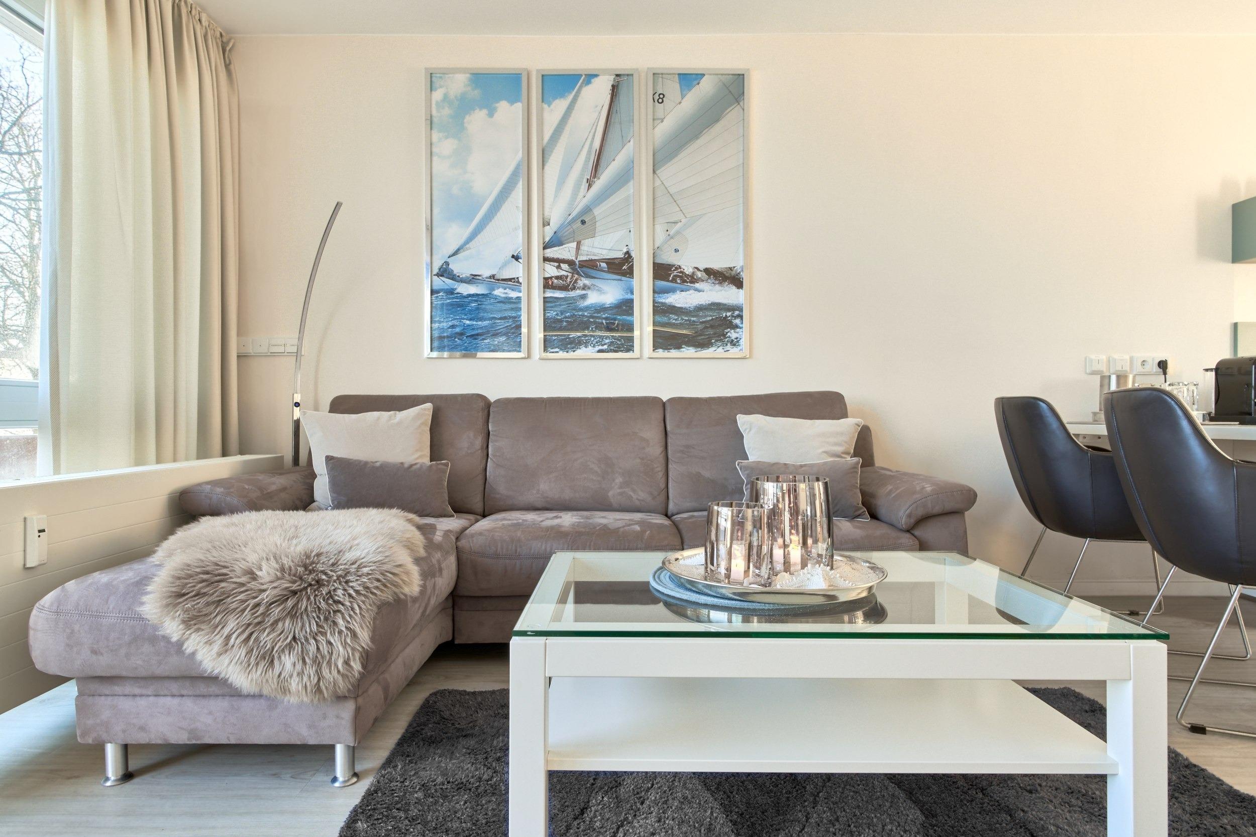 Von der Wohnung sind es nur wenige Meter bis zu den zahlreichen Cafés, Restaurants, Boutiquen, Lounges und natürlich der Dünenmeile mit Dependancen von Gosch und Café Grande. Diese haben sich in vorderster Reihe angesiedelt und bieten vielfältige Abwechslung. Die Promenade fügt sich optimal in die Landschaft ein. Auf 6 km gibt es mehrere Aussichtsplätze und Erlebnisbereiche, u. a. den Veranstaltungsplatz, auf dem im Winter die beliebte Eisbahn entsteht.