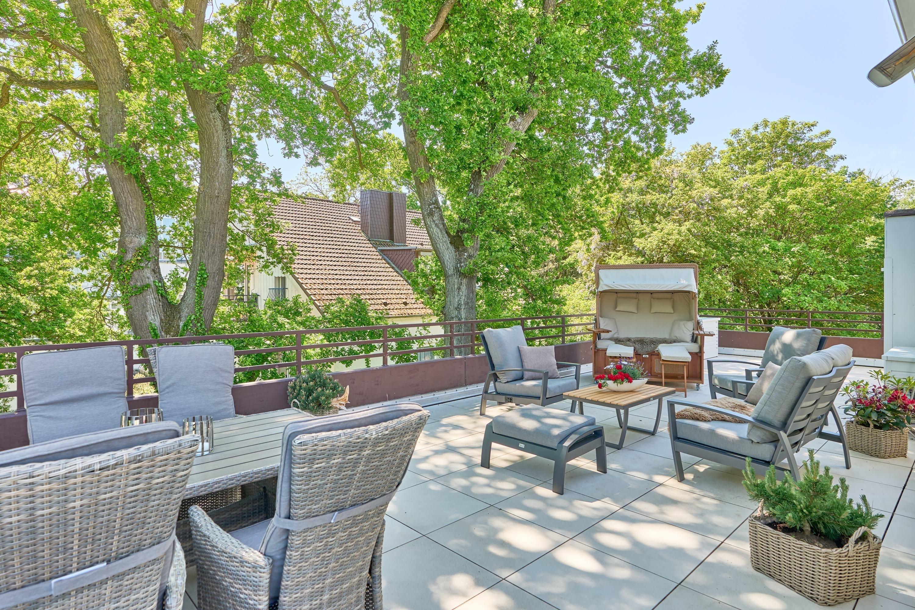 Badradio, bodengleiche Wellendusche. Alle Fenster haben elektrische Außenrollläden. Herrliche Dachterrasse mit XXL-Strandkorb und Gartenmöbeln, Sonnenschutz. Freier, weiter Ostseeblick.