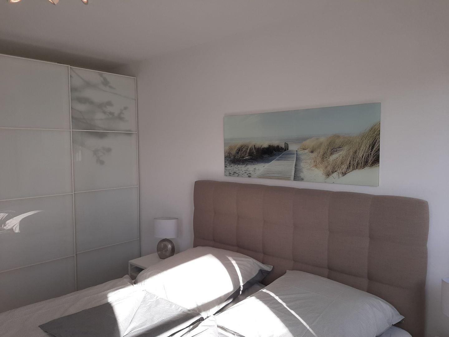 40" Smart TV, Kleiderschrank, Doppelbett 1 x 1.80 x 2.00 m. Bestückt mit großem Topper. Austritt auf den Süd-Balkon.