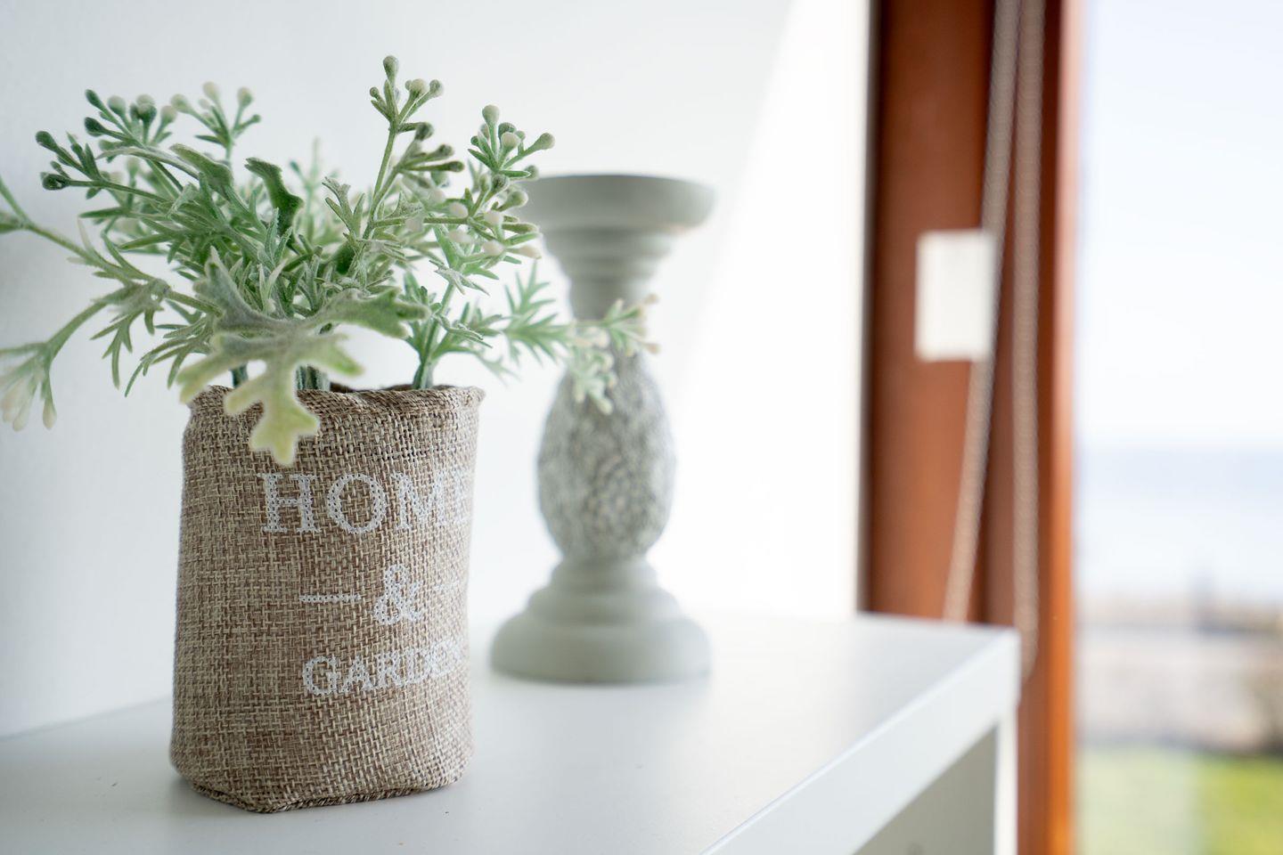 Das Appartement bietet 100 % Meerblick von der Wohnung und vom Balkon. Die Wohnung ist nach Osten gerichtet, somit hat man bis zum Mittag die Sonne auf dem Balkon. Die Meerblick-Appartements sind sehr beliebt und schnell belegt. Das Appartement verfügt über: