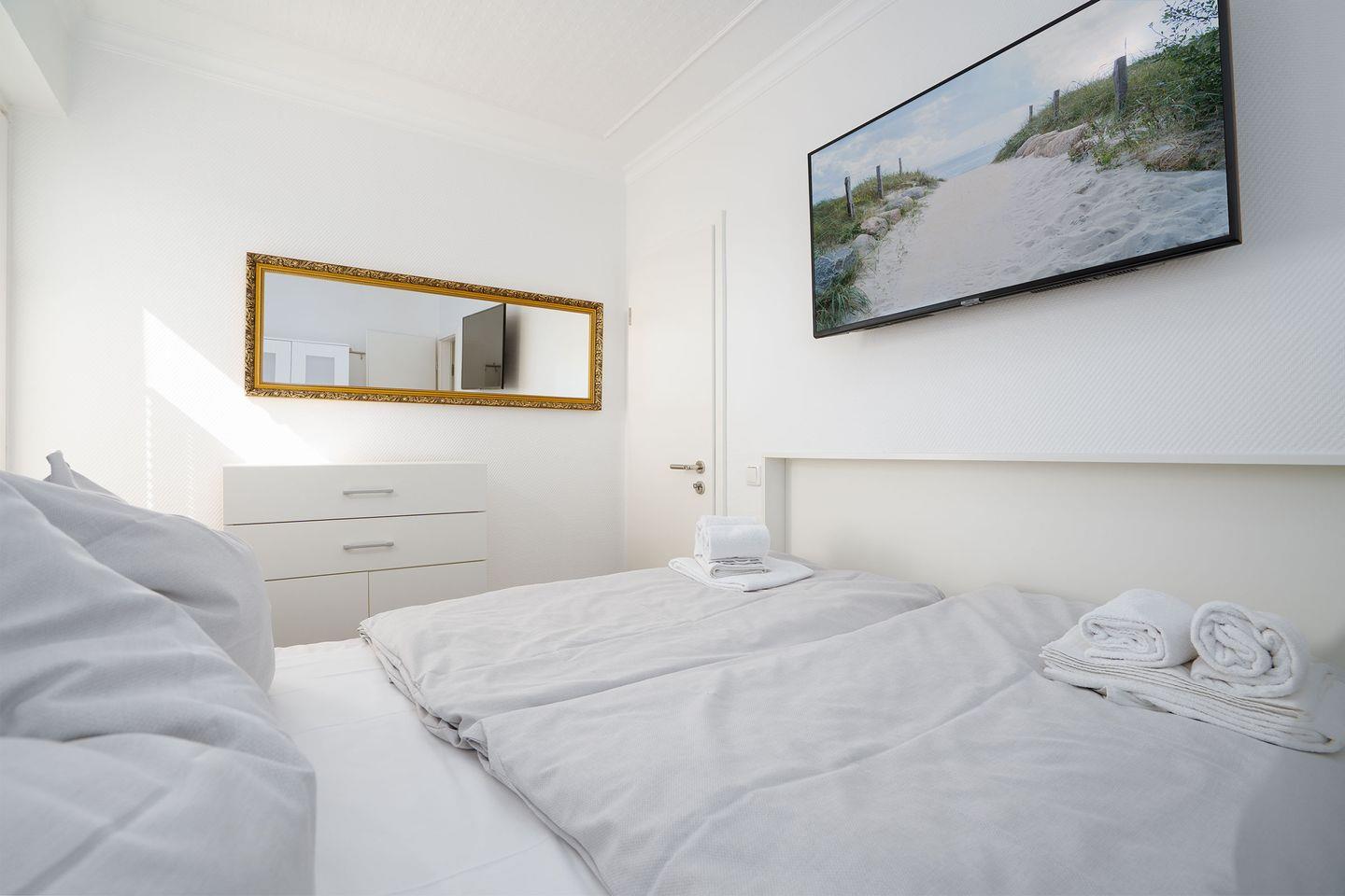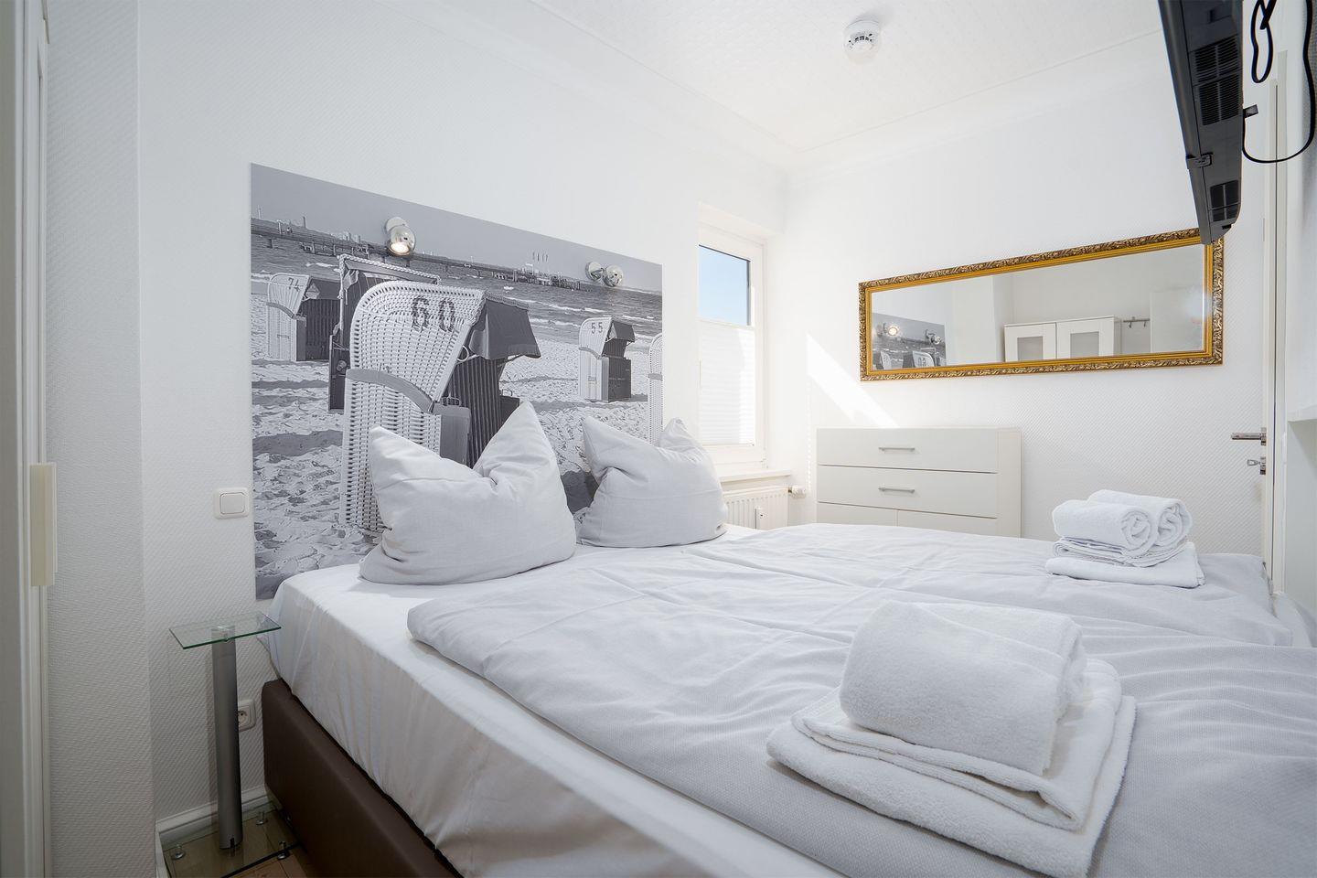 Im Hause kostenfrei nutzbar ist die Sauna zu bestimmten Zeiten, Waschmaschine und Trockner gegen Gebühr. Ferner sind auch ein Fahrradkeller sowie ein Surfbrettraum vorhanden. Das Appartement verfügt über WLAN. Die Nutzung eines PKW- Stellplatzes ist inklusive. In diesem Appartement sind Rauchen und Haustiere nicht erlaubt. Wir bitten um entsprechende Beachtung!