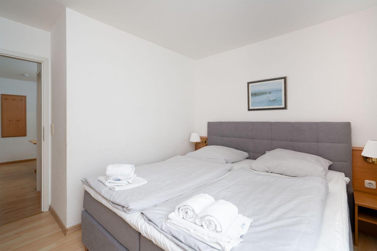 Einfach perfekt für einen schönen Urlaub. Sehr nah am Strand und trotzdem in einer ruhigen Seitenstraße. Das ca. 54 qm große 2-Zimmer-Apartment liegt im 1.OG. Die Wohnung ist mit einem schönen Balkon, einer separaten Küche mit Geschirrspüler, einer Essecke und einem Wohnraum mit Polstergarnitur, welche zur Schlafcouch umwandelbar ist, ausgestattet. Im Schlafzimmer befindet sich ein Boxspringbett (1,80 m x 2 m), ein Kleiderschrank, sowie einem Fernseher. Das Bad hat eine Dusche und WC.