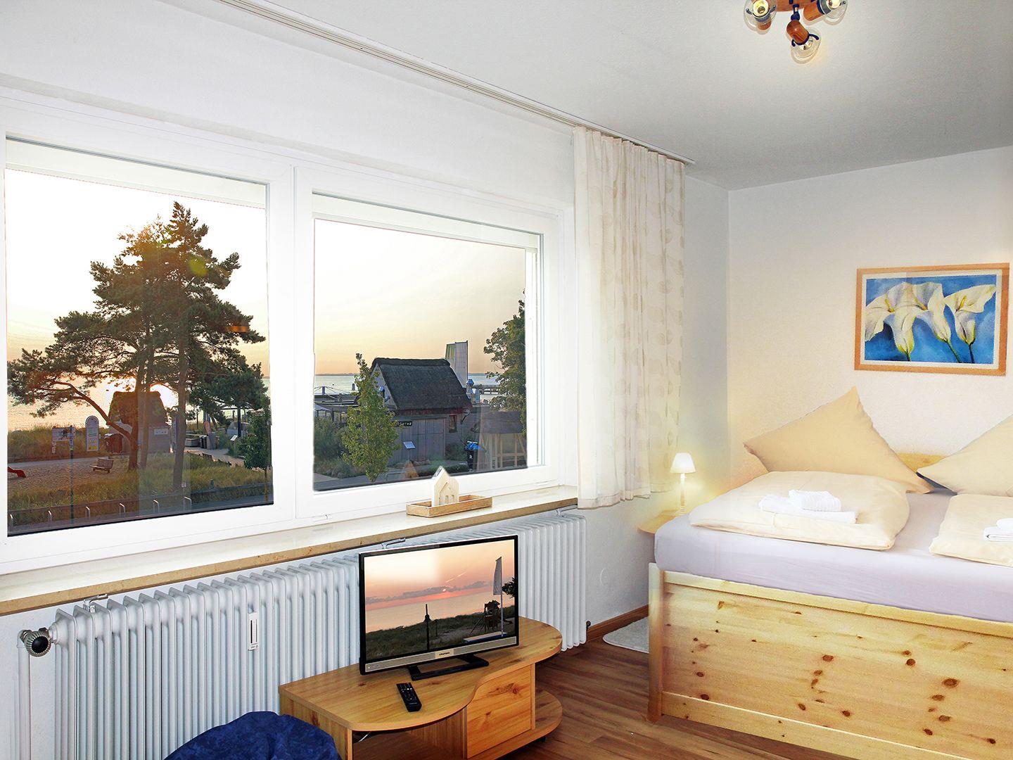 Ihr 53 qm großes 2-Zimmer-Feriendomizil befindet sich im "Strandhotel" in der Strandallee 124 - direkt da, wo der Strand am Schönsten ist. Bequem fahren Sie mit dem Fahrstuhl in die 1. Etage. In der Ferienwohnung erwartet Sie ein atemberaubender Ausblick auf das Meer. Durch die je 3 Meter großen Panorama-Fenster im Wohn- und Schlafzimmer können Sie beobachten, wie die Ostsee sich je nach Tageszeit und Wetter immer wieder verwandelt.