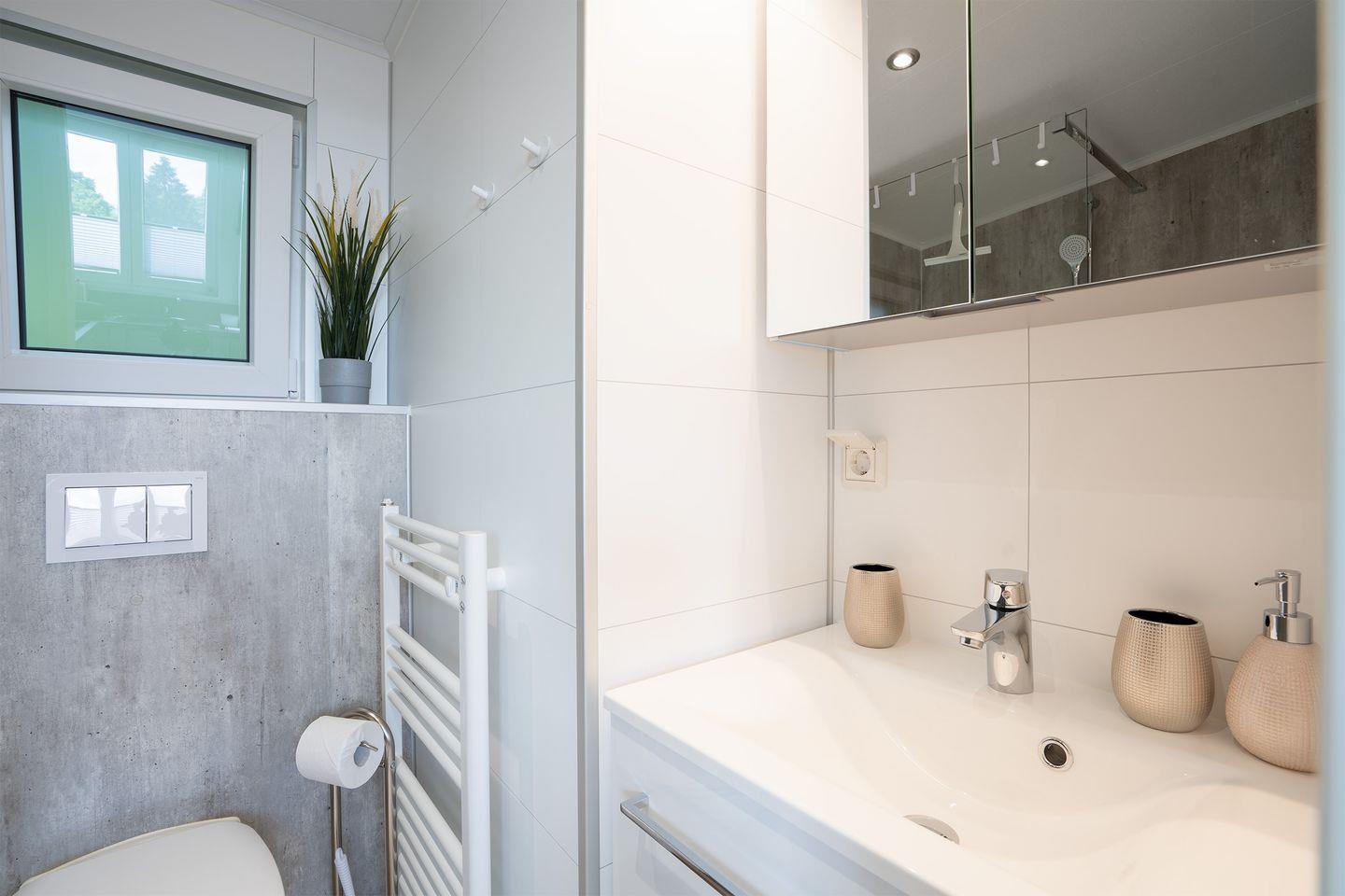 Jedes Haus hat einen Privatparkplatz direkt am Haus. Über die Terrasse gelangen Sie in den lichtdurchfluteten und freundlichen Wohn- /Essbereich. Die integrierte Küche ist mit allem ausgestattet, was Sie brauchen. Das Bad ist modern eingerichtet und mit Fenster ausgestattet. Die beiden Schlafzimmer bieten alles für erholsame Nächte. Grillen, frühstücken auf der Terrasse und einfach genießen ist ein Muss !