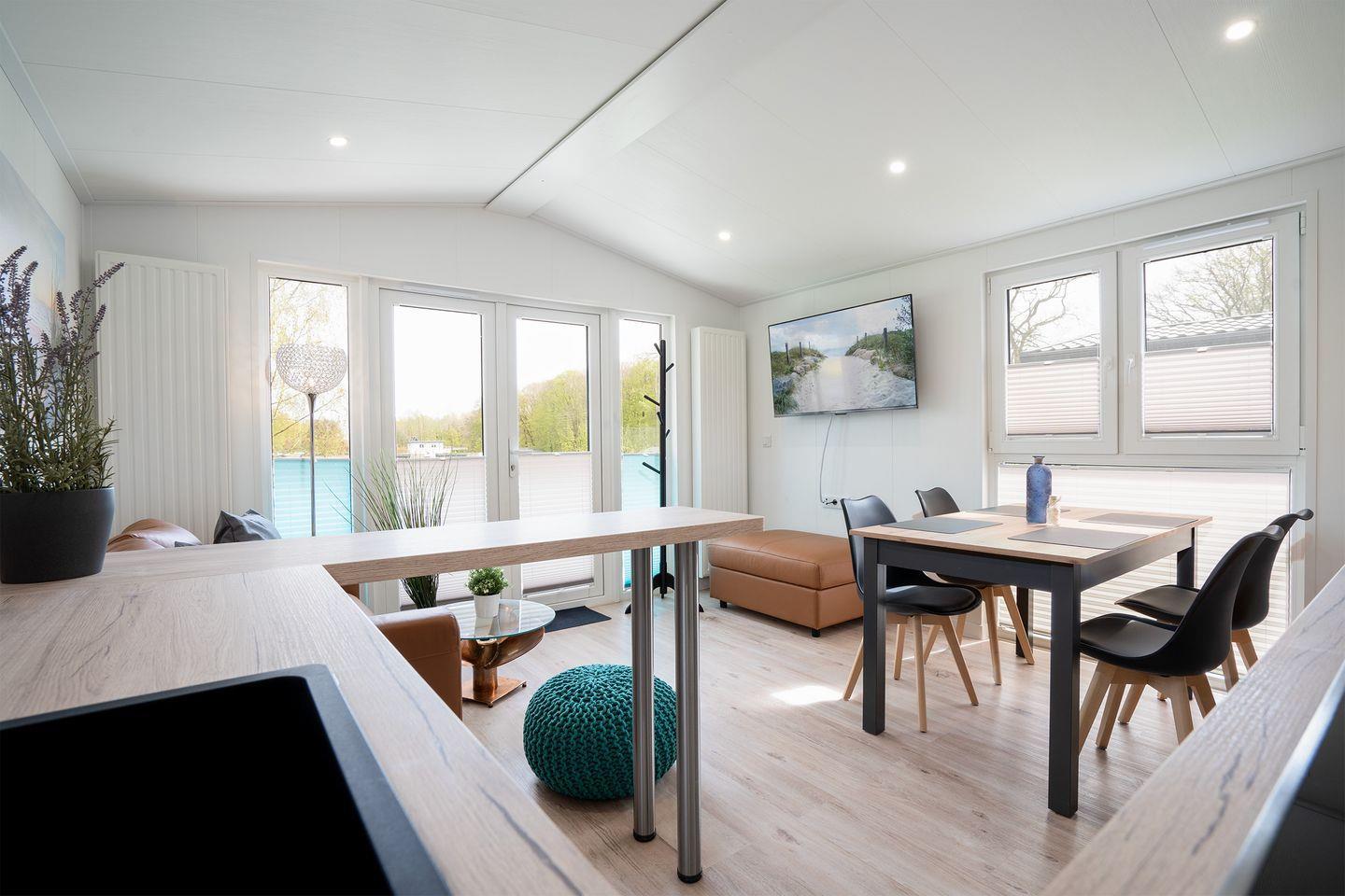 Unsere modernen Häuser bieten auf 40 m² Platz für bis zu 4 Personen. Sie sind ideal für einen entspannten Urlaub mit Freunden, der Familie oder auch für Veranstaltungen geeignet. Falls Sie mehr Platz benötigen, stehen Ihnen auch unsere 6 identisch ausgestatteten Nachbarhäuser zur Verfügung.