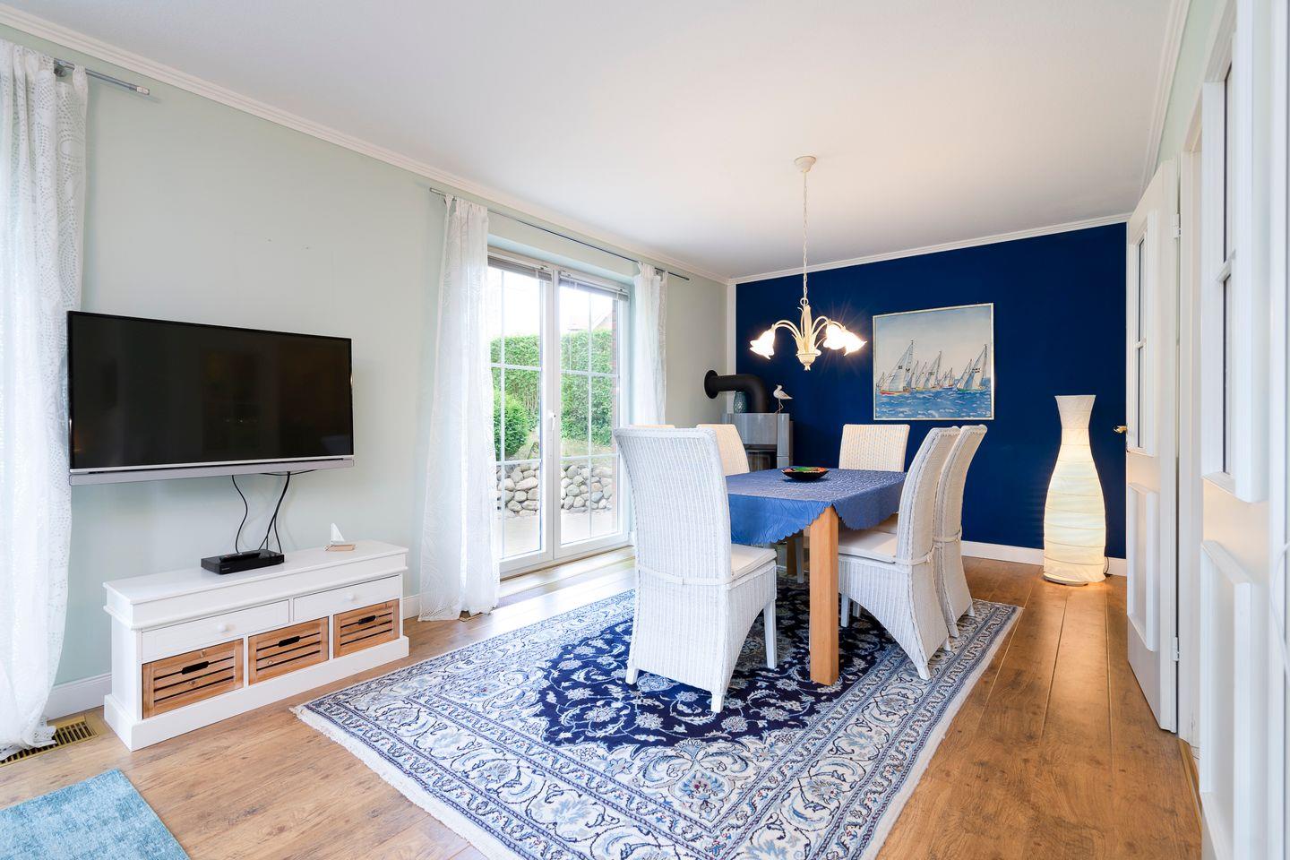 Die großzügig aufgeteilte, 100 m2 große 3-Zimmer-Ferienwohnung mit eingegrünter Terrasse liegt in einer ruhigen Wohngegend von Scharbeutz und ist der ideale Ort für einen erholsamen Urlaub an der Ostsee. In weniger als 10 Gehminuten sind Sie am Strand und der Promenade, ca. 15 Minuten laufen Sie bis in die Ortsmitte. Die geschmackvoll und maritim eingerichtete Wohnung teilt sich auf in einen großen Wohn- und Essbereich mit offener Küche und zwei Schlafzimmer mit komfortablen Doppelbetten. Die Einbauküche ist mit Spülmaschine, Backofen, Herd und Mikrowelle voll ausgestattet. Der Kaminofen im Wohn- und Essbereich spendet behagliche Wärme für gemütliche Mußestunden. Das Gäste-WC ist zusätzlich mit einer Dusche ausgestattet, das Badezimmer verfügt über Badewanne und Bidet. Ihren PKW oder Ihre E-Bikes können Sie in der zum Haus gehörenden Garage parken. Der Garten rund um das Haus ist eingezäunt und bietet viel Platz zum Spielen.