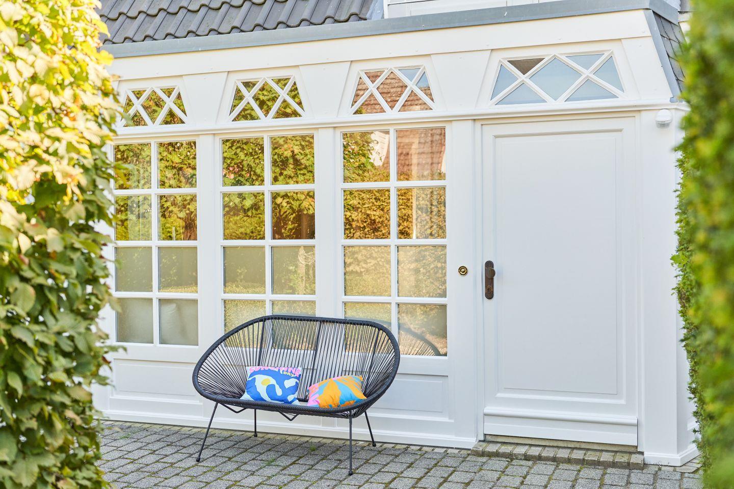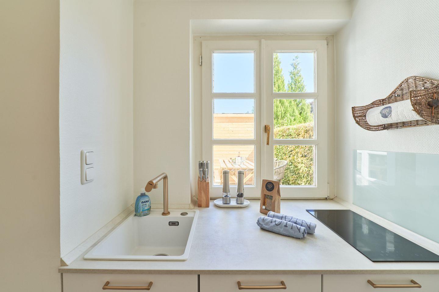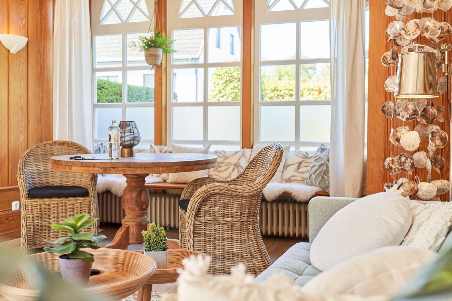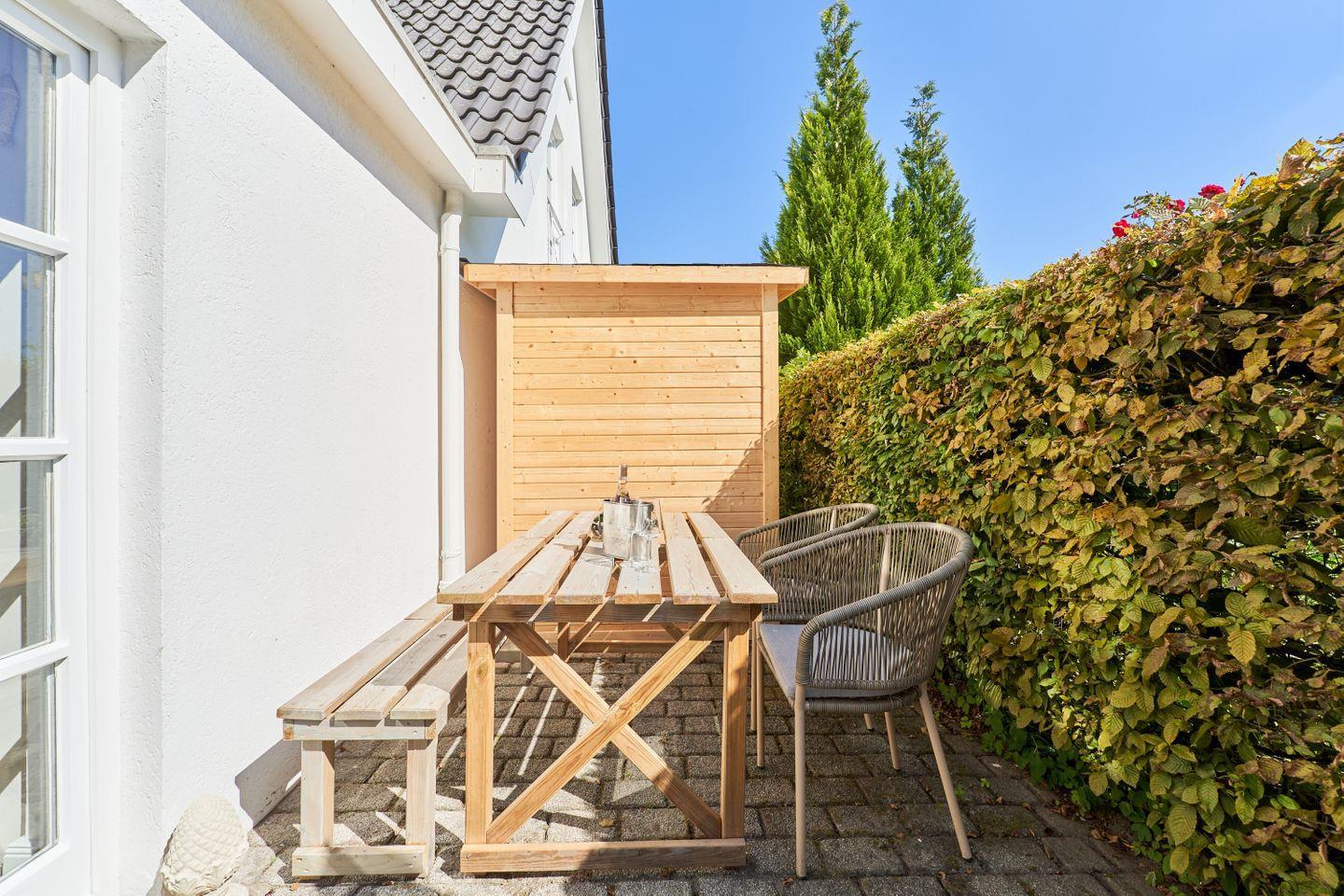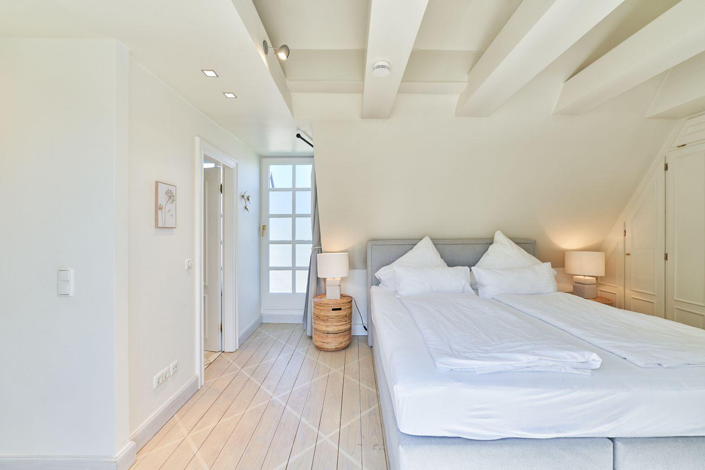 Willkommen im entzückenden Ferienhaus Luise in Scharbeutz, nur ca. 100 Meter vom Meer entfernt. Der zweistöckige Hausteil erstreckt sich über gut 50 qm und bietet Ihnen ein grosszügiges Schlafzimmer, ein stilvolles Marmorbadezimmer, eine voll ausgestattete Küche, ein großes, helles Wohn-Esszimmer mit gemütlichen Sitzgelegenheiten und Zugang zur kleinen einladenden Sonnenterrasse. Eine elegante maßgefertigte Wendeltreppe verbindet die beiden Etagen. Große Einbauschränke bieten ausreichend Platz für Ihre Garderobe. Das bequeme Kingsize Boxspringbett sorgt für den erholsamen Schlaf. Der Blick in den offenen Dachgiebel und die bodentiefen Sprossenfenster sorgen für eine luftige und dennoch sehr wohlige Atmosphäre. Vom Schlafzimmer aus haben Sie einen direkten Zugang zum Marmorbad mit Dusche. Ihren ersten Kaffee können Sie morgens bei Sonne auf dem französischen Balkon genießen. Kostenloses WLAN ermöglicht Ihnen Konnektivität, während Sie über Internetradio Ihre Lieblingsklänge genießen. Die einladende Terrasse lädt zum Entspannen ein, während ein bequemes Sofa und eine gemütliche Essecke eine behagliche Atmosphäre schaffen. Ein besonderes Highlight ist der 65-Zoll Smart-TV für Unterhaltung in Premium-Qualität.