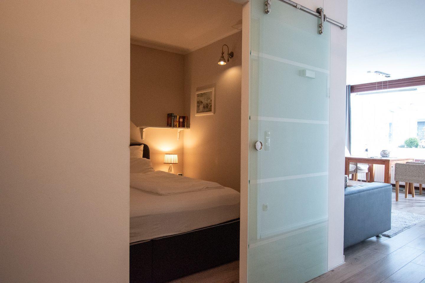 Das Schlafzimmer ist ein Rückzugsort der Ruhe und Entspannung. Das bequeme Doppelbett und die harmonische Einrichtung schaffen eine friedliche Atmosphäre. Ein weiteres Highlight ist das Badezimmer, das modern und komfortabel gestaltet ist.